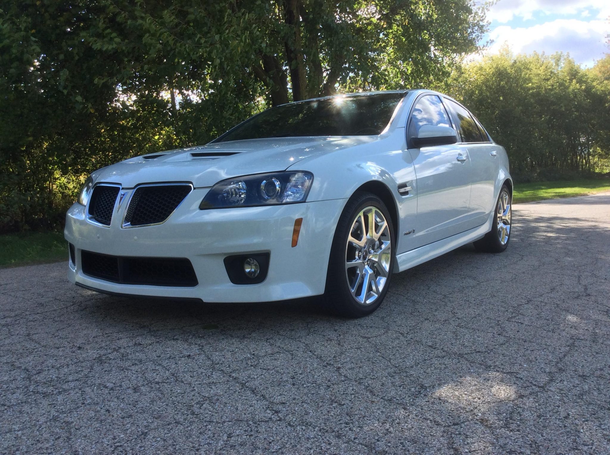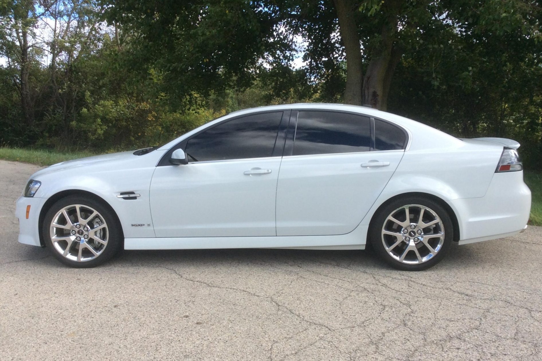 19″ polished wheels are also unique to the GXP and are wrapped in Uniroyal Tiger Paw tires that were mounted in 2014, and the seller notes that curb marks are visible on the wheels. The FE3 suspension package added stiffer springs, re-valved dampers, and a thicker rear sway bar. Braking is handled by Brembo calipers up front with slotted and drilled rotors.