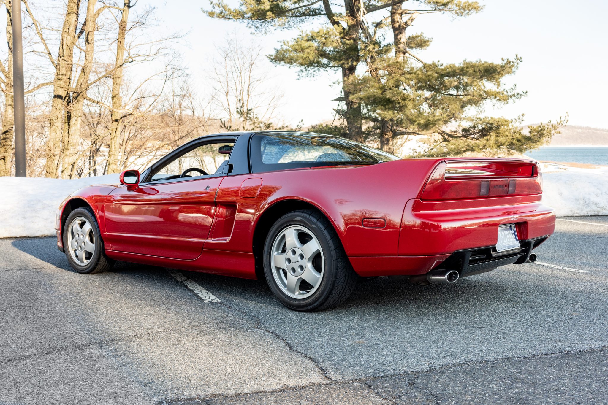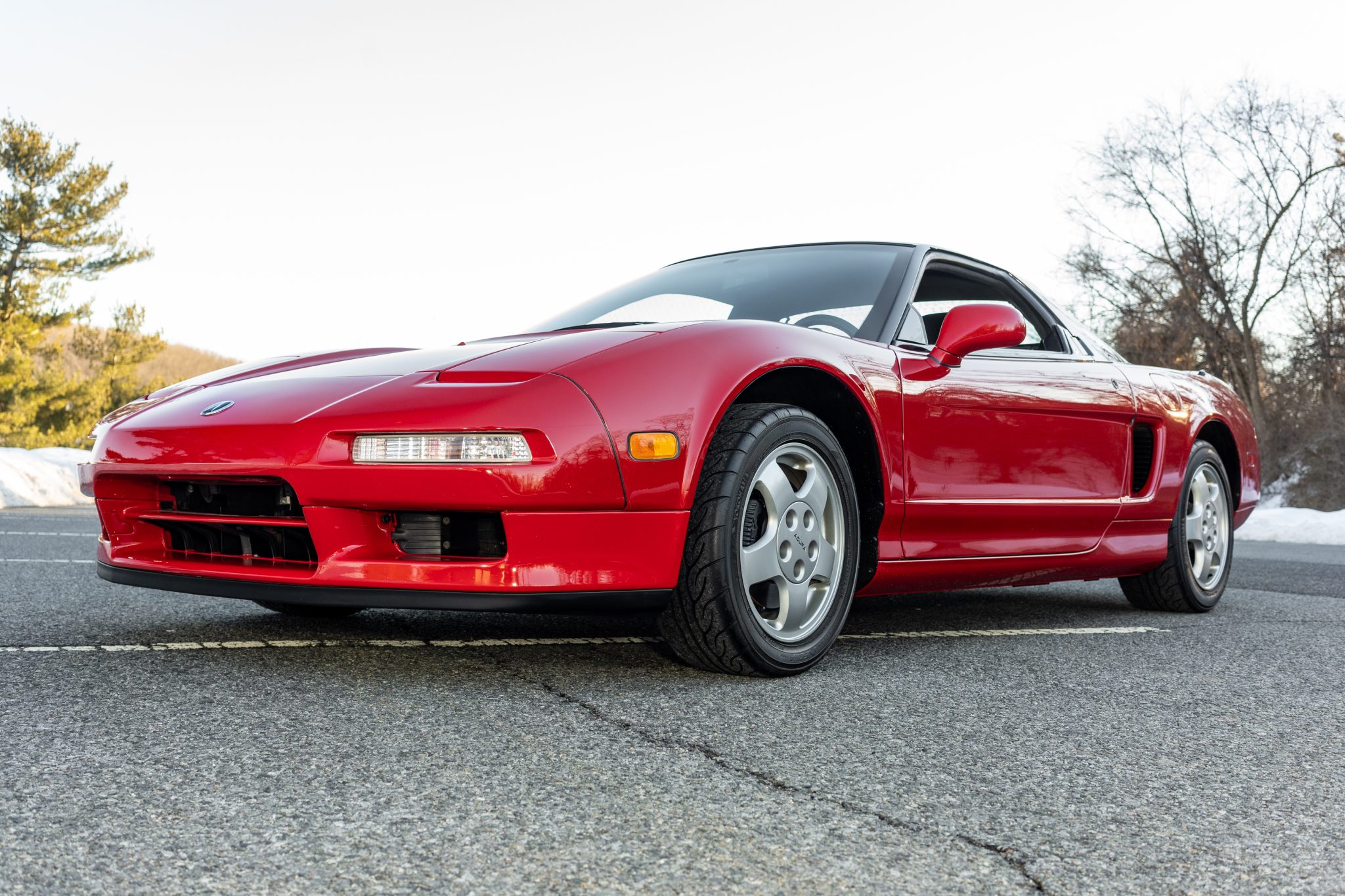 Staggered-width wheels measure 15” in diameter up front and 16” out back and wear older Yokohama Advan Neova tires measuring 205/50 and 225/50, respectively. A factory space-saver spare wheel is stored in the front compartment.