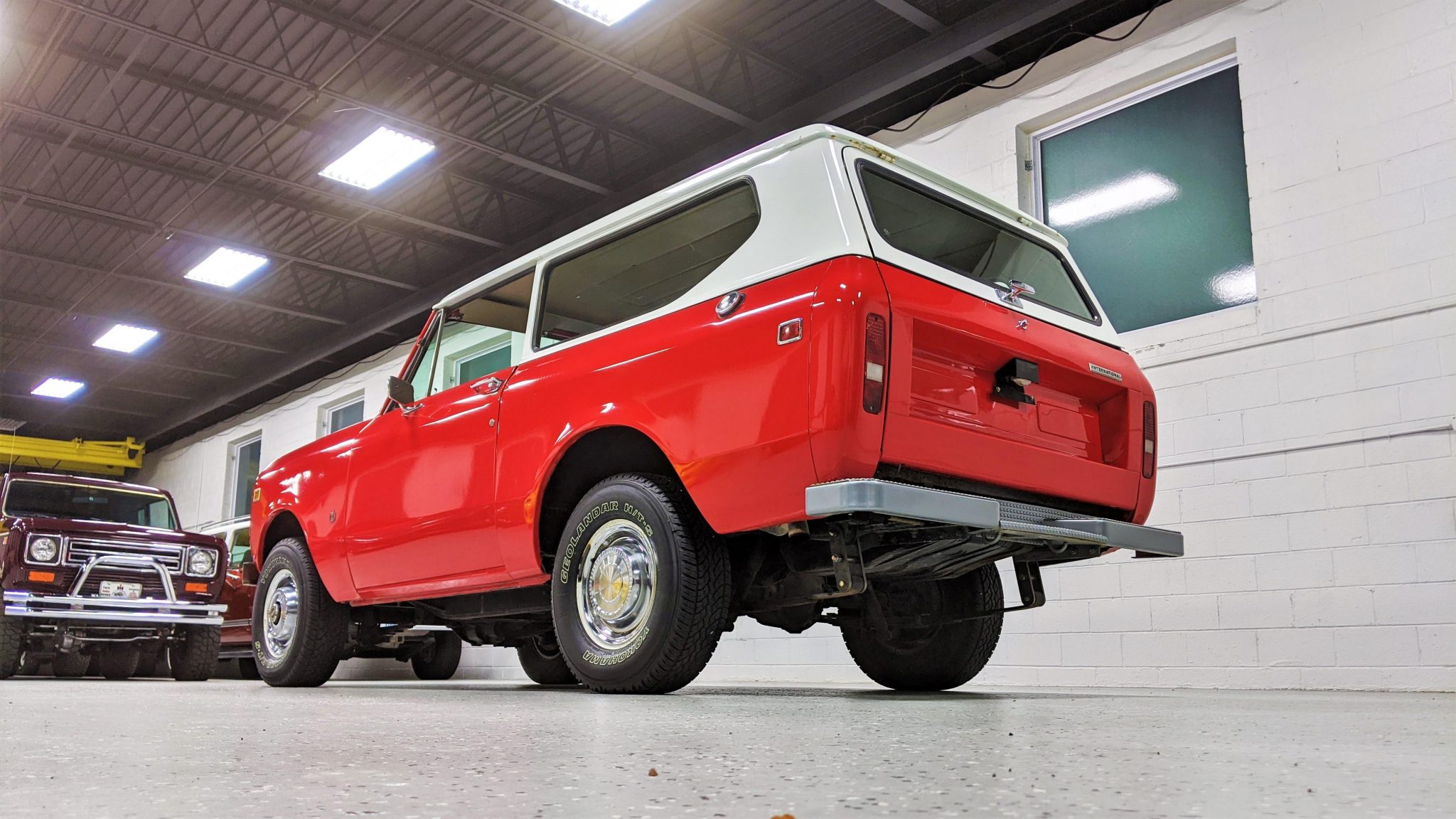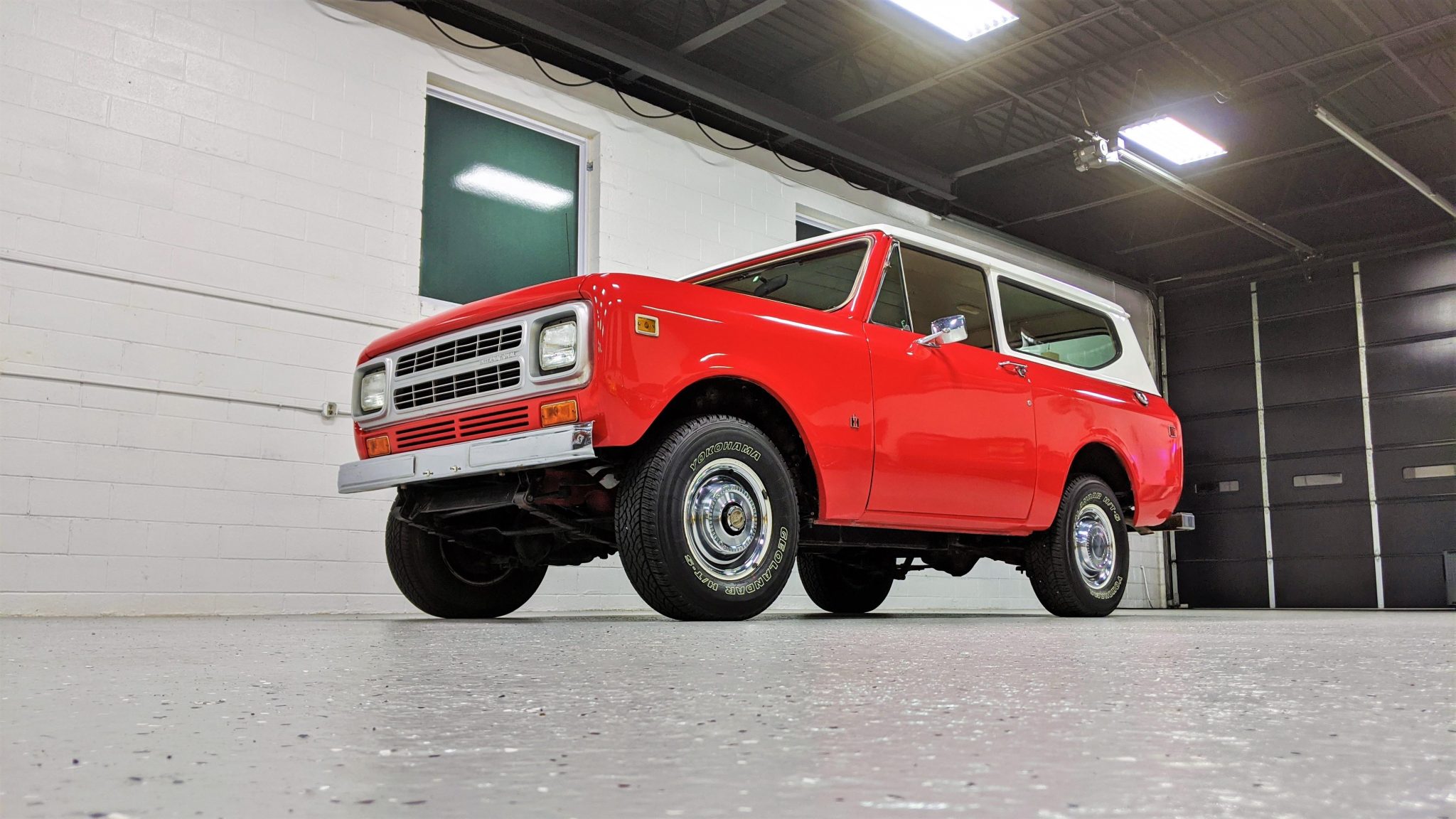Stock 15″ wheels with locking front hubs and polished hubcaps are mounted with a set of 235/75 Yokohama Geolandar H/T-S tires. The truck has power-assisted front disc brakes.