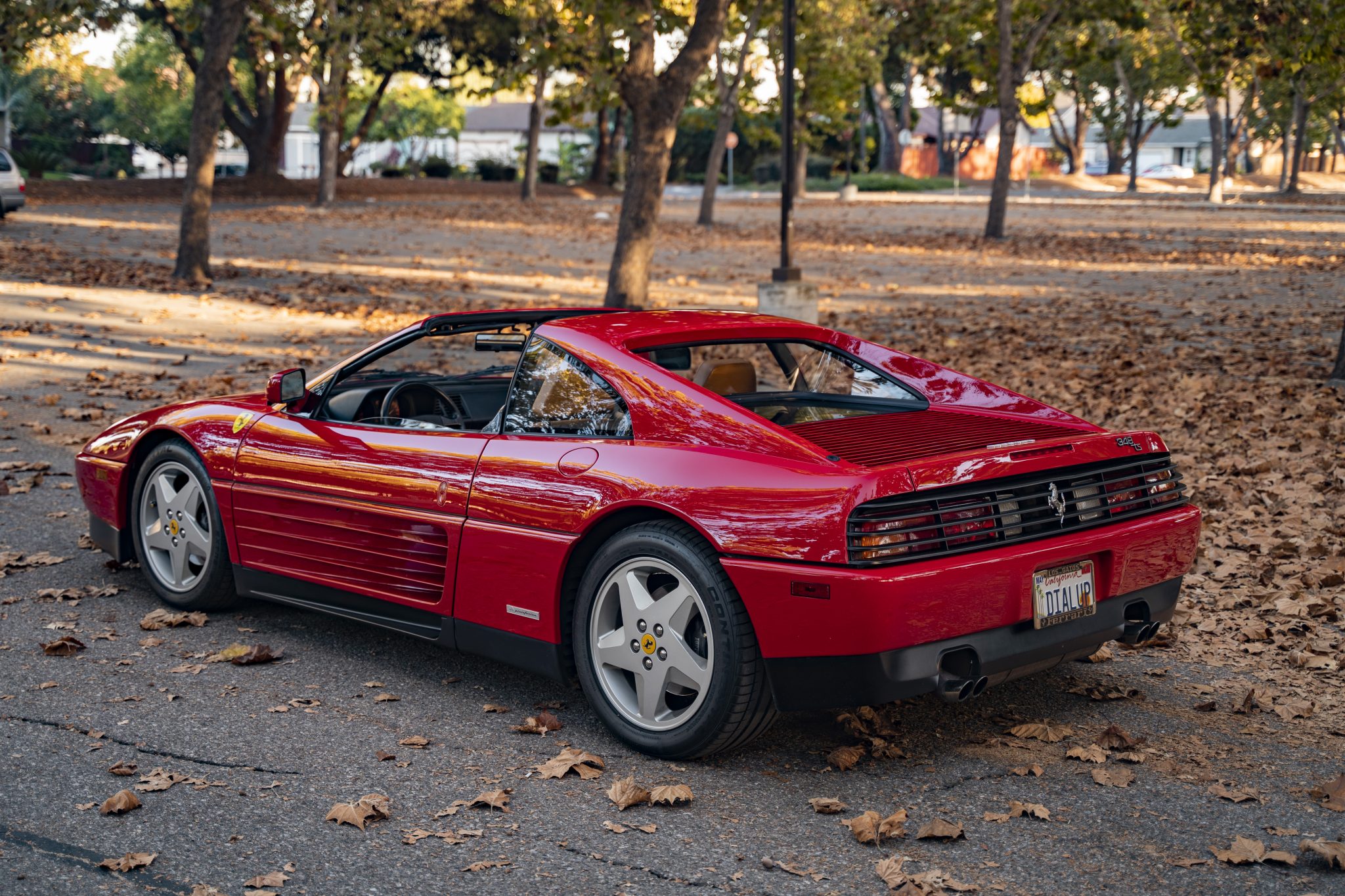Factory 17″ five-spoke alloy wheels are mounted with Continental ExtremeContact DW Tuned tires measuring 215/50 up front and 255/45 out back. Braking is handled by four-wheel discs with Ferrari-branded calipers, and the suspension is independent at all four corners.