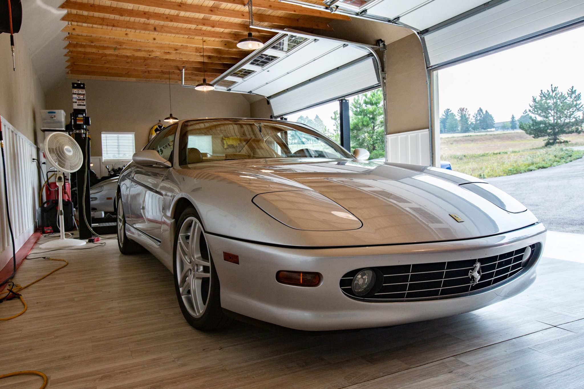 The 19″ dual-spoke F430 wheels are mounted with Hankook Kinergy GT front and Pirelli P Zero Rosso rear tires. Braking is handled by discs equipped with gloss-black calipers with white Ferrari scripts at all four corners. New shocks were installed during previous ownership in 2016.