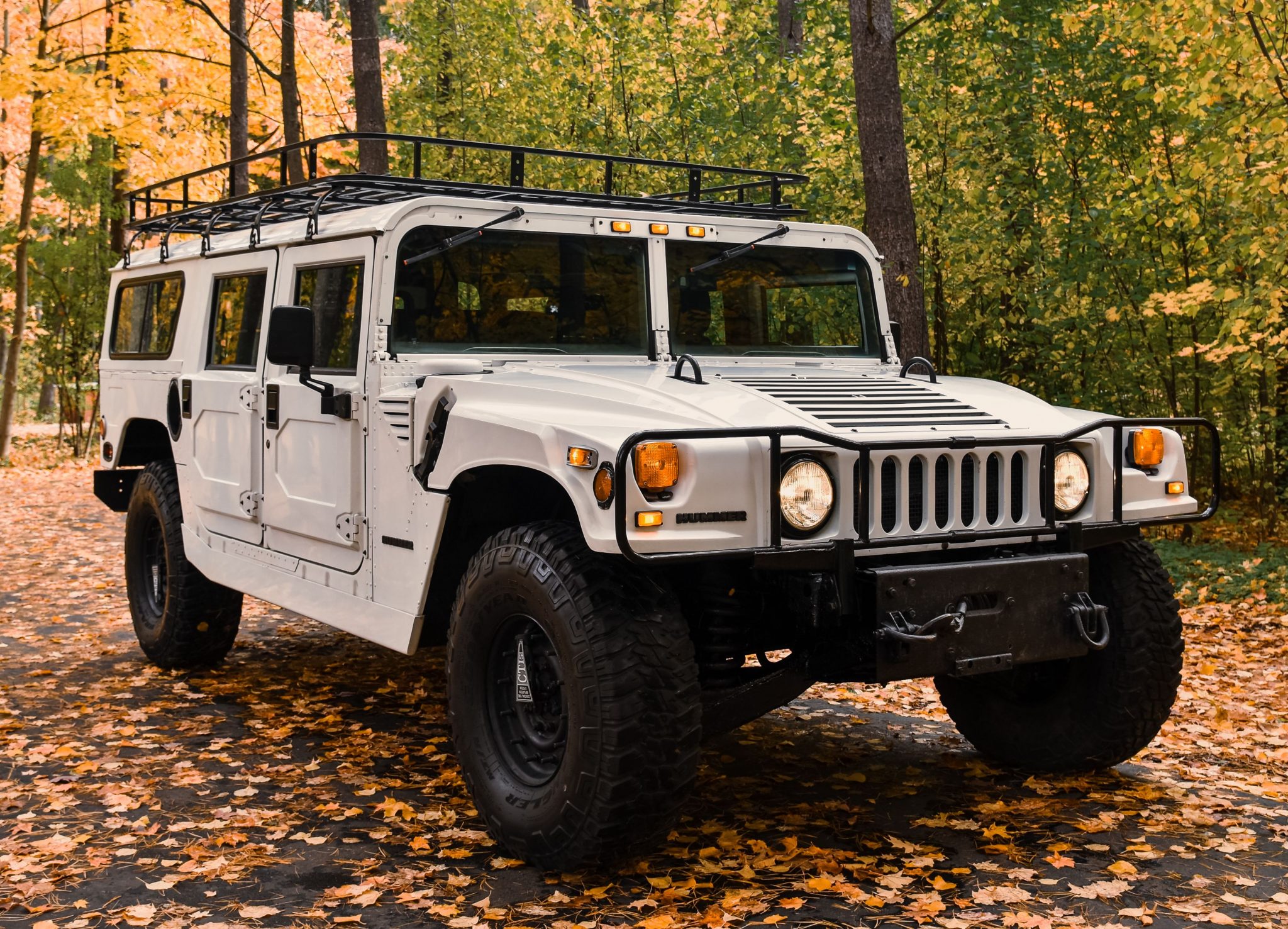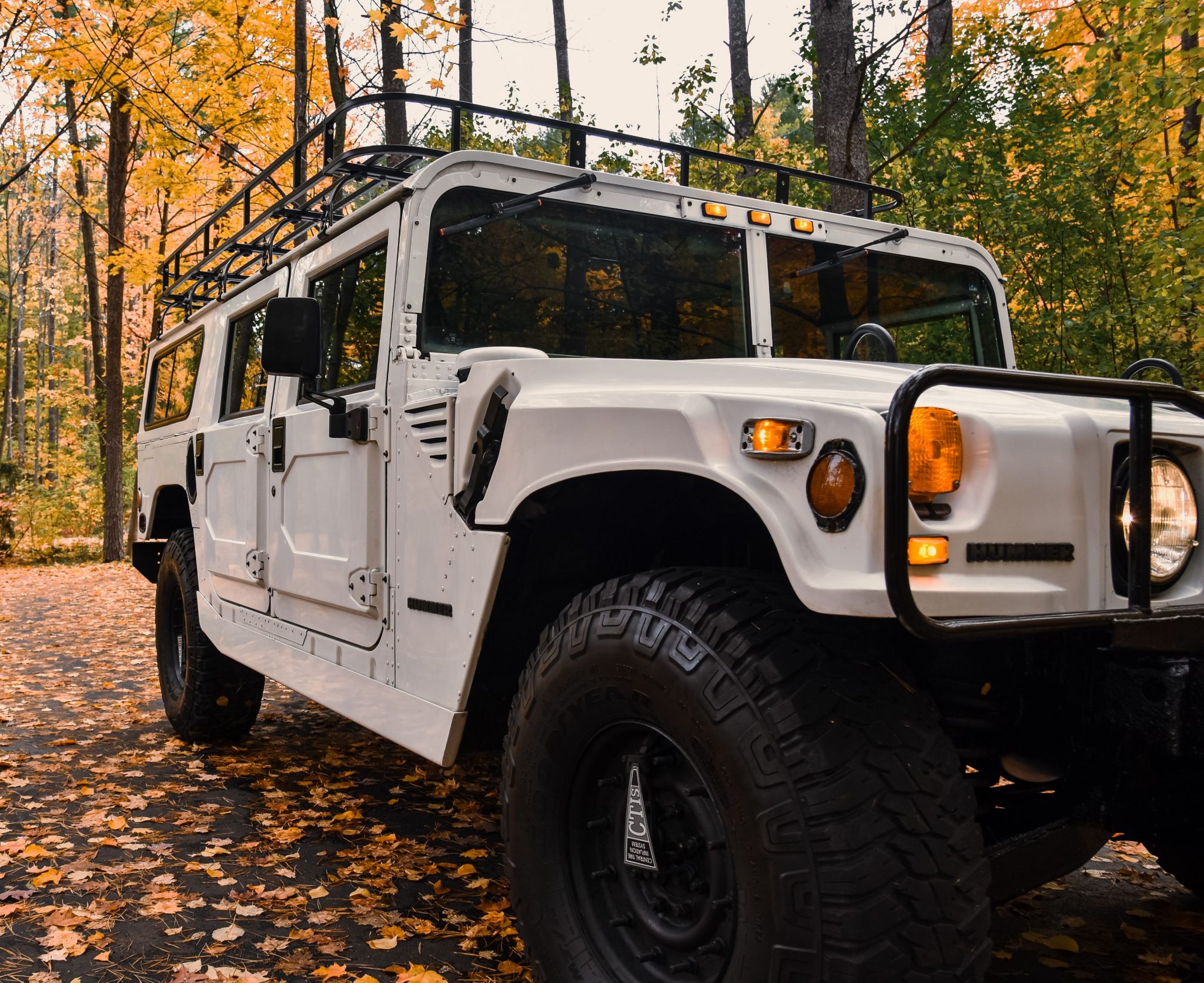Black multi-piece wheels measuring 16.50″ in diameter are mounted with run-flat 37″ x 12.50″ Goodyear Wrangler MT/R beadlock tires. The truck is equipped with a Central Tire Inflation System, which is operated via a switch on the dashboard. The seller notes that the parking-brake calipers have seized and are inoperable.