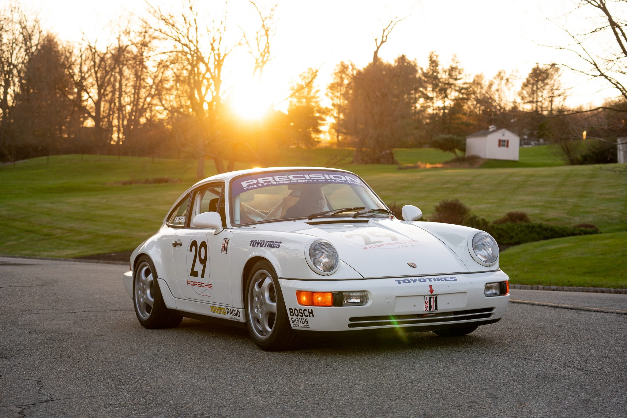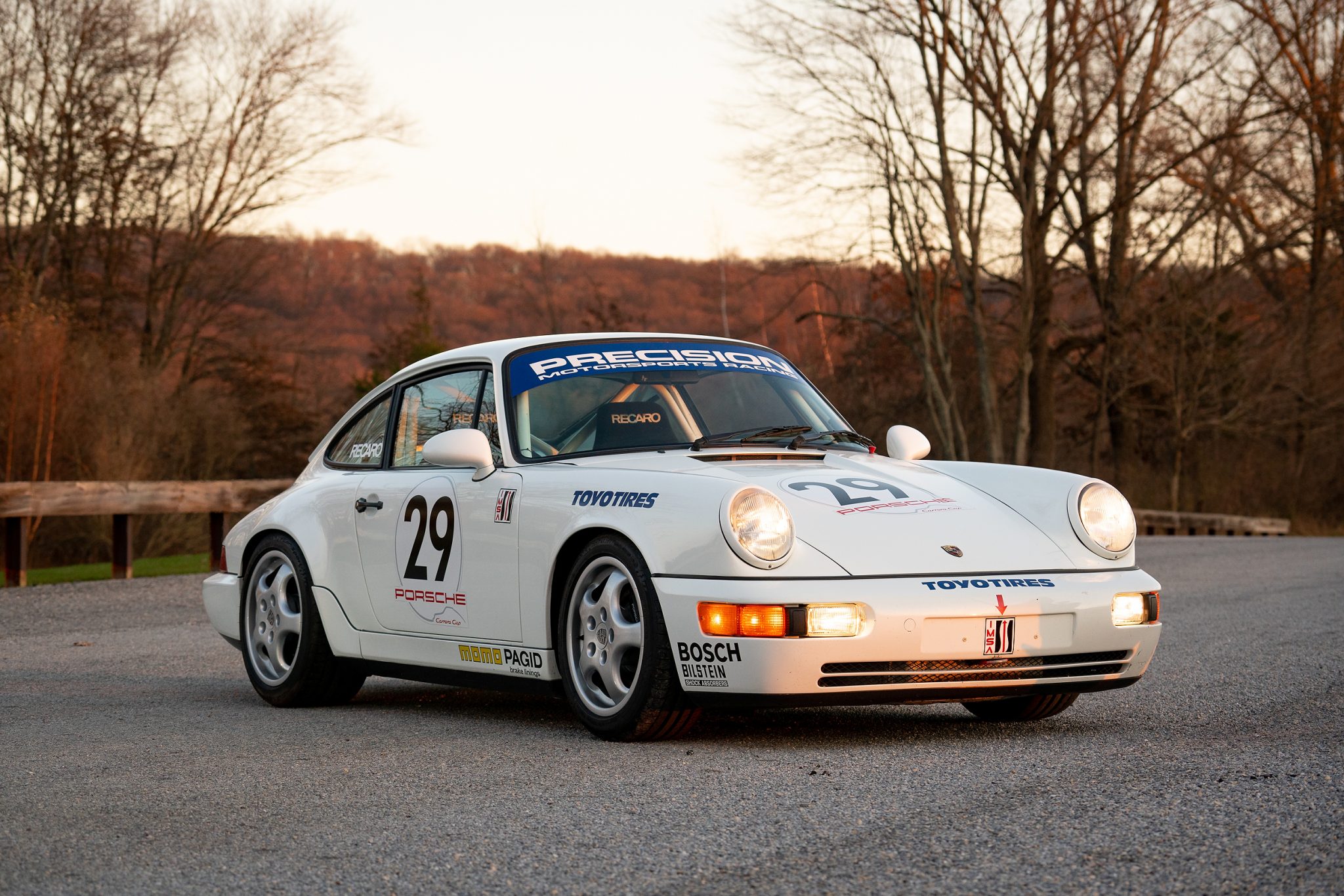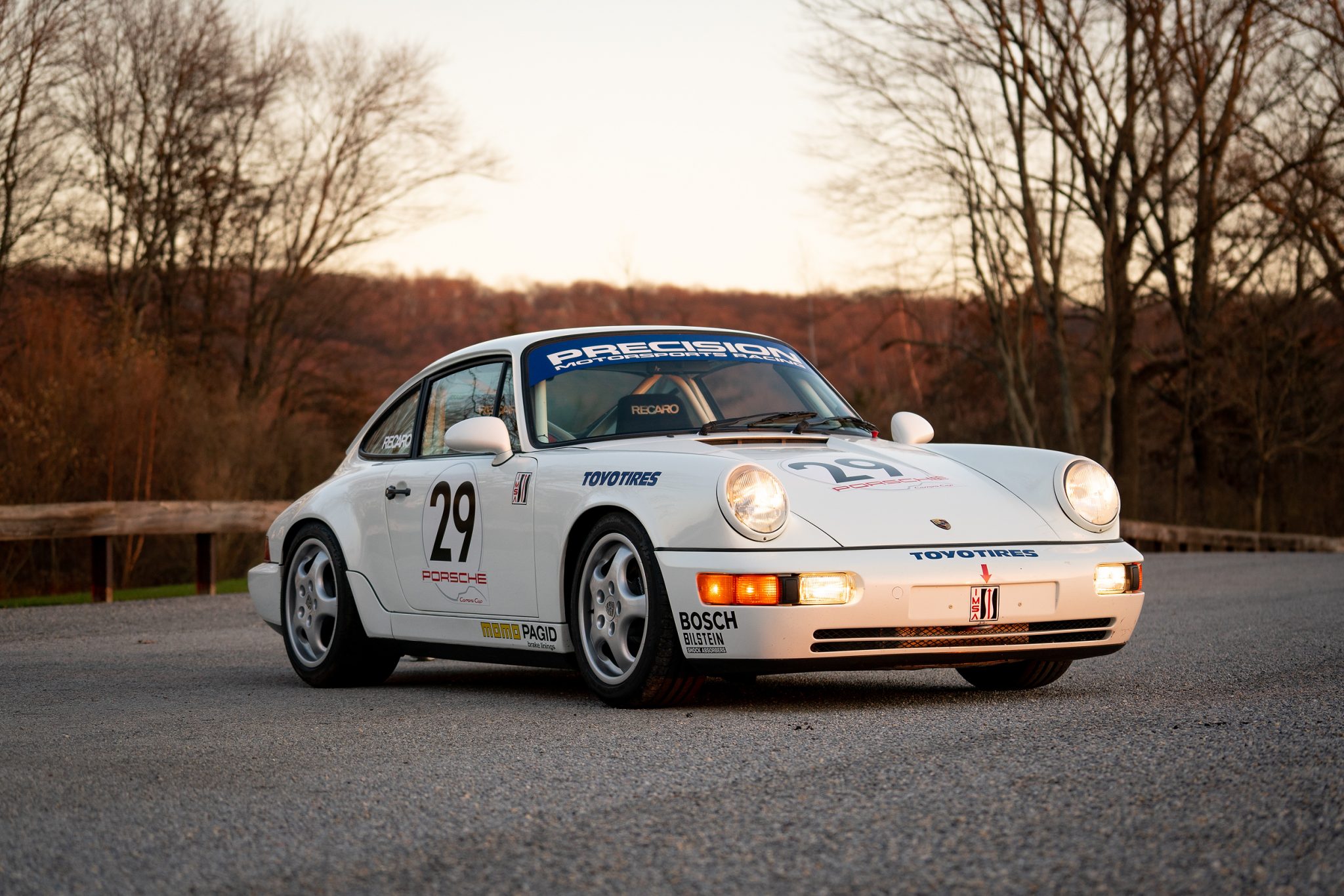 Features distinguishing Cup cars from other US models include rolled fenders, an aluminum front hood without gas struts, special non-electric side mirrors, chassis reinforcement welds, and omission of various rust-proofing materials. This example is finished in Grand Prix White, as were all but one of the US Cup cars, and Carrera Cup roundels with the number 29 have been added to the doors and front hood. The seller believes that portions of the car was repainted prior to his ownership, and the rear bumper was refinished in October 2020 due to yellowing.