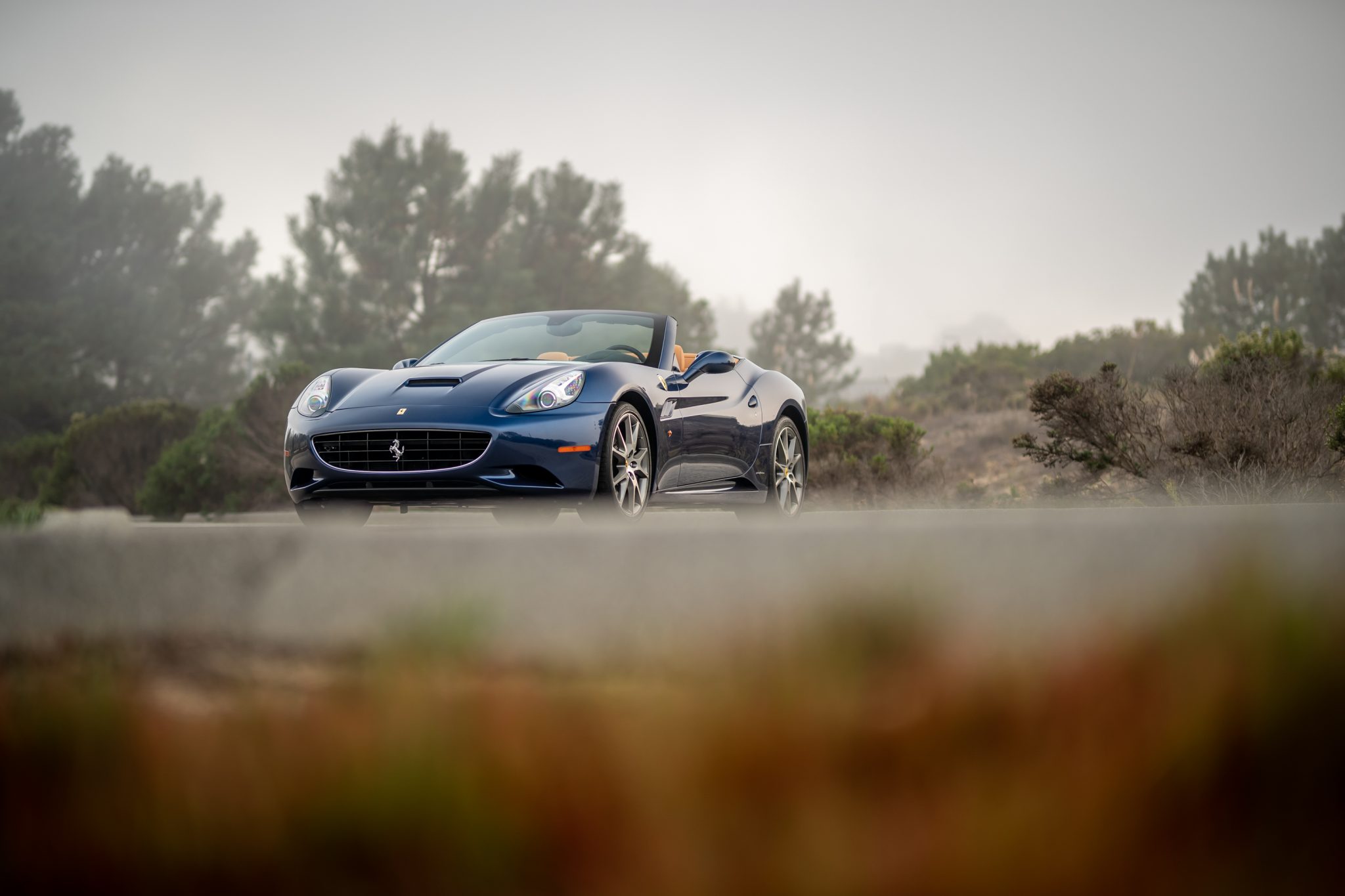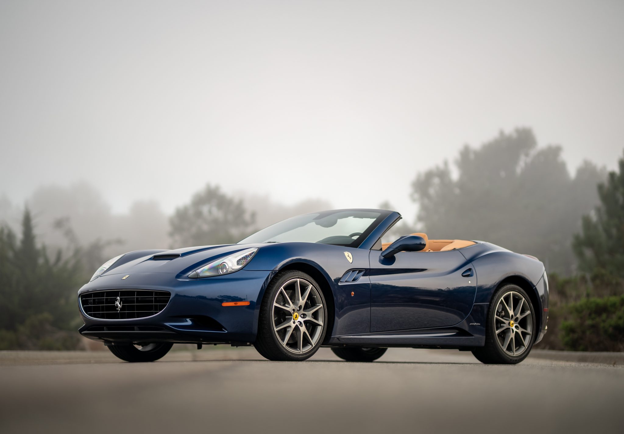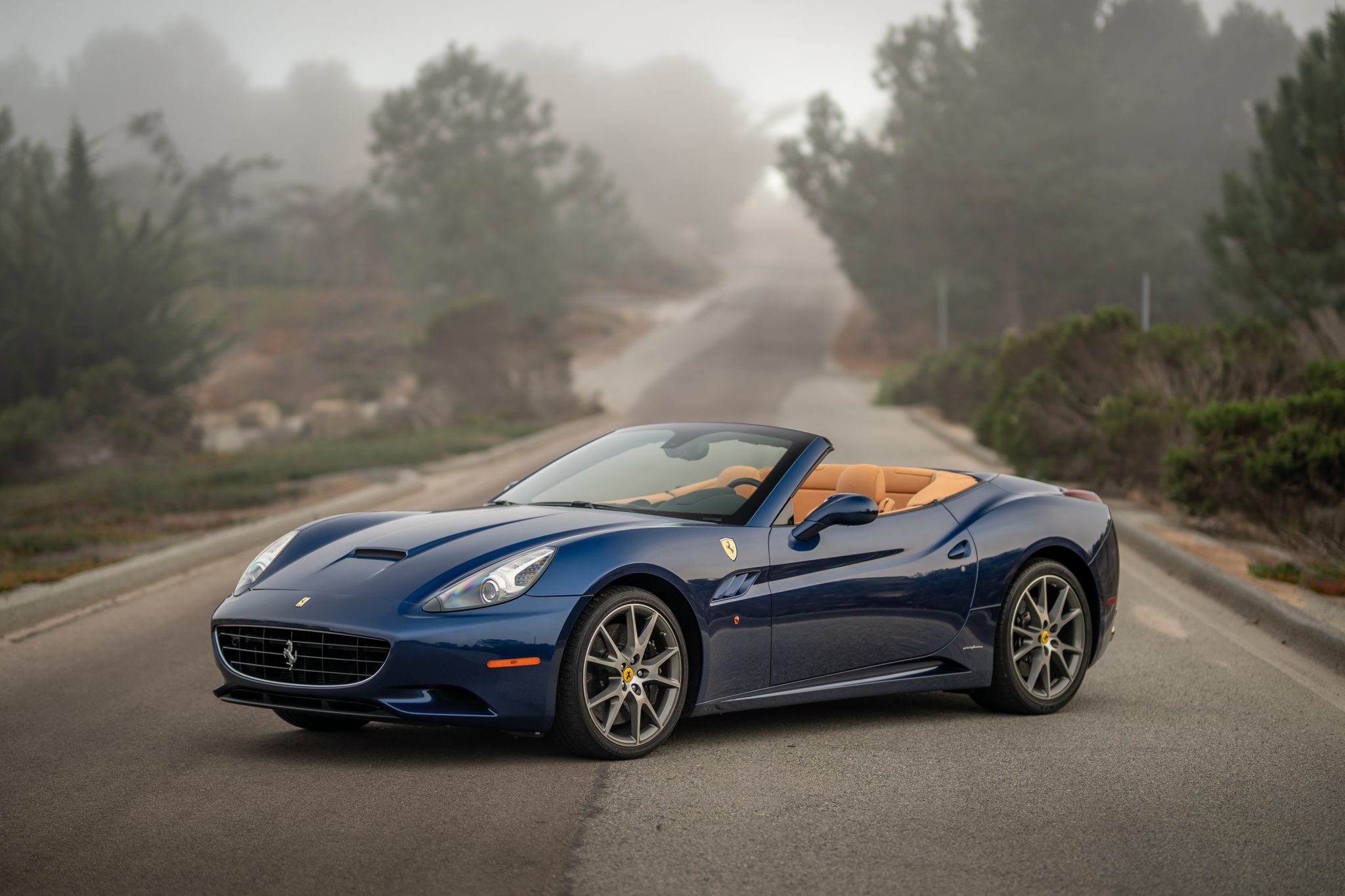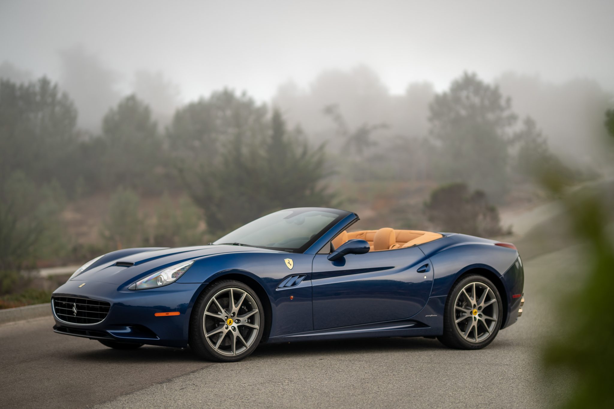 Factory 20″ wheels are fitted with yellow Cavallino center caps, and the seller reports that the pictured original Bridgestone tires were replaced since the car was photographed. The optional carbon-composite brake system features black-finished brake calipers, and the California was the first Ferrari road car to use a rear multi-link suspension system.