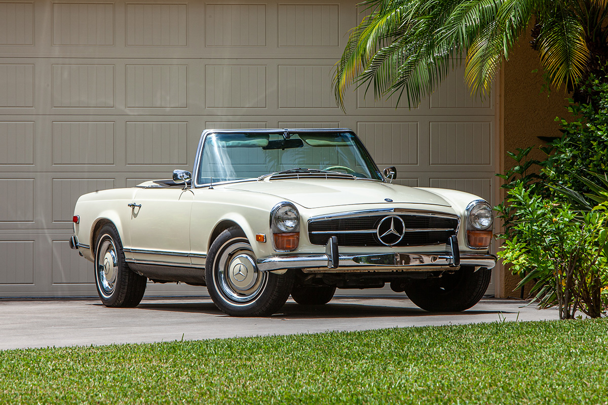 The 14″ body-colored steel wheels wear matching hubcaps, polished trim rings, and Michelin tires that the seller states should be replaced due to age. The front brake calipers, rotors, pads, and hoses were replaced in February 2020 per the seller, who states that the tie rod ends and center link should be replaced.