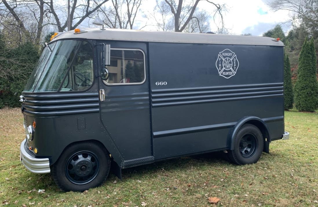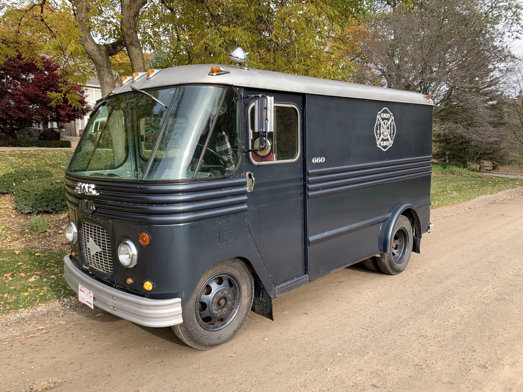 The steel wheels are finished in matching blue and are wrapped in bias-ply tires that, according to the seller, were installed approximately seven years ago and show cracking. Braking is handled by power-assisted drums at all four corners, and the seller states that the brake booster and master cylinder were replaced in 2012 during previous ownership.