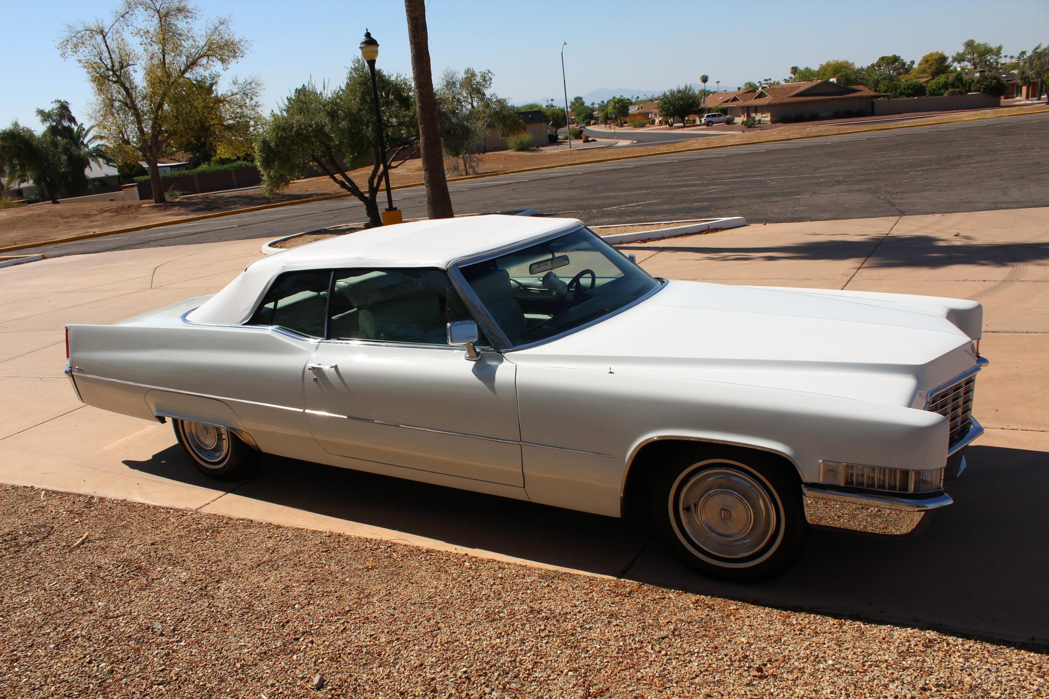 The 15″ wheels wear chrome covers with Cadillac crests and are mounted with 235/75 Cooper Trendsetter SE whitewall tires. Braking is from power-assisted front discs and rear drums.