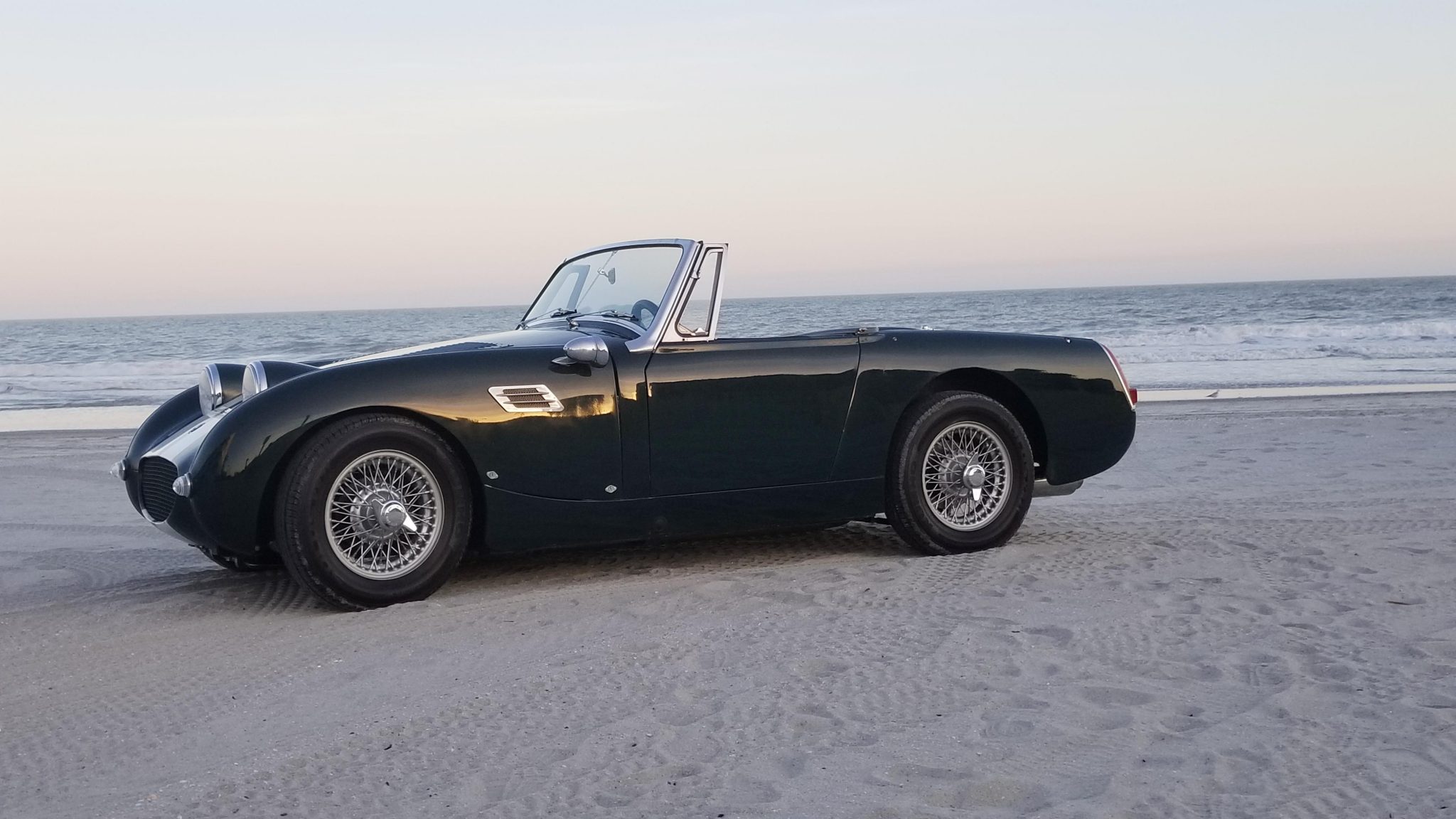 Chrome powder-coated 13″ wire wheels with polished knock-off hubs are wrapped in 175/70 Kumho Solus KR21 tires that were mounted in 2018. Wilwood disc brakes are fitted at all four corners, and a Wilwood triple master cylinder setup has replaced the factory master cylinder. The front suspension was modified with tube shocks as well as tubular upper and lower A-arms.