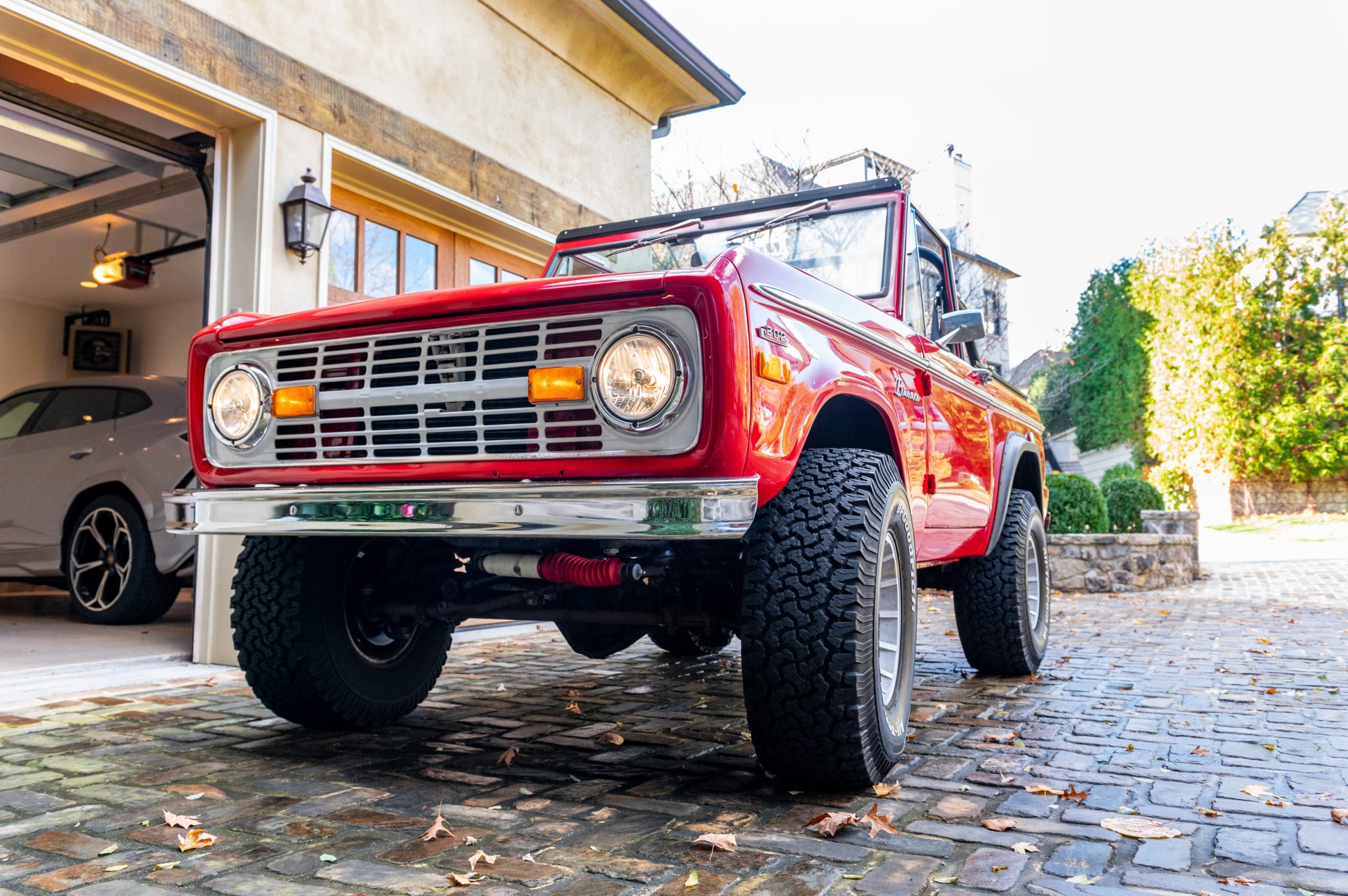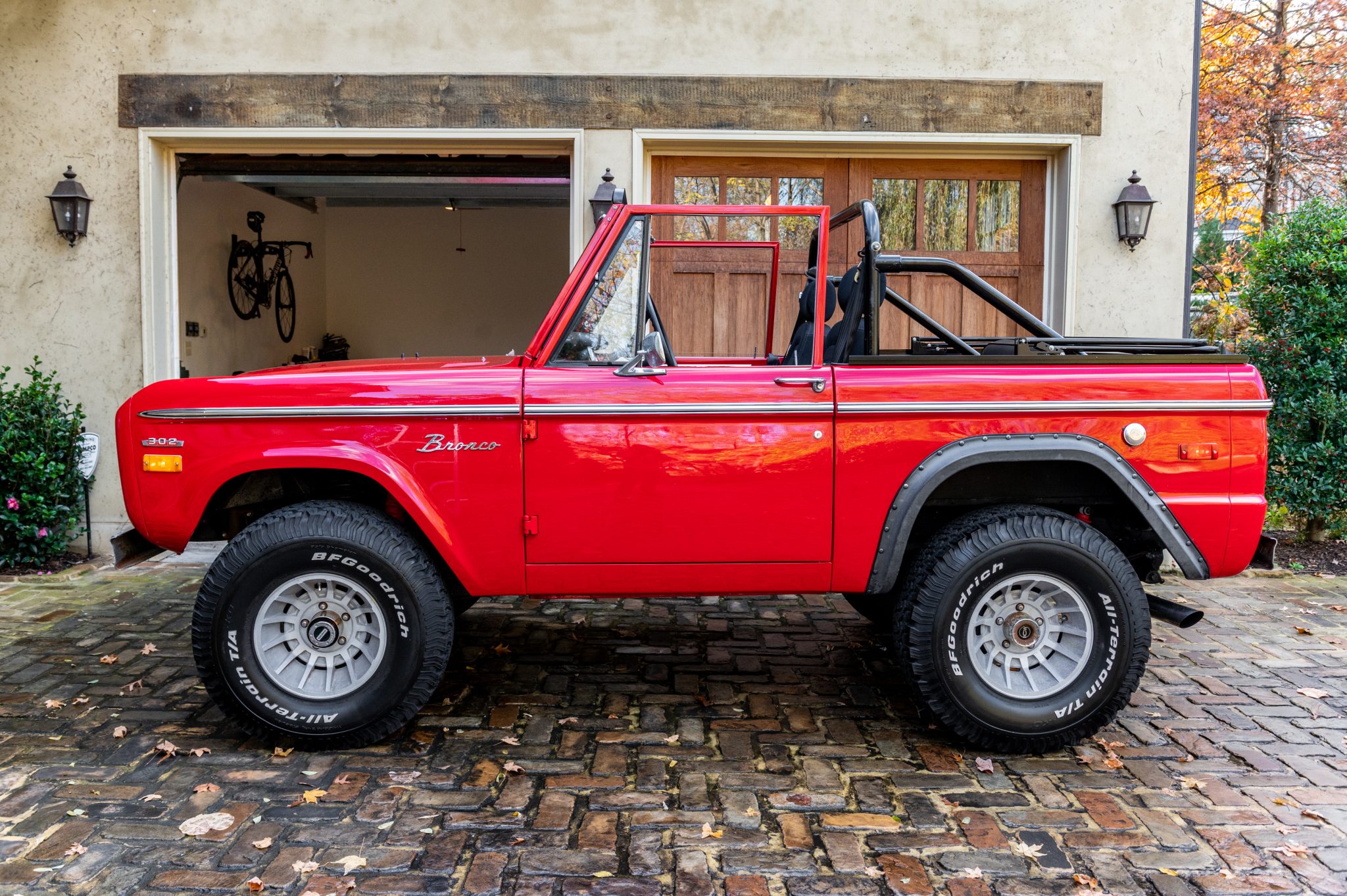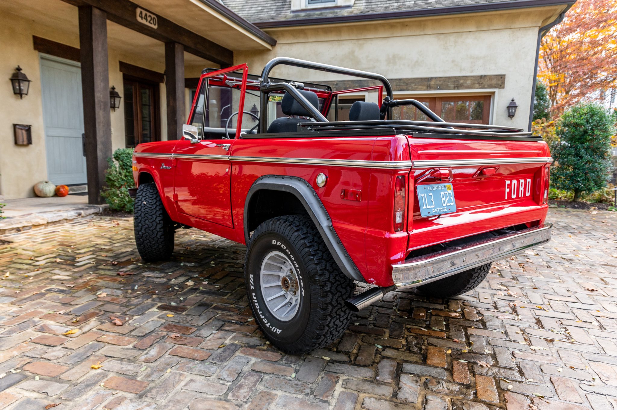 15″ ICW wheels are mounted with 33×12.5″ BFGoodrich All-Terrain T/A KO tires. The front axle is equipped with manually-lockable hubs, and corrosion is noted on the lug nuts and the rear center caps. Power steering and power-assisted disc brakes have been retrofitted, the suspension has been lubricated, and the tires, shocks, drag link, tie rods, track bar, and steering stabilizer have been replaced during current ownership.