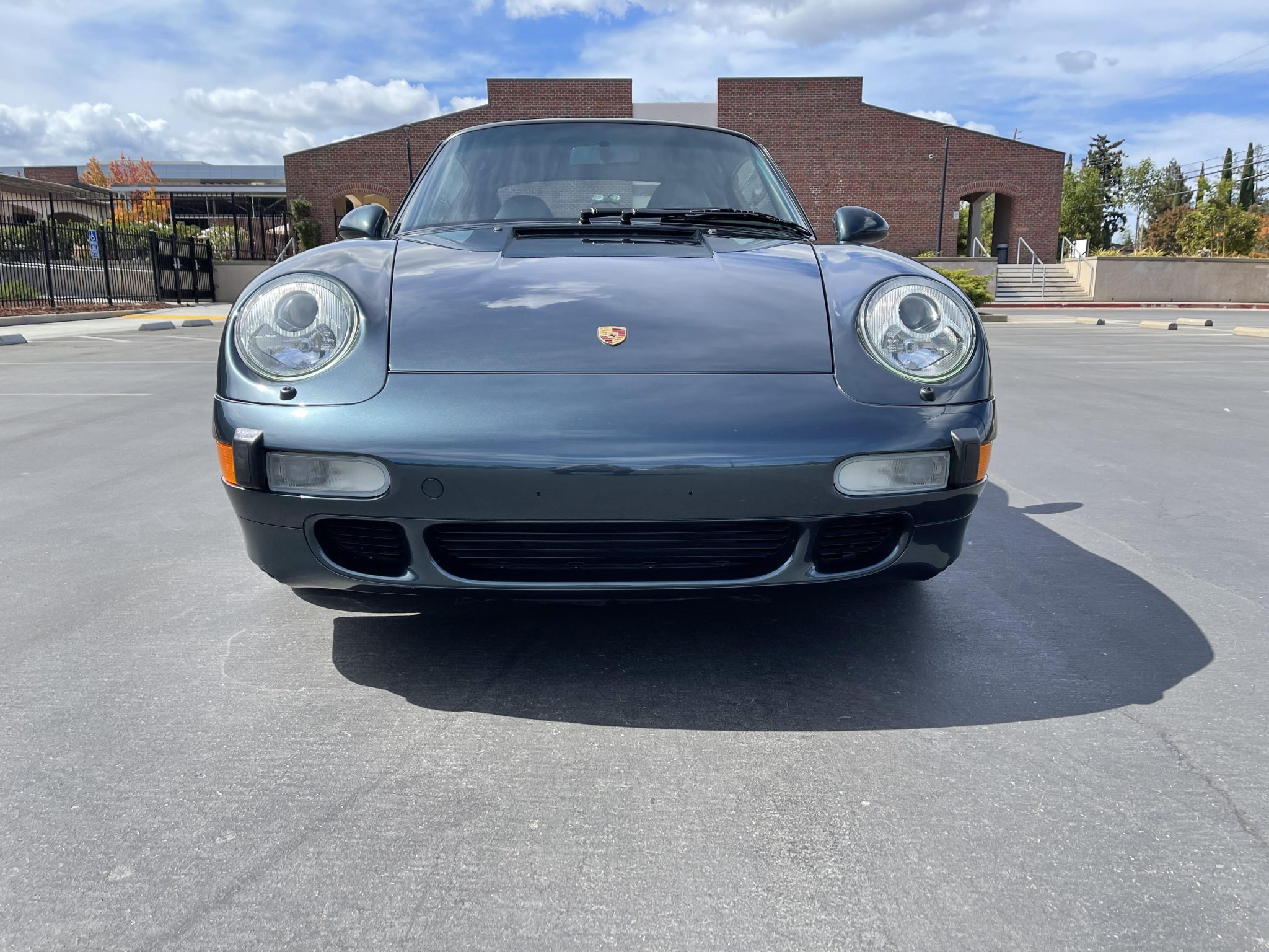 Staggered-width 18″ Turbo Twist wheels are mounted with Pirelli tires, and the seller states that the rear tires are in need of replacement. Braking is handled by red four-piston calipers over cross-drilled rotors at all four corners.