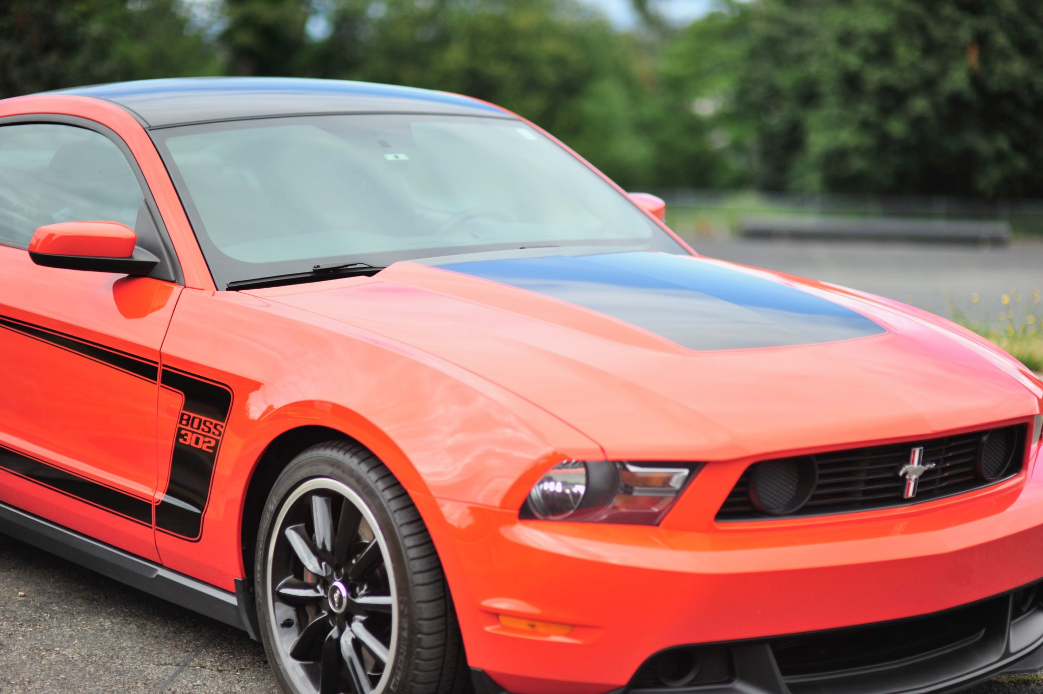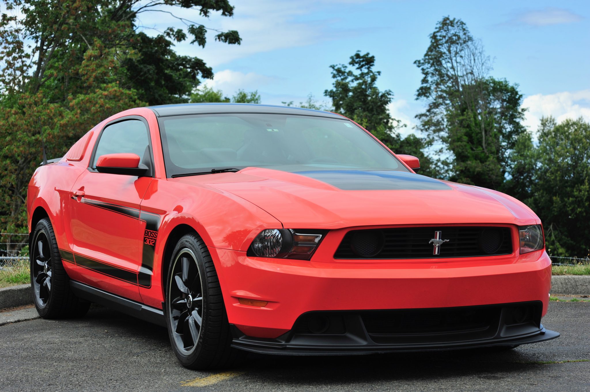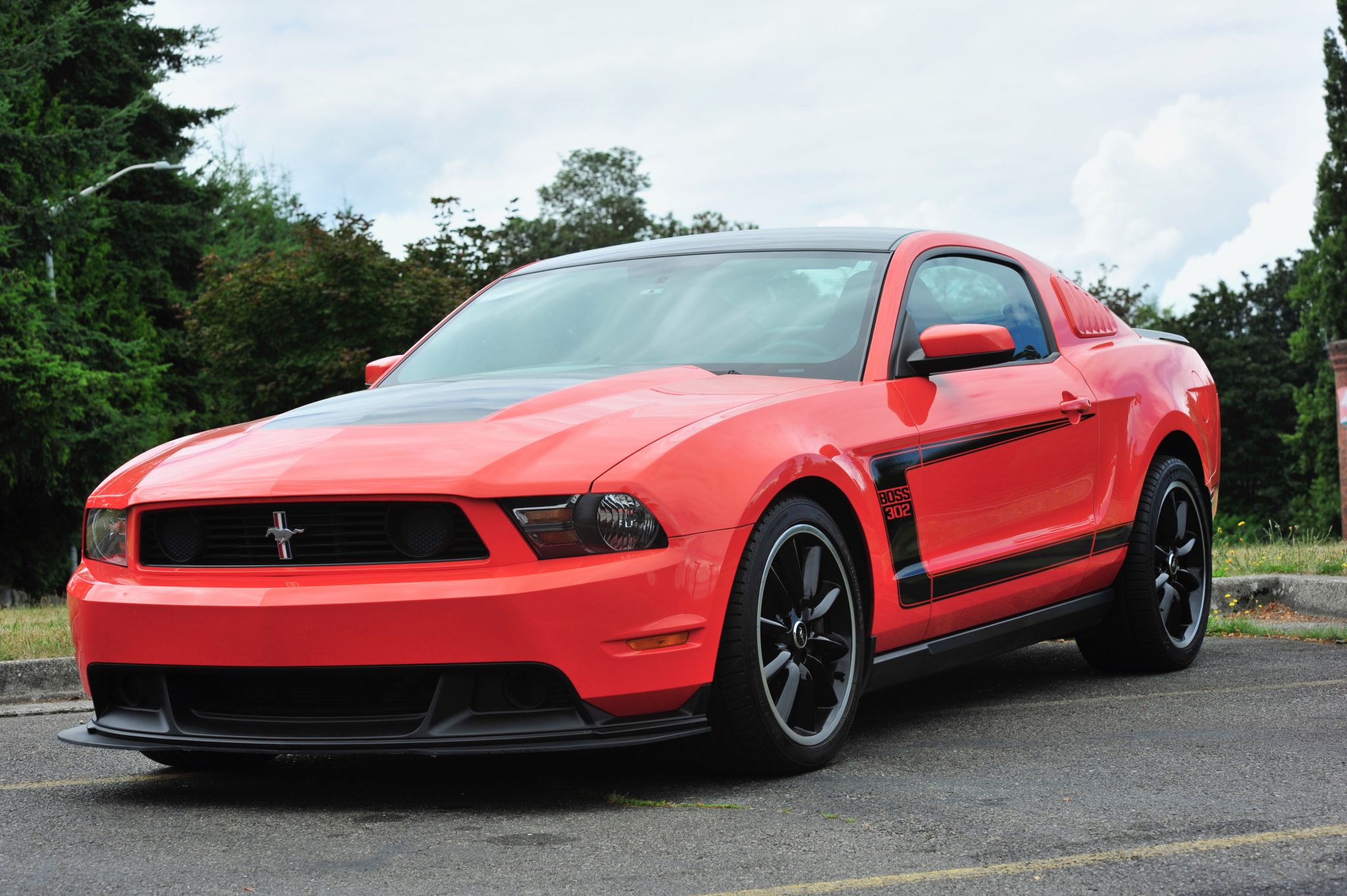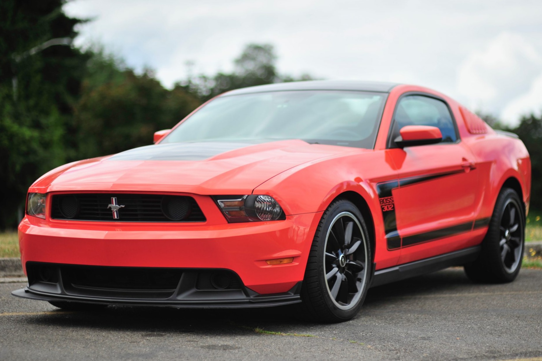 Factory staggered-width 19″ wheels wear 255/40 front and 285/35 rear Michelin Pilot Sport A/S 3+ tires. The Boss 302 featured a lowered suspension, five-way adjustable dampers, unique front and rear coil springs, and a revised rear sway bar and bushings. The four-wheel disc brakes are equipped with four-piston Brembo calipers up front.