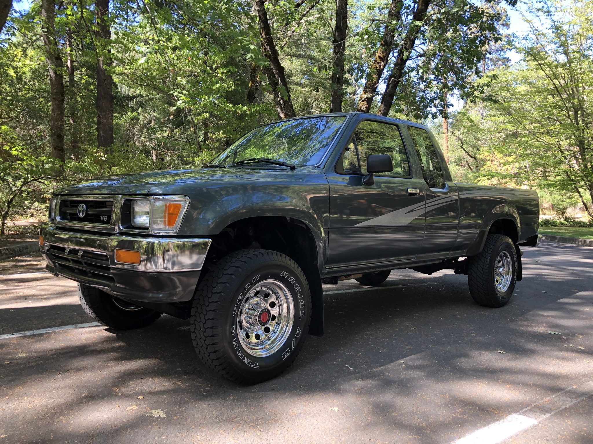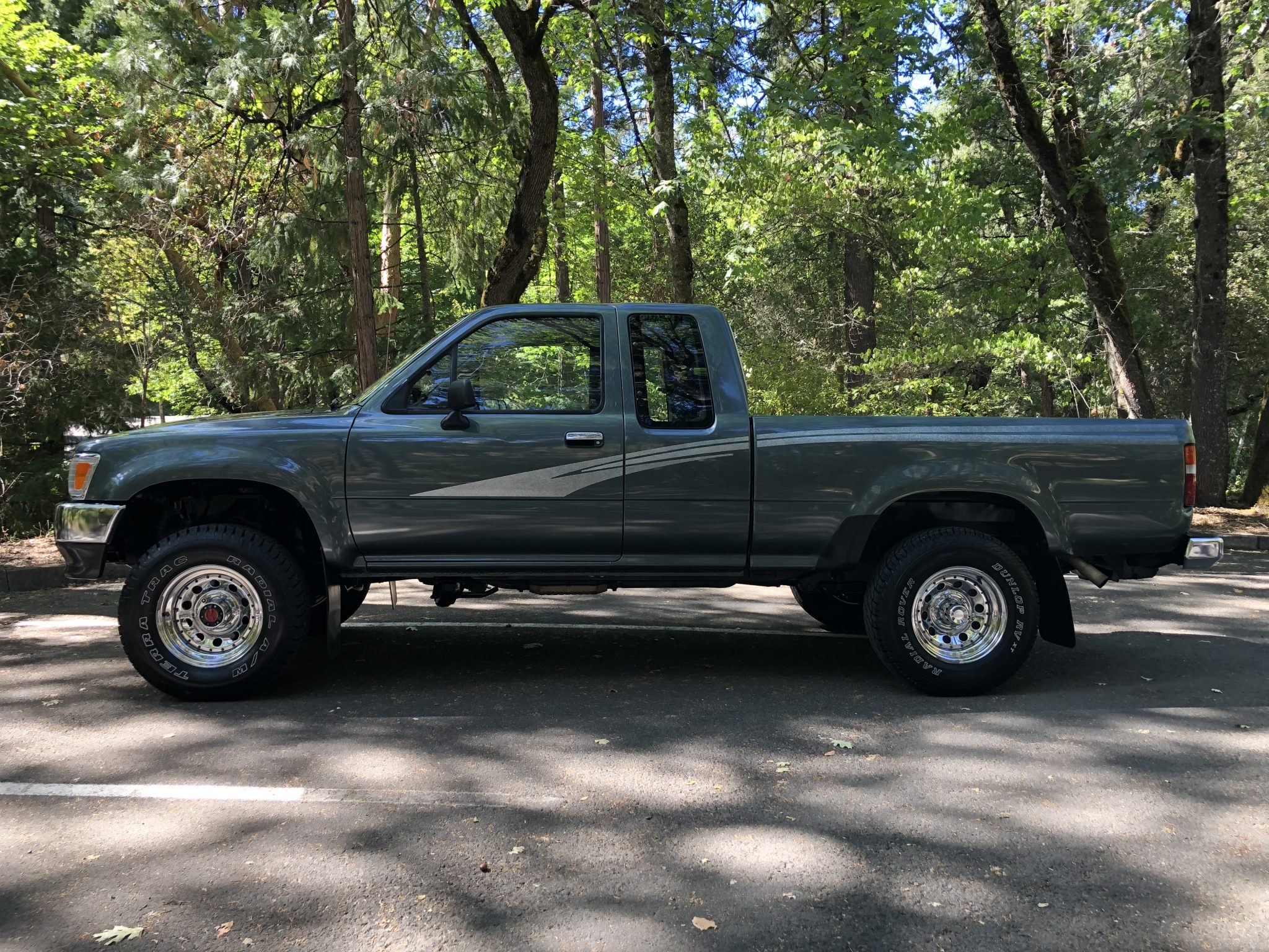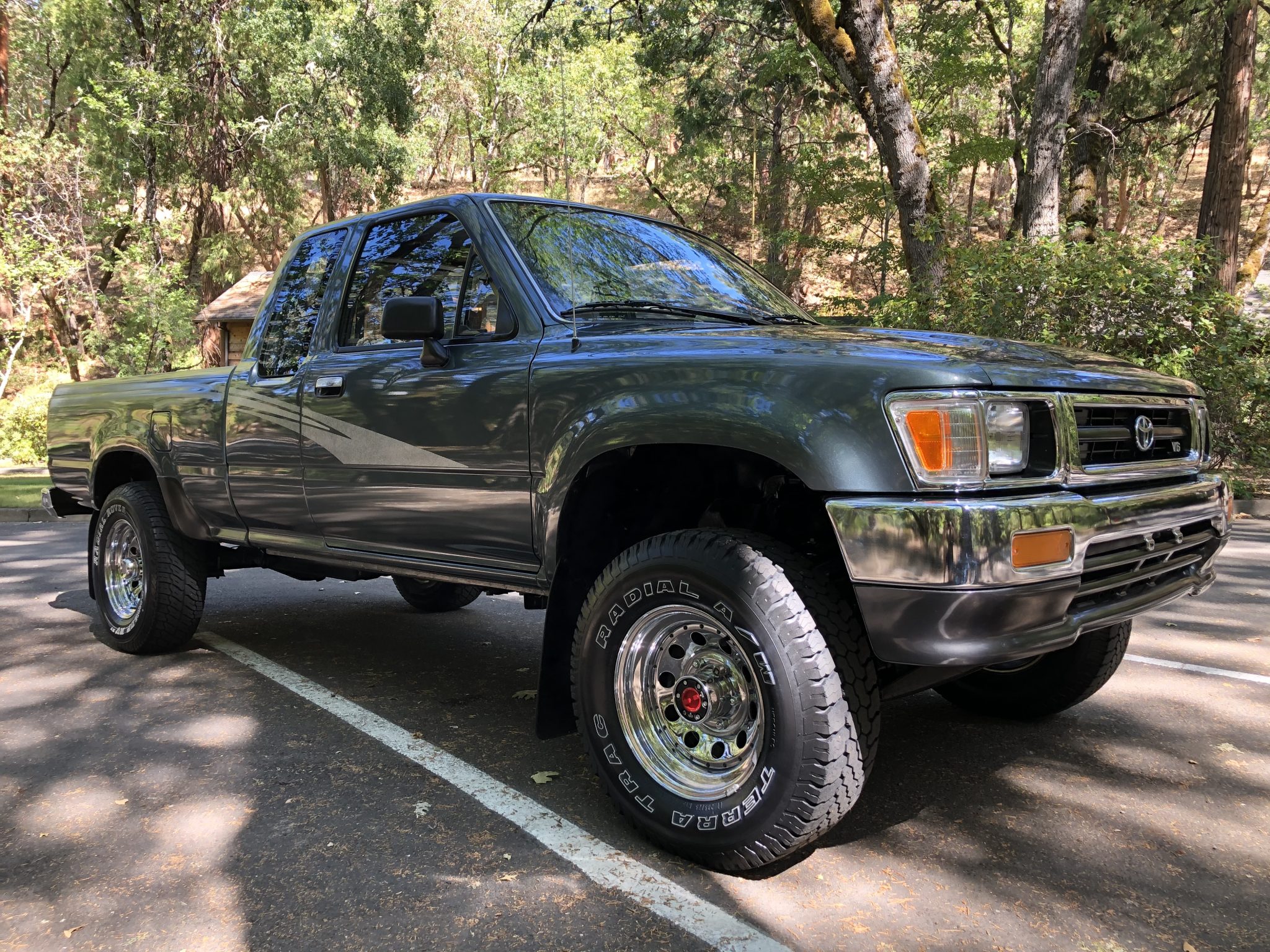 Aftermarket 15″ chrome wheels wear older tires that should be replaced per the seller. The front axle is equipped with Aisin manually-locking hubs.