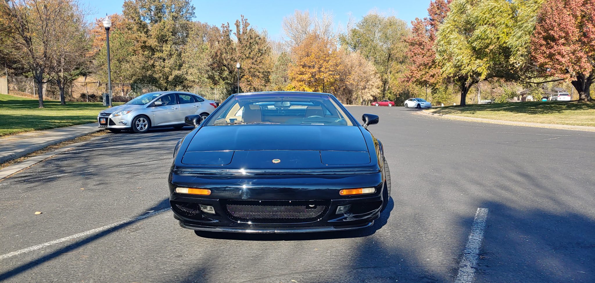 17″ front and 18″ rear six-spoke alloy wheels are wrapped in Falken Azenis tires measuring 235/40 up front and 285/35 out back. Cross-drilled and slotted front rotors are paired with Brembo front brake calipers, and the four-wheel independent suspension utilizes coilovers at each corner.