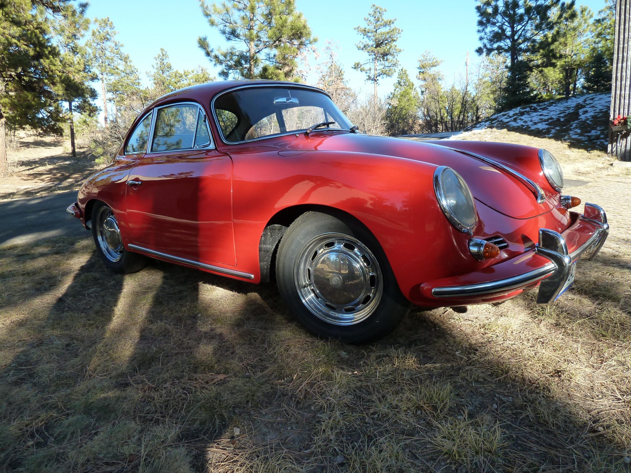 Chrome 15″ wheels wear polished caps and are mounted with Vredestein Sprint Classic tires. A painted spare wheel with matching rubber is mounted in the front trunk along with a jack and a tool roll containing two tools. Bilstein shocks are fitted at all four corners, and replacement brake cylinders and pads were reportedly fitted in 2020 along with a rebuild of the brake master cylinder. Replacement fuel lines were installed by Carquip of Boulder, Colorado, in 2020.