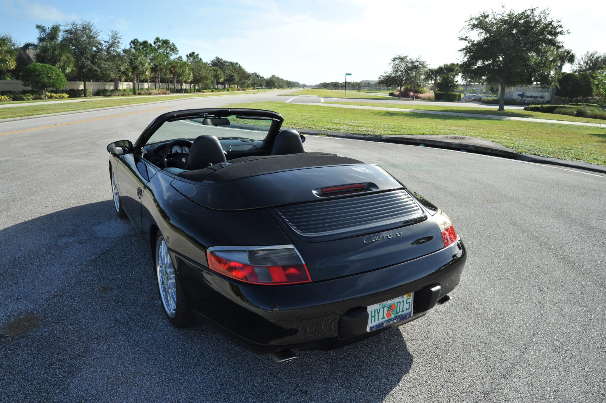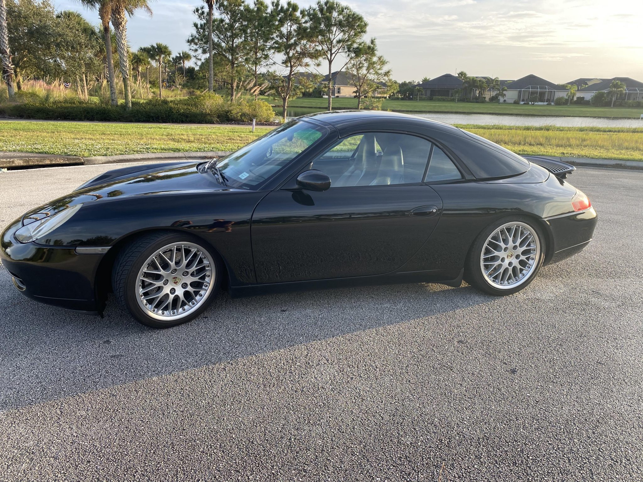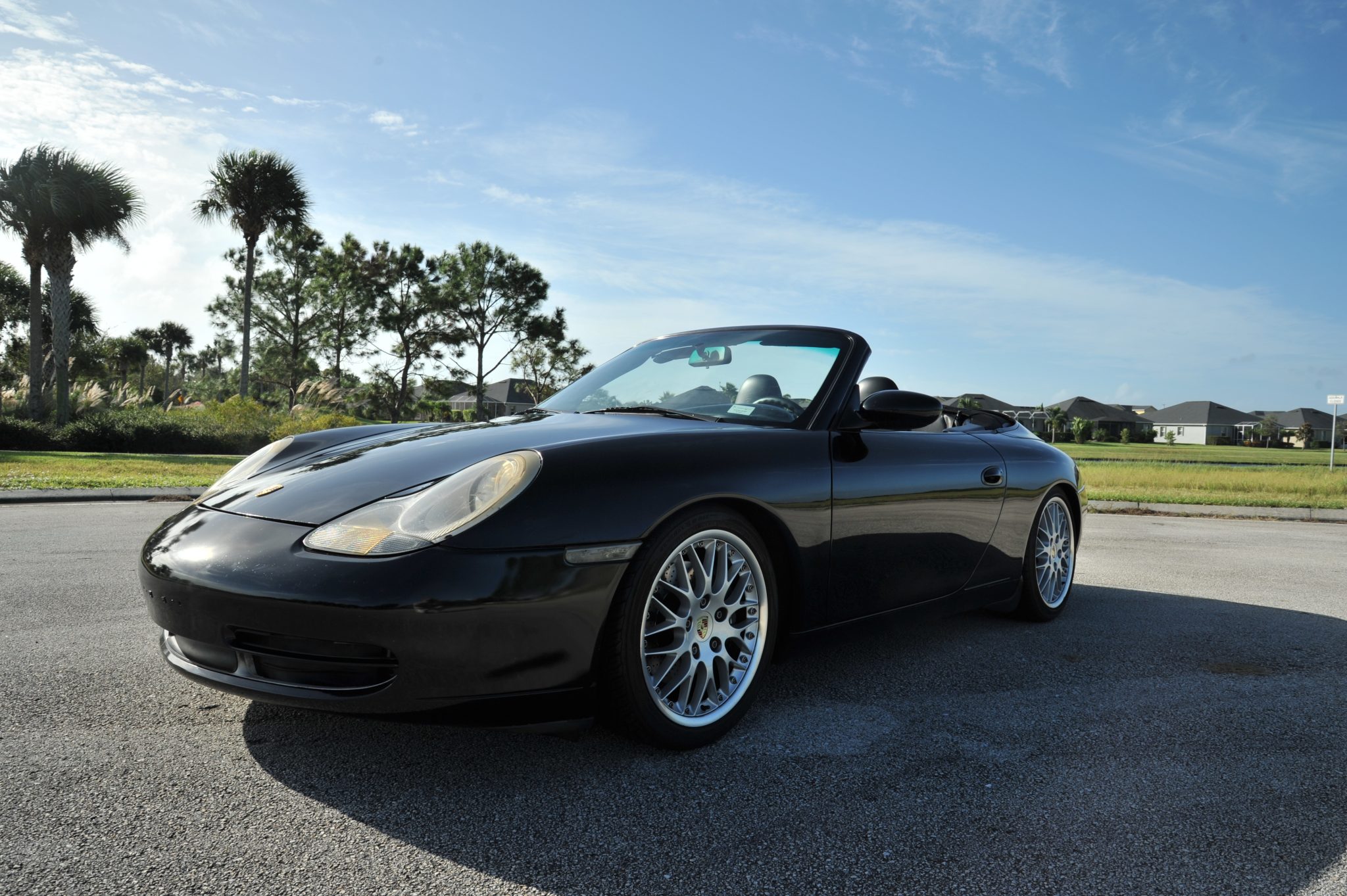 Optional Sport Classic 18″ wheels feature Porsche-crest center caps and wear General G-Max 225/40 tires up front and Michelin Pilot Sport A/S 3 265/35 tires out back. Suspension modifications include Bilstein B8 shocks and Eibach springs. Braking is provided by Porsche-branded calipers with cross-drilled rotors and GT3 front cooling ducts. A set of Turbo Twist wheels wearing an older set of tires are included in the sale.
