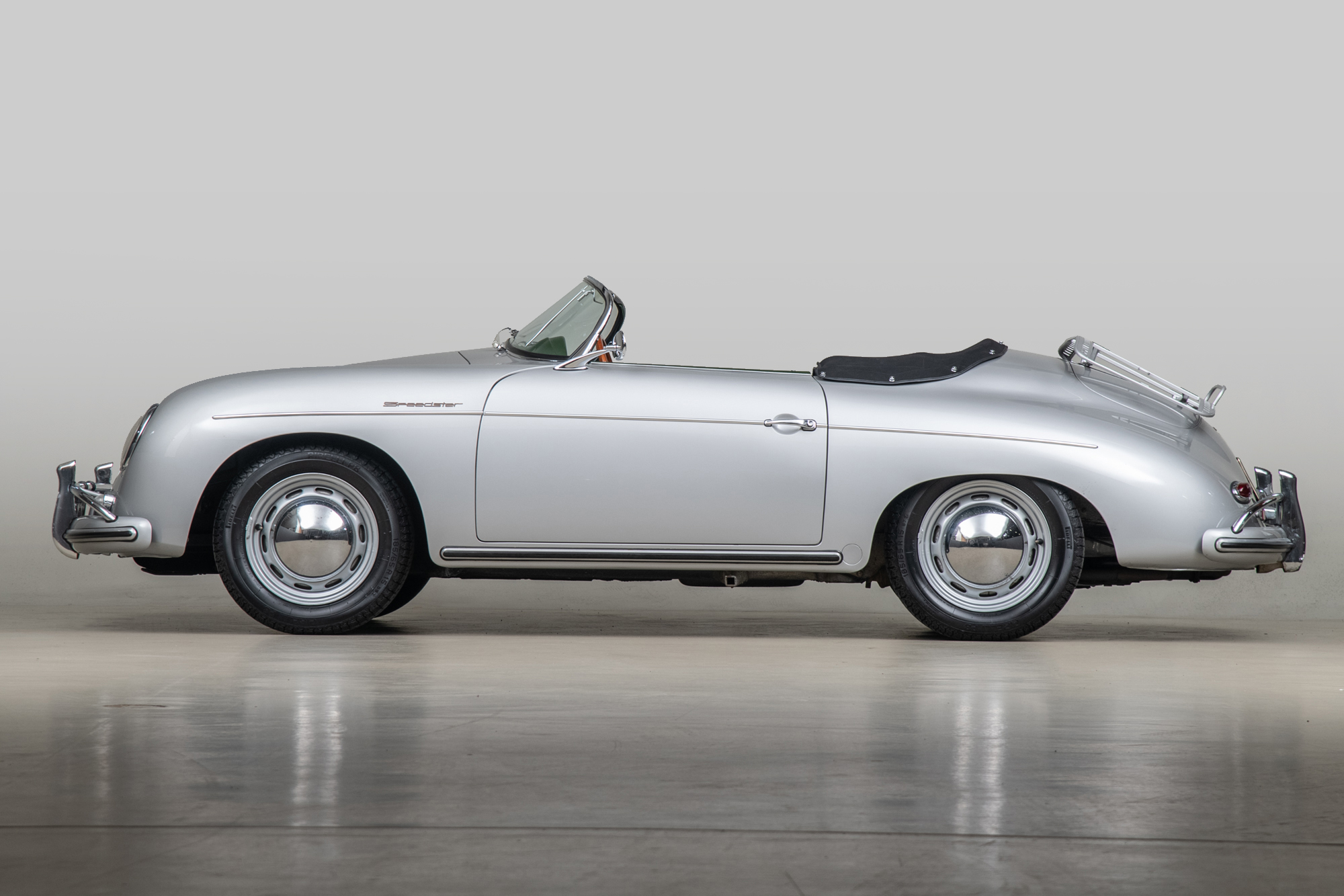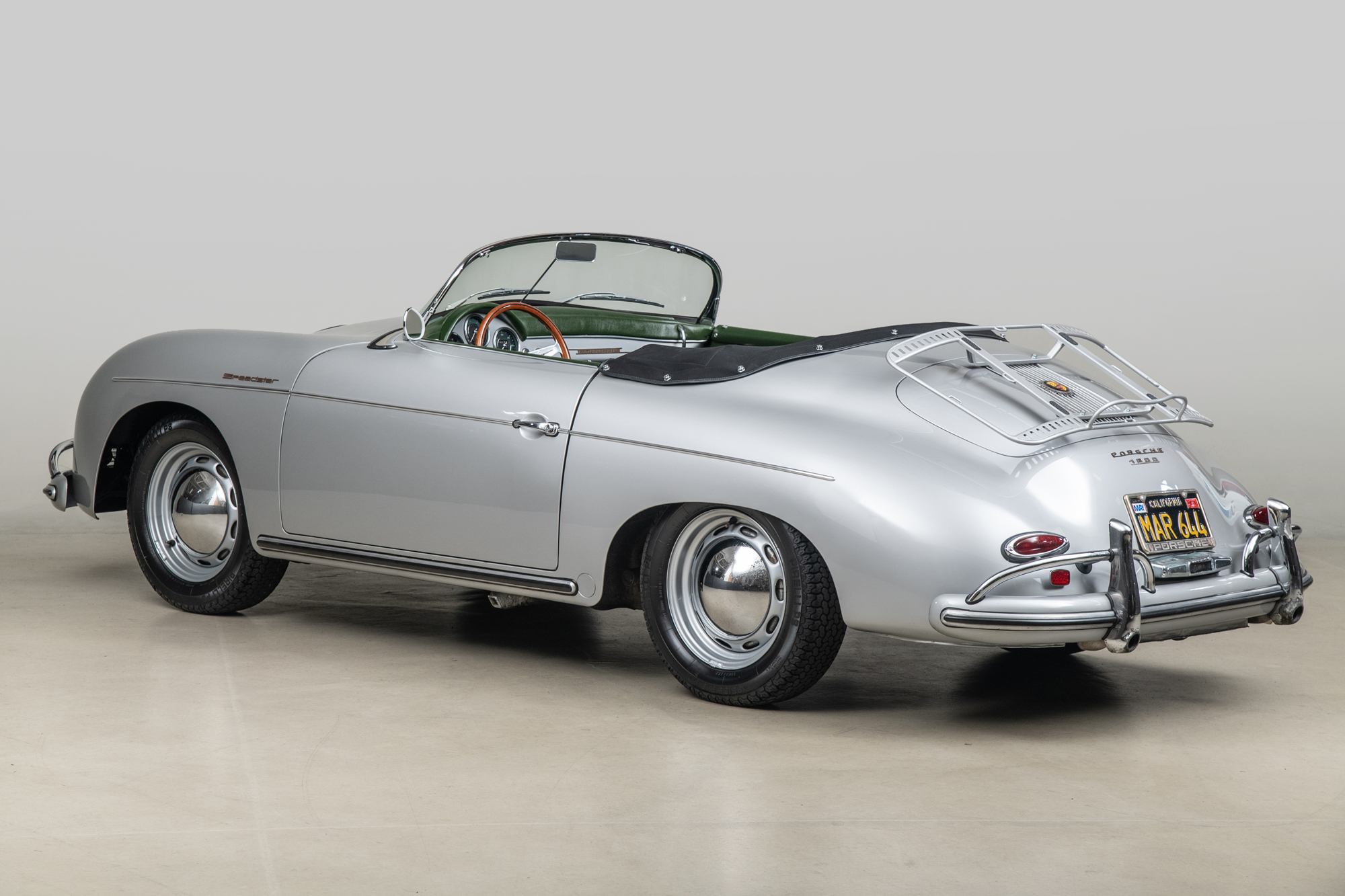 The car is equipped with a black convertible top, black top boot, single sideview mirror, bumper overriders, and a luggage rack mounted to the rear engine cover. A set of side curtains is included and pictured in the gallery below. Note that black, six-digit California license plates are fitted front and rear.