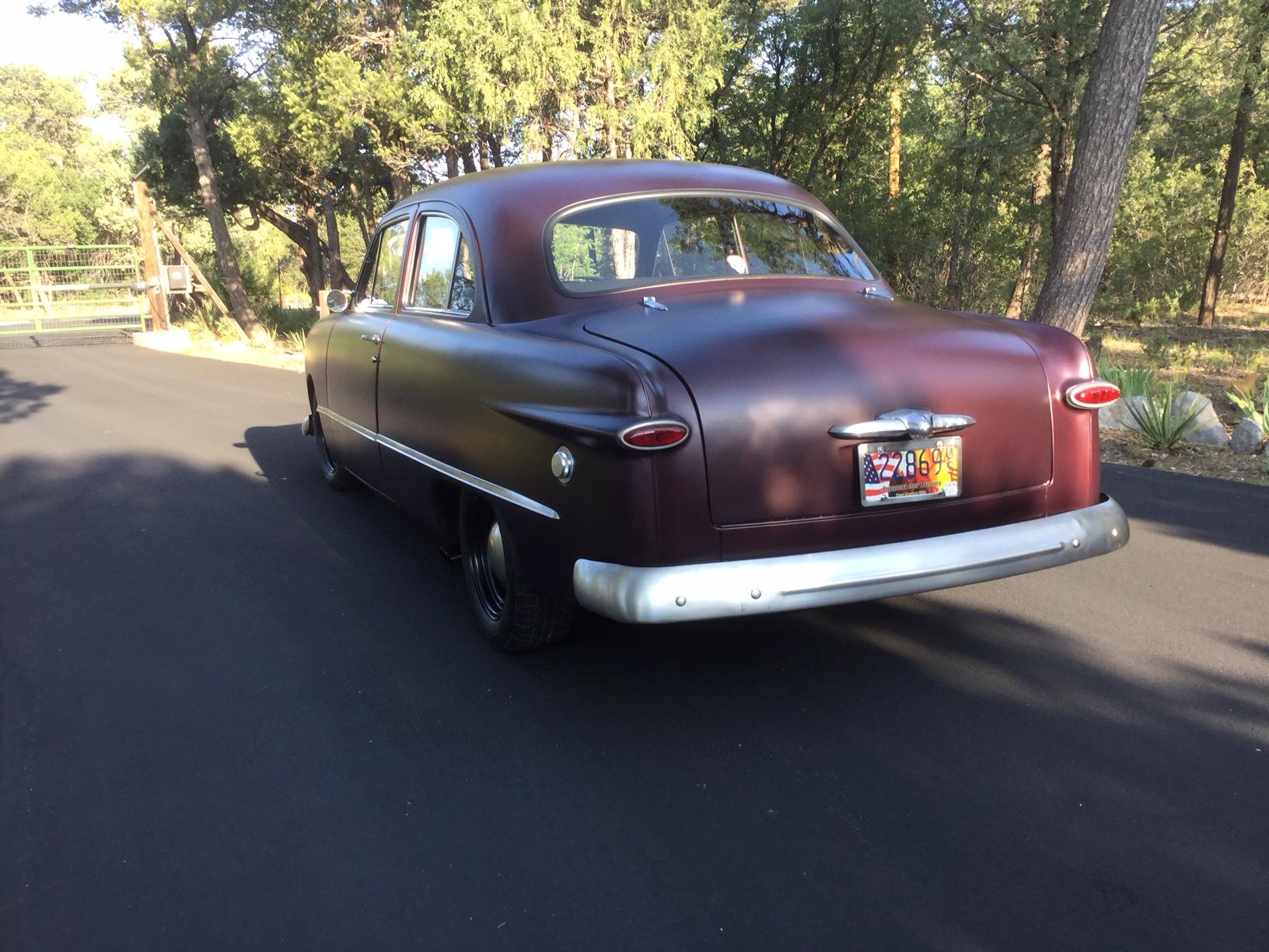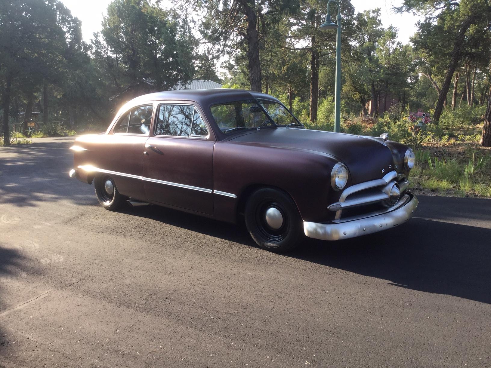 The painted 15″ Smoothies from Wheel Vintinques wear dog-dish hubcaps and are wrapped in 205/65 BFGoodrich Advantage tires. The suspension has been modified with a Fatman Fabrication front subframe with QA1 coilovers and rear Posie super slide leaf springs, and a Progressive Automotive Panhard bar. Power steering, four-wheel disc brakes, swaybars, and an E-Stop emergency brake were installed.