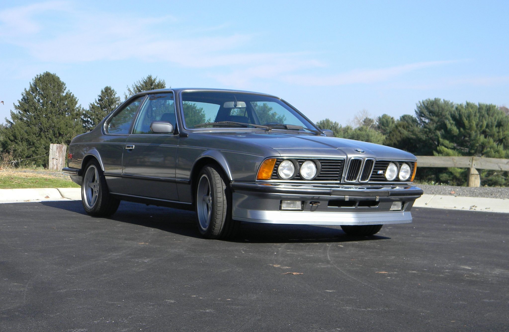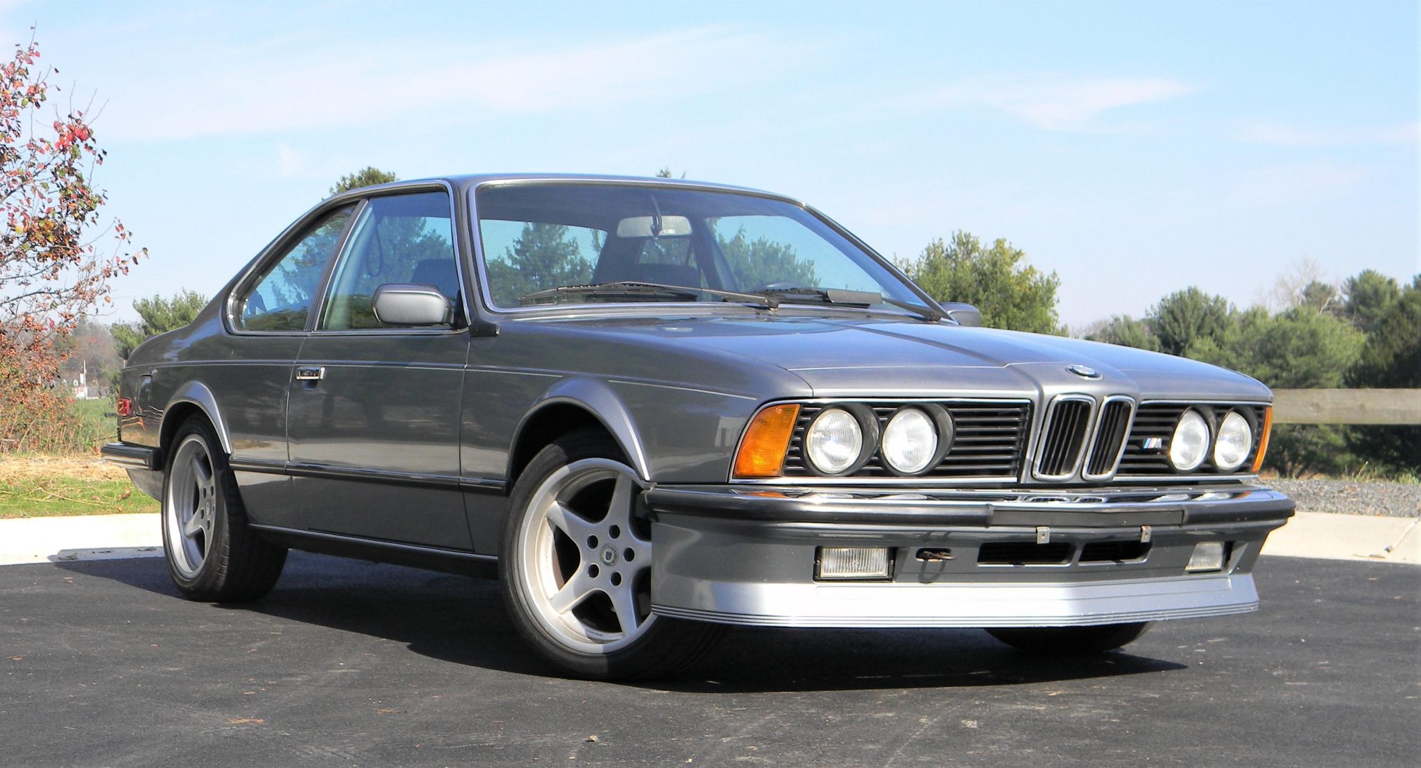 Racing Dynamics RGP 17″ wheels are wrapped in Continental ContiSportContact 3 tires. Multi-piece BBS wheels are also included in the sale and shown in the gallery below. The M635CSi was equipped with stiffer springs, a 26mm front sway bar, and Bilstein shocks from the factory.