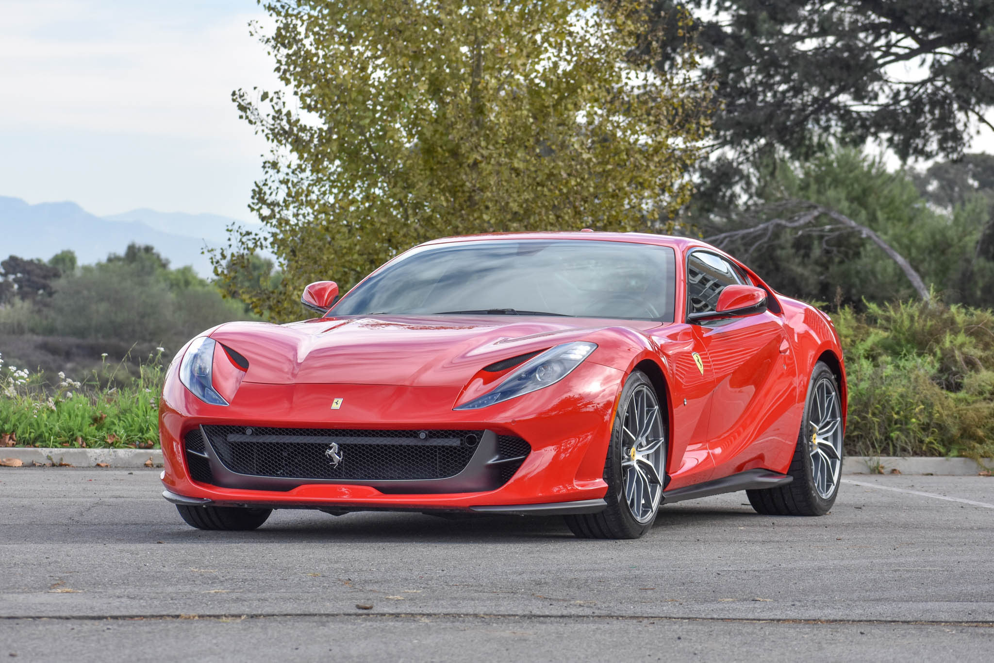 20″ forged diamond-cut racing wheels are mounted with Pirelli P Zero tires measuring 275/35 up front and 315/35 out back. Braking is handled by Brembo Extreme Design brakes with carbon-ceramic discs and silver-finished Ferrari-branded calipers. The 812 Superfast is equipped with rear-wheel steering as standard, and this example is fitted with an optional suspension-lift system.