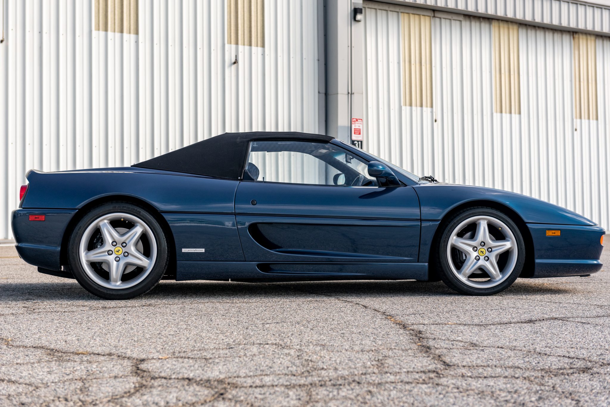 Factory 18″ five-spoke wheels wear yellow prancing horse centers and valve-stem caps and are mounted with 225/40 front and and 265/40 rear Bridgestone Expedia S-01 tires. Each corner is equipped with black-painted four-piston brake calipers.