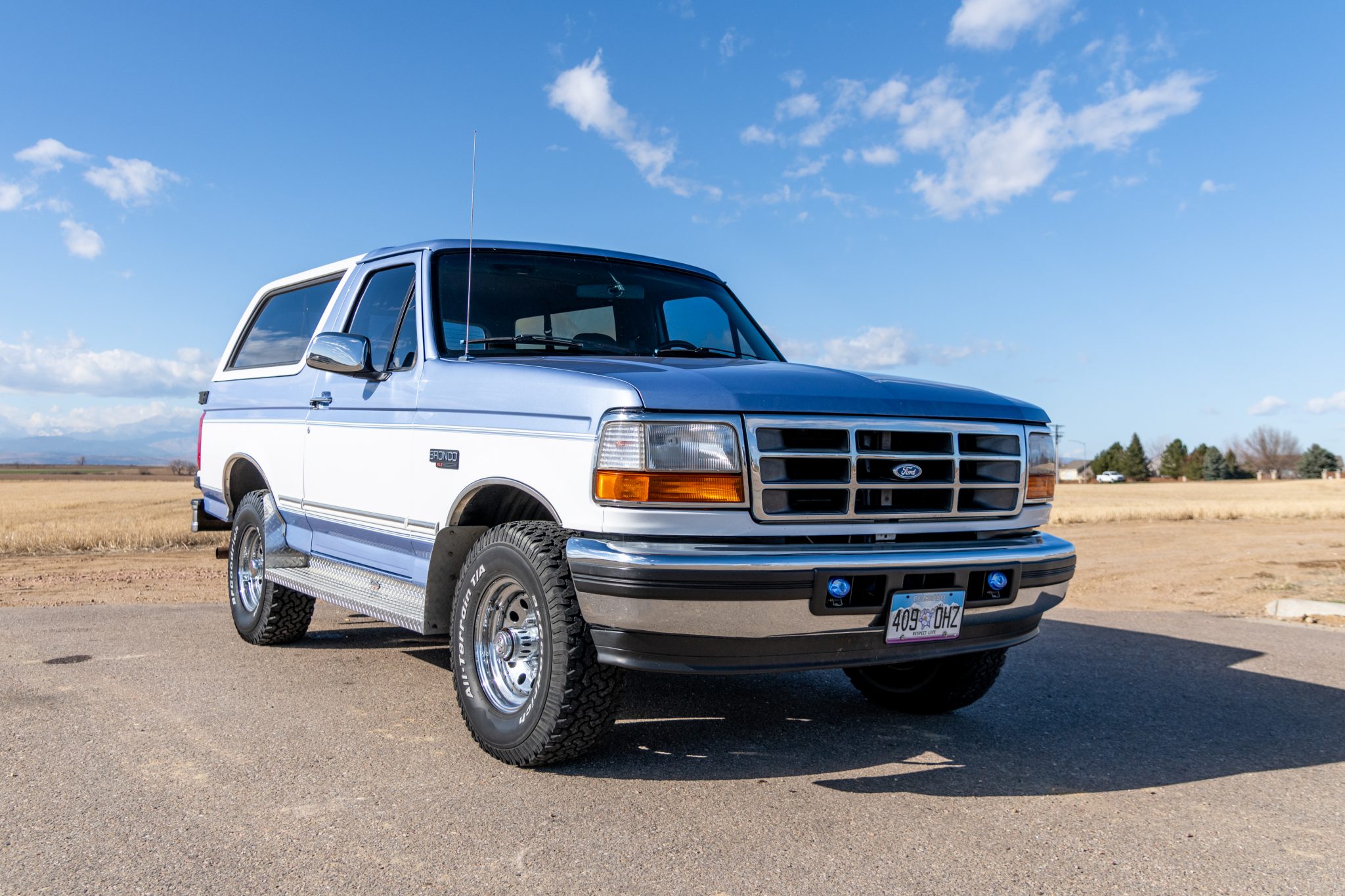 Chrome 15″ wheels wear 31″x10.5″ BFGoodrich All-Terrain T/A KO tires. A spare protected by a cover is mounted to the swing-out rear carrier. Braking is handled by front discs and rear drums, and the truck is equipped with automatic-locking front hubs, front and rear sway bars, and Rancho shock absorbers. The seller reportedly serviced the brakes and replaced bushings.