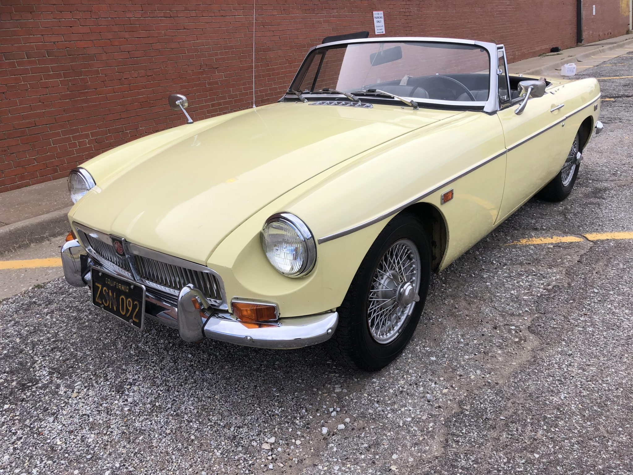 Factory 14″ wire wheels are equipped with two-eared knock-off spinners and wrapped in Michelin XZX radial tires showing pre-2000 production dates.