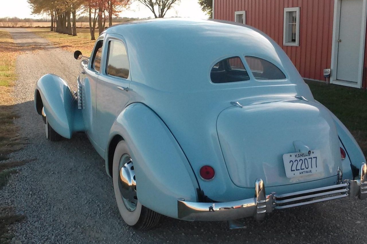 Blue-painted steel wheels wear chrome covers and are wrapped in wide whitewall tires. Stopping power is provided by hydraulic drums at all four corners, and the seller notes that the brakes have been overhauled and that the master cylinder has been re-sleeved. The car features independent front suspension with trailing arms, and the rear leaf springs are equipped with coverings.
