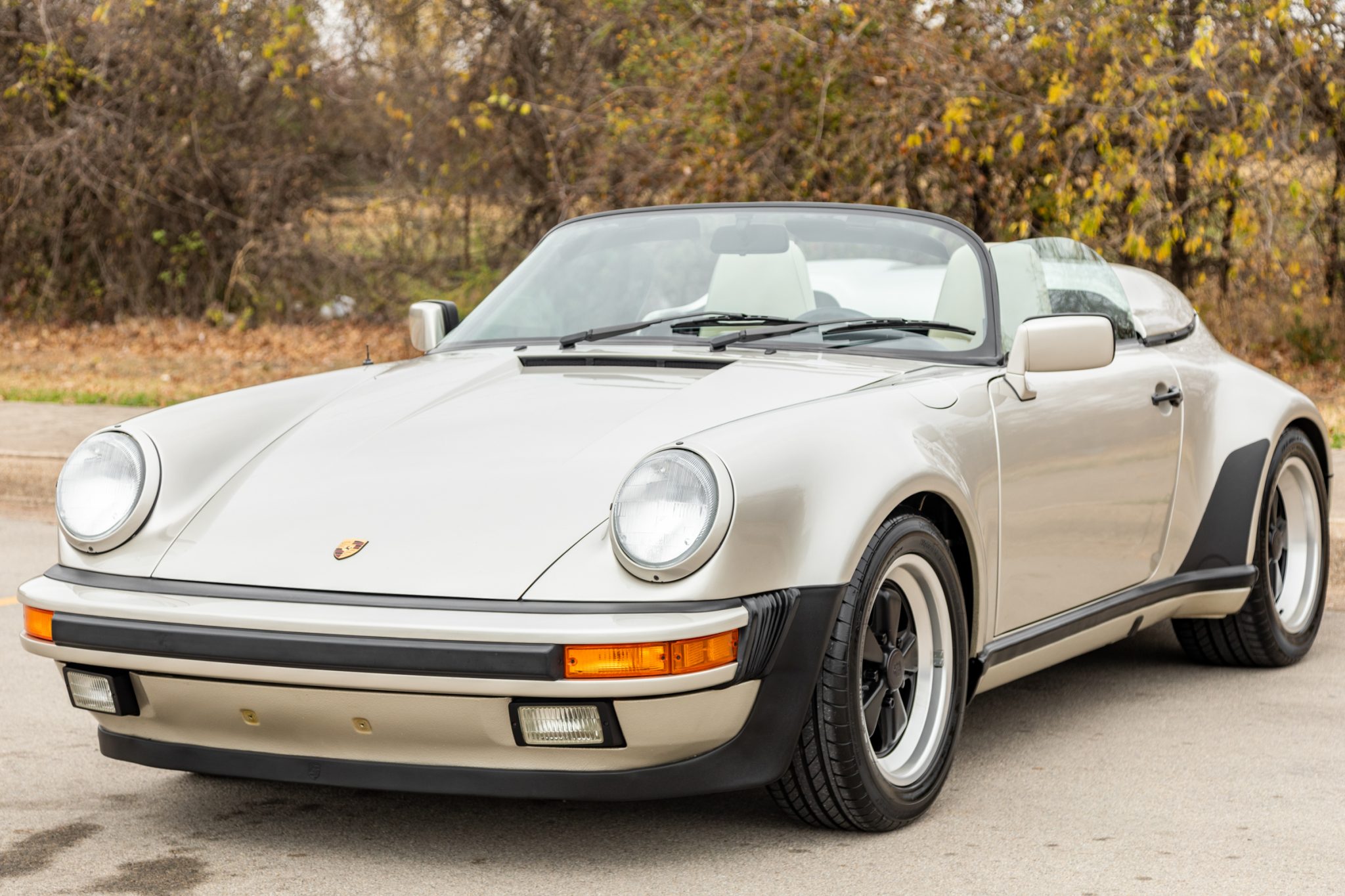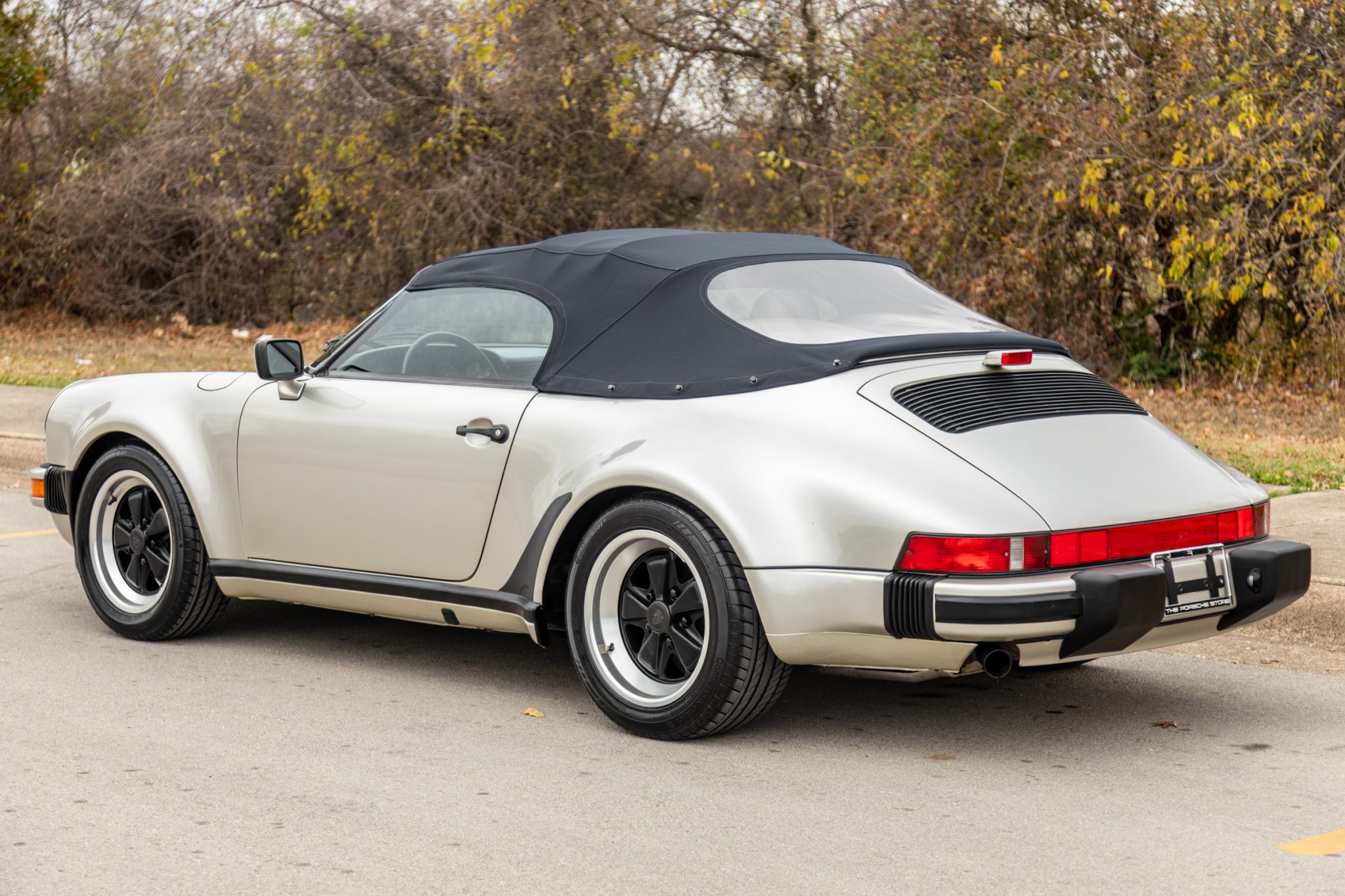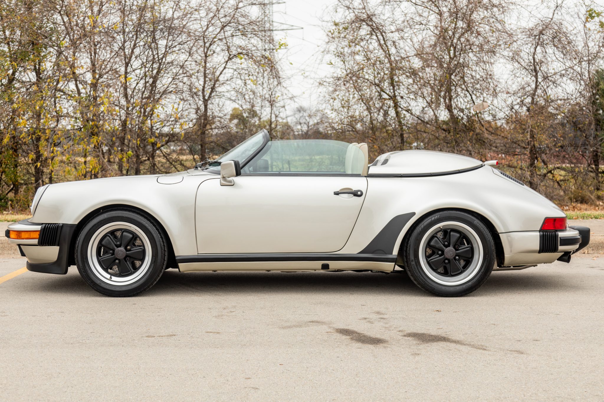 The 16” staggered-width Fuchs wheels feature black centers with polished lips and are wrapped in Continental ContiSportContact tires measuring 205/55 up front and 245/45 out back. Stopping power is provided by cross-drilled four-wheel discs paired with Porsche-branded calipers.