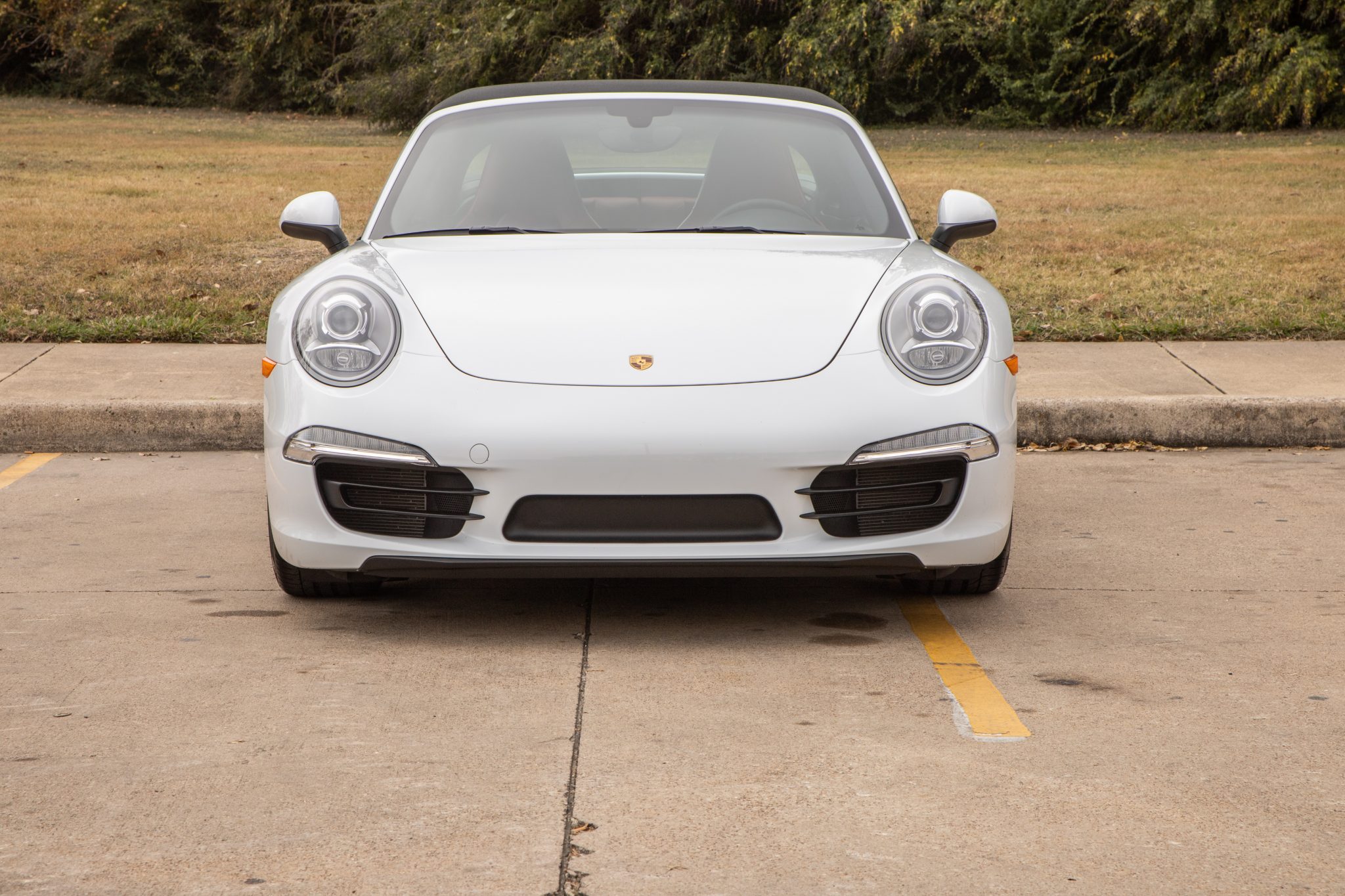 Factory 20″ Carrera S wheels with colored Porsche-crest center caps are wrapped in staggered-width Pirelli P Zero tires. Braking is handled by red-finished monoblock six-piston front and four-piston rear calipers with cross-drilled rotors. Porsche Active Suspension Management (PASM) is fitted as standard and features a 10mm lower ride height compared to non-S models.