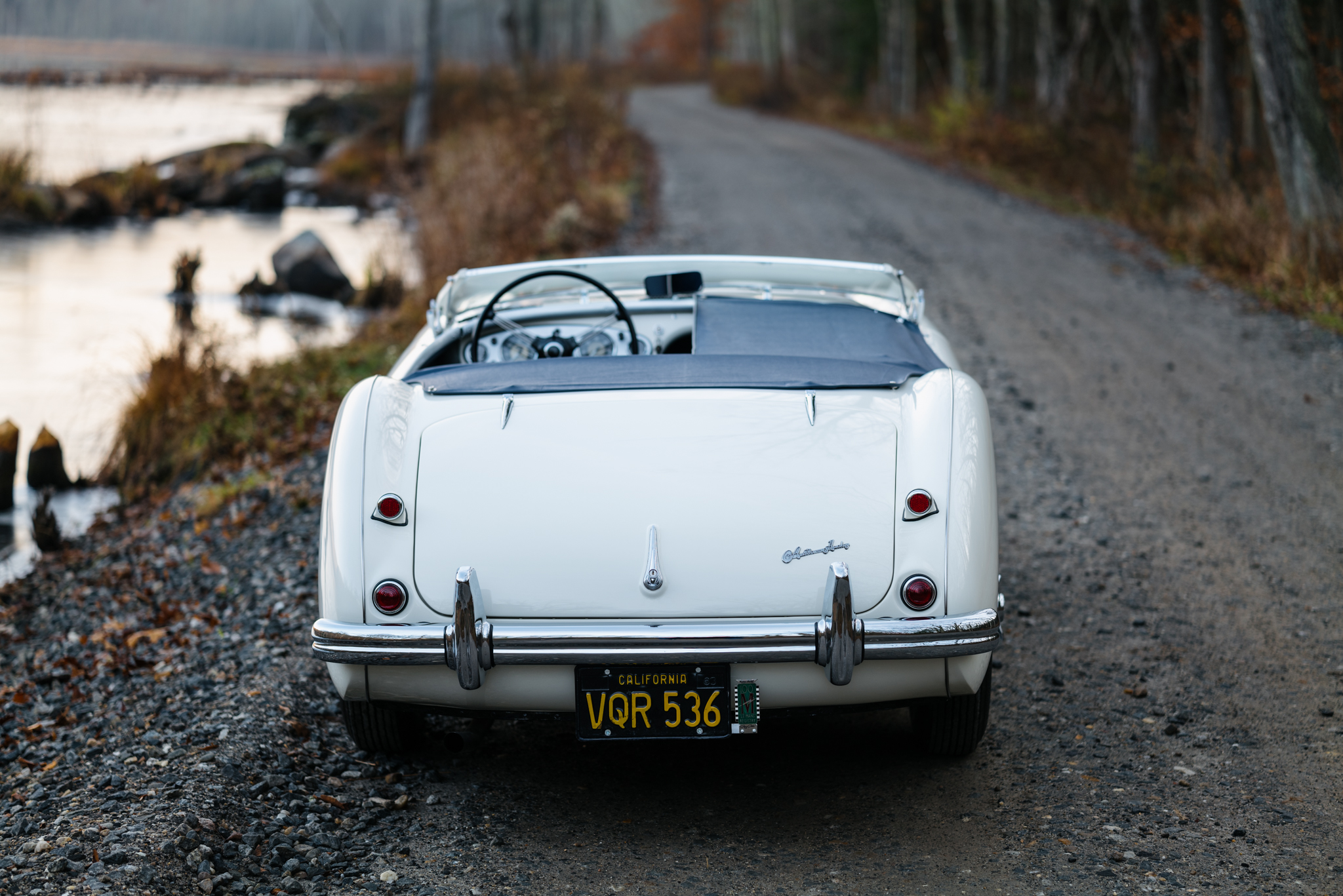 Painted 15” wire wheels are secured by chrome two-eared knock-offs and are mounted with Dunlop Road Speed 5 bias-ply tires. A matching spare wheel is mounted in the trunk along with a tool kit, jack, and knock-off hammer. The 100M featured a double-wishbone front suspension with stiffened coil springs and an upgraded anti-roll bar. Braking is handled by drums at all four corners. A blue soft top is fitted and can be seen in the gallery along with matching side curtains and a tonneau cover.