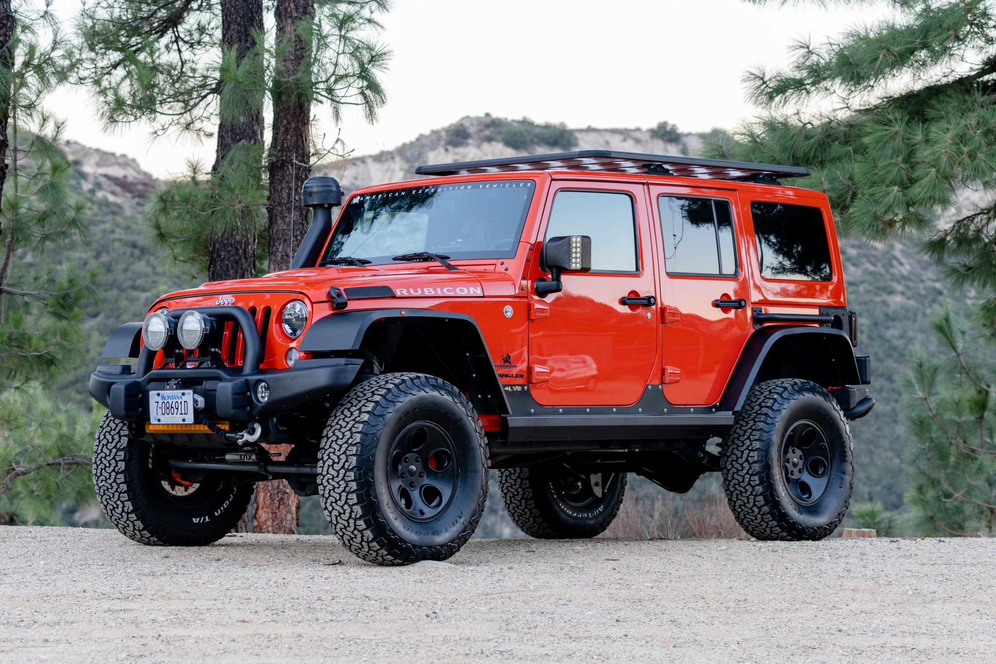 17″ AEV Savegre wheels wear 37″ BFGoodrich All-Terrain T/A KO2 tires. The suspension has been modified with an AEV 4.5″ lift kit, AEV High-Capacity springs, and adjustable front and rear control arms. Reid Racing heavy-duty High Steer knuckles have been installed, and the Baer brake kit features drilled and slotted rotors as well as red multi-piston calipers all around. Service under current ownership is said to have included replacing the rear shocks, rear sway bar end links, rear brake calipers, and front and rear brake pads.