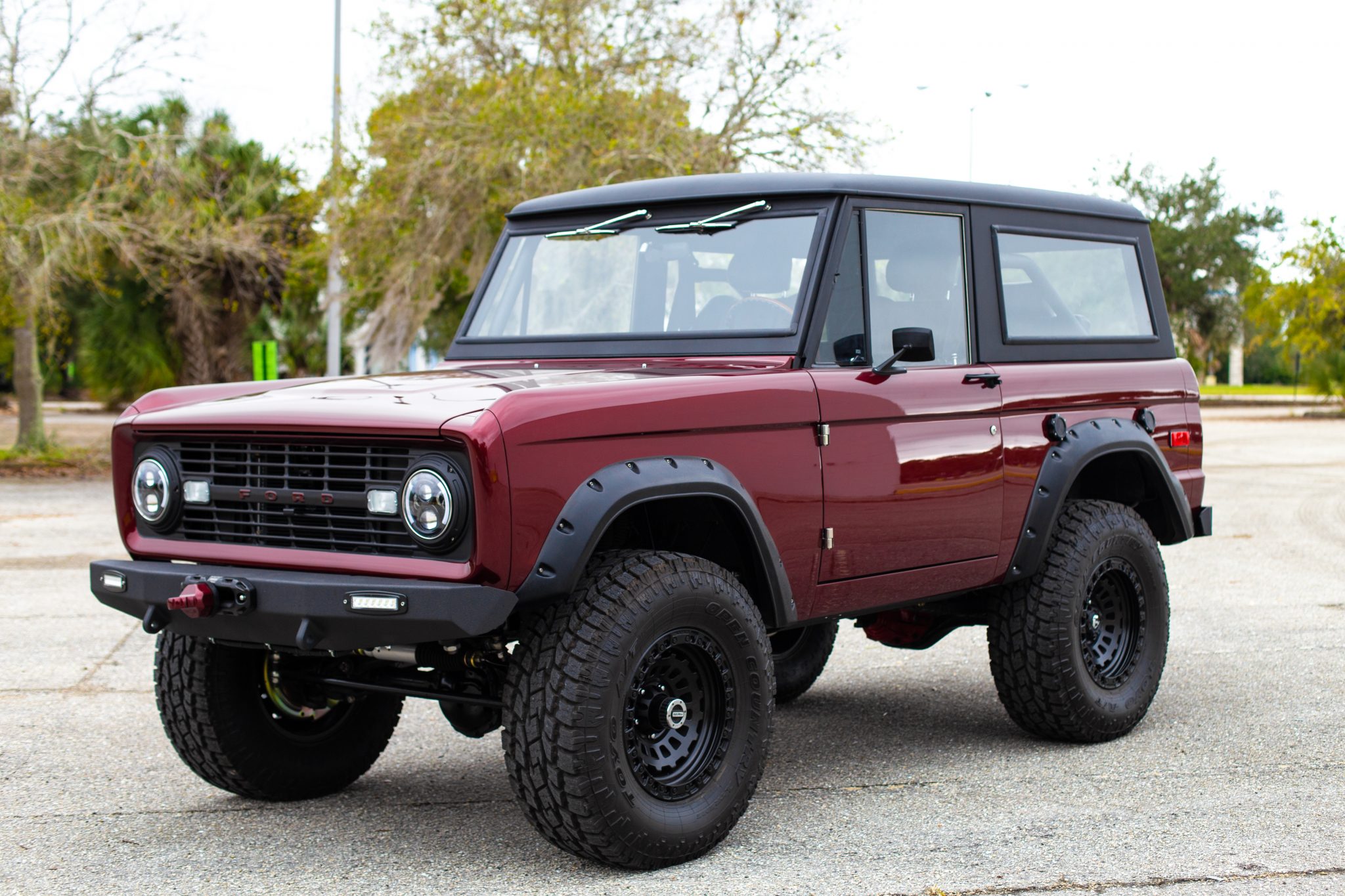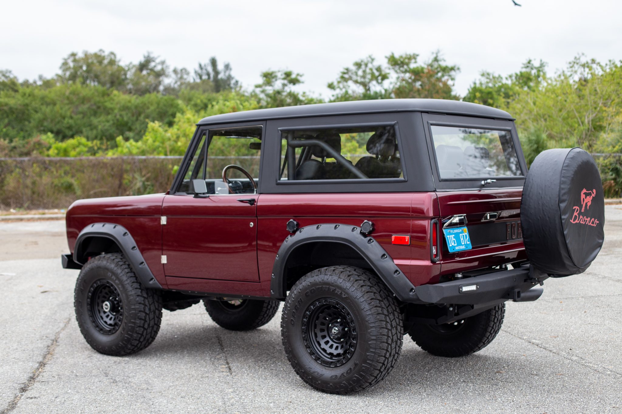 Black-finished 17” Fuel Zephyr wheels are wrapped in Toyo A/T Open Country tires sized 35”x12.5” at all four corners. A matching spare is affixed to the swing-out rear carrier, and stopping power is provided by hydraulically-assisted four-wheel disc brakes. A 2″ body lift and 2.5″ suspension lift kit were added by the seller, and the front axle is equipped with Warn manually-locking hubs. An alignment was recently performed and the brakes were bled.