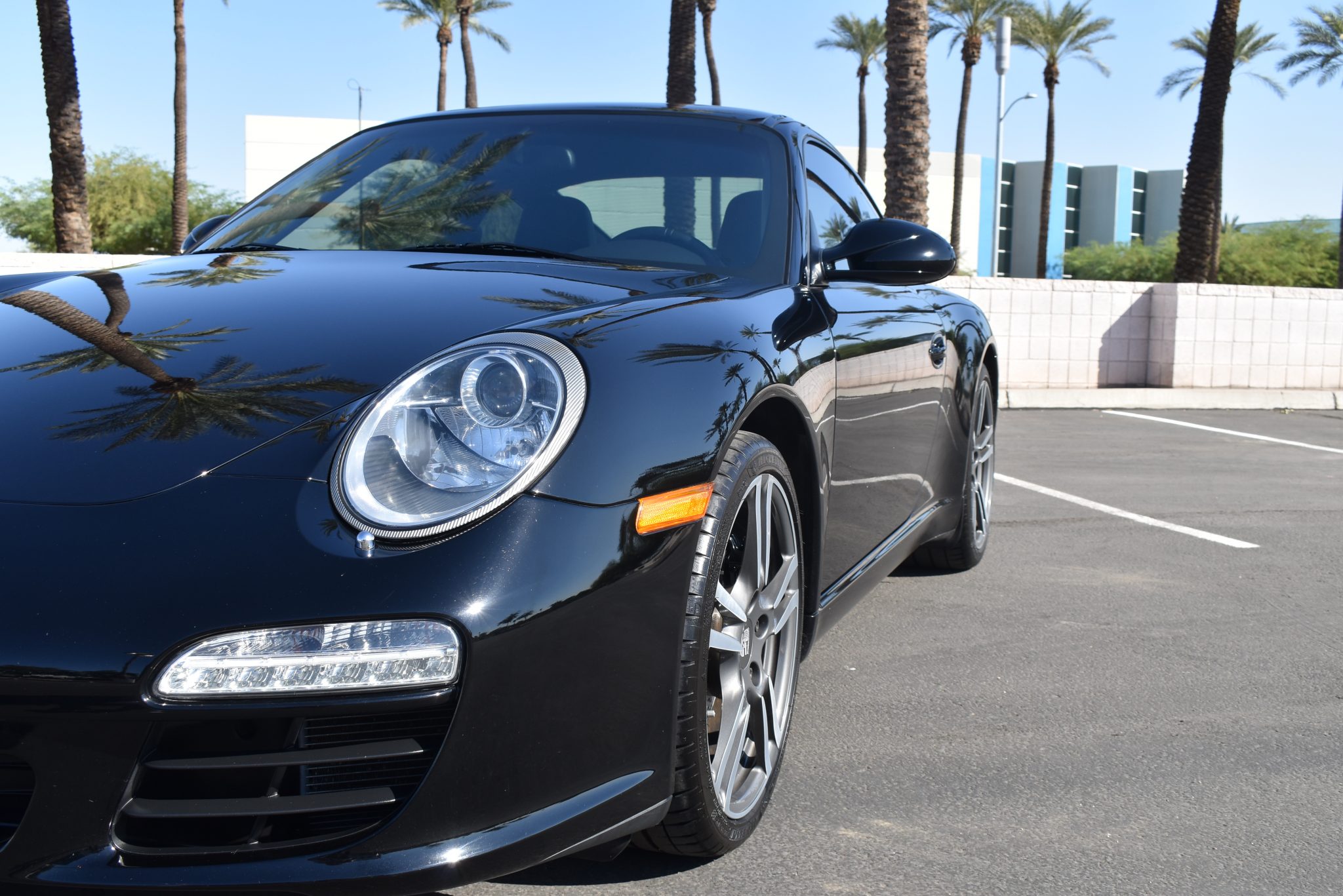 Factory 19″ Turbo II wheels are mounted with staggered-width Michelin Pilot Sport 4S tires. Disc brakes with drilled rotors and black-finished calipers are fitted at all four corners.
