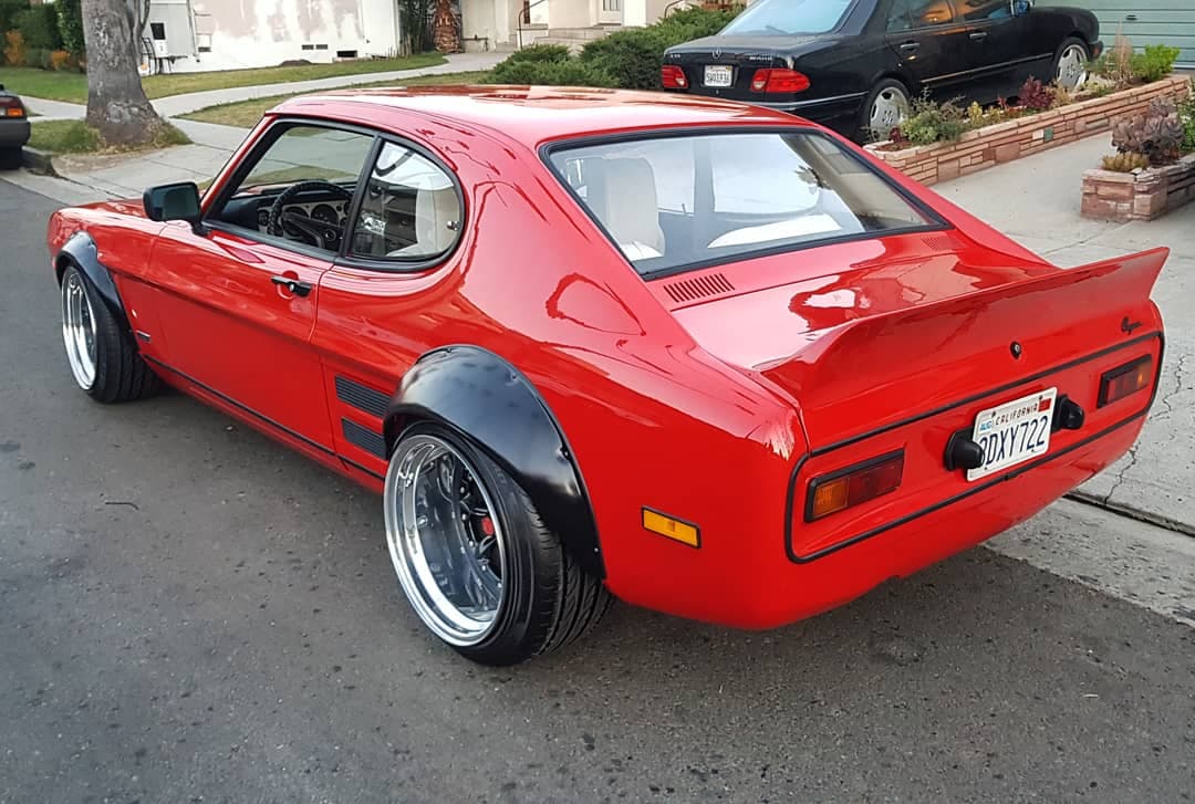 Black-painted 17″ RS Watanabe wheels wear polished lips, red center caps, and Pirelli P Zero Nero GT tires. Adjustable BC Racing coilovers with adjustable top mounts are fitted up front, and QA1 shocks are combined with leaf springs to support the live rear axle. Braking is handled by front discs and rear drums.