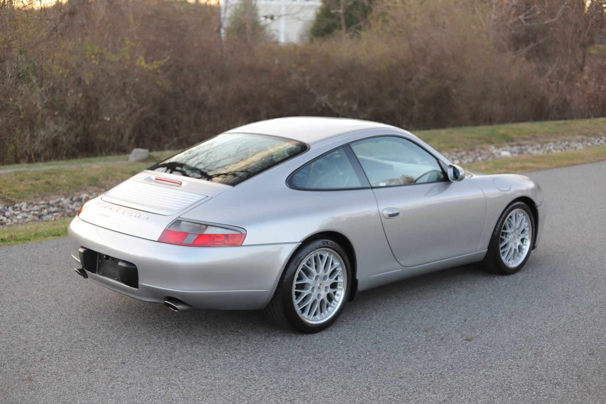 Staggered-width 18″ Sport Classic wheels have colored Porsche crest center caps and wear Michelin tires showing a mix of 2018 and 2019 date codes. Braking power is provided by cross-drilled rotors and black calipers with white Porsche script, and this example is equipped with Porsche Stability Management.