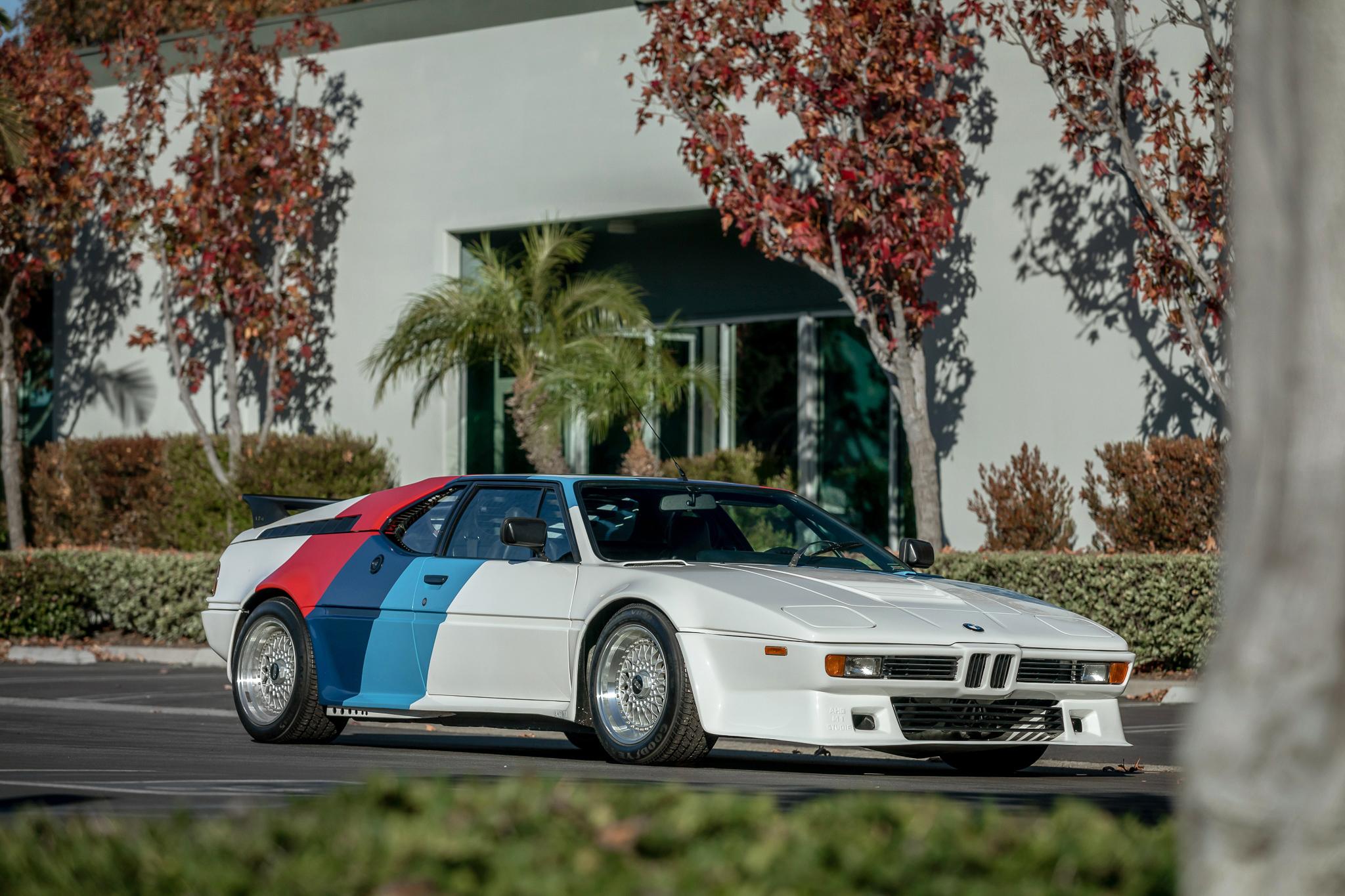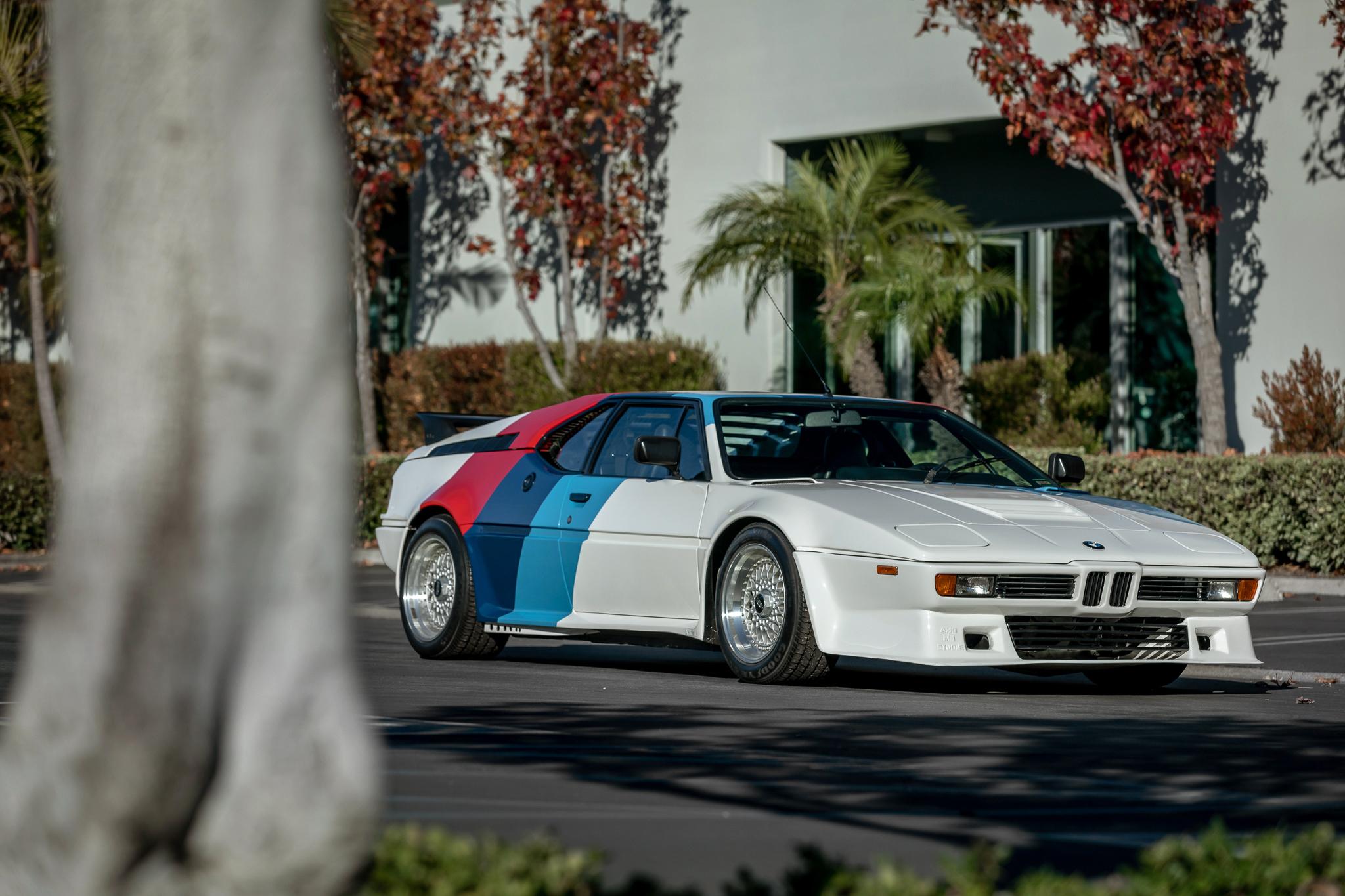This car was originally produced as a standard road model finished in white before being repainted in a BMW tricolor livery as part of the AHG Studie treatment. Each car sent to AHG was given a unique paint job of the customer’s choosing by Hermann Altmiks, and “altmiks lackdesign” can be seen painted under the left rear taillight. AHG aerodynamic panels were inspired by M1 race cars from BMW’s single-make Procar series and include a front air dam, side skirts, and a rear spoiler. The front bumper and surrounding fascia on this car were repainted in 2016. Closeups of the finish, trim, and lenses are shown in the photo gallery below, along with closeups of AHG and Studie markings on the bumpers and rear spoiler.