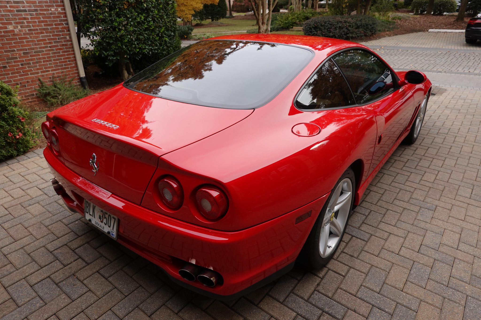 Five-spoke 18″ wheels were sourced from a 575M and wear Michelin Pilot Sport tires showing a mix of 2011 and 2012 date codes. In February 2020, Ferrari of Atlanta replaced the front right shock absorber actuator and re-centered the remaining actuators. Braking is from Ferrari-branded calipers and cross-drilled rotors at all four corners, and a fluid flush was also performed in February 2020.