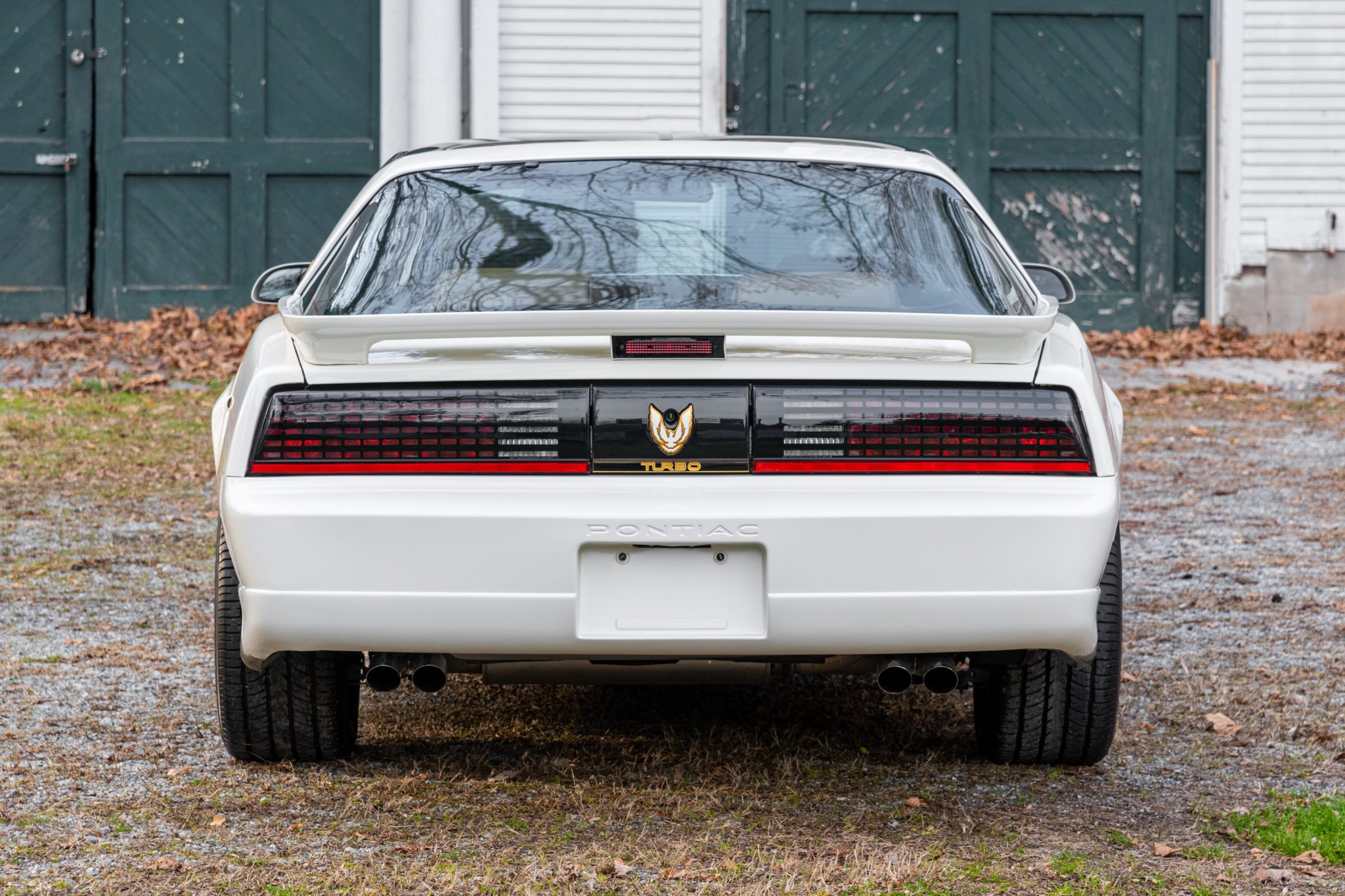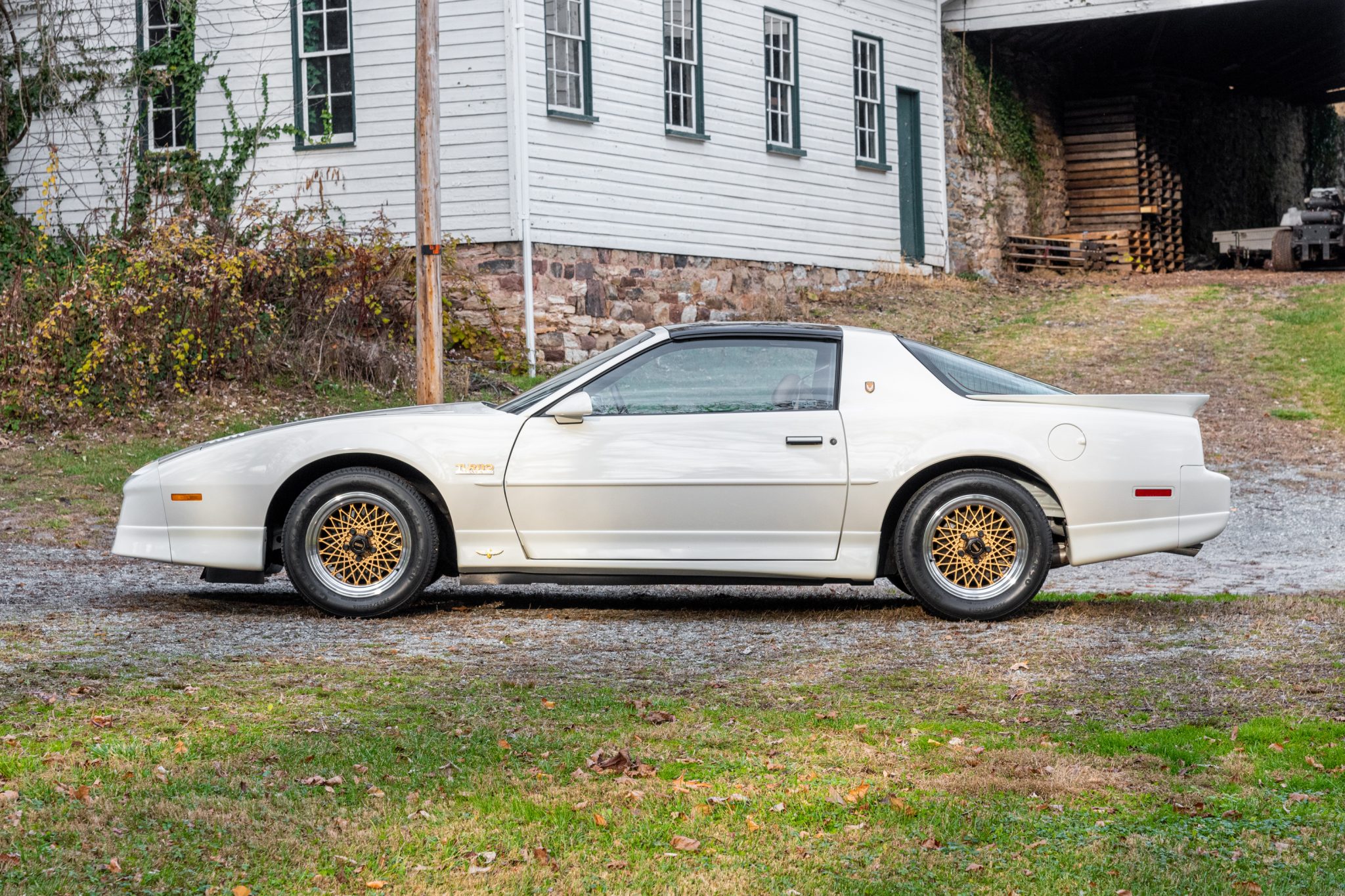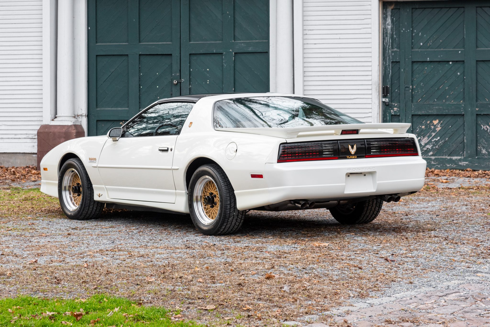16″ basketweave wheels feature WS6 Pontiac Performance Suspension center caps and wear 245/50 Goodyear Eagle ZR50 tires showing pre-2000 date codes. The Turbo Trans Am was equipped with a WS6 high-performance suspension and heavy-duty four-wheel disc brakes. The seller states that the tires hold air but should only be used for show due to age.