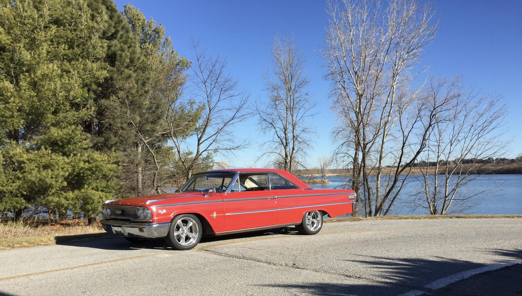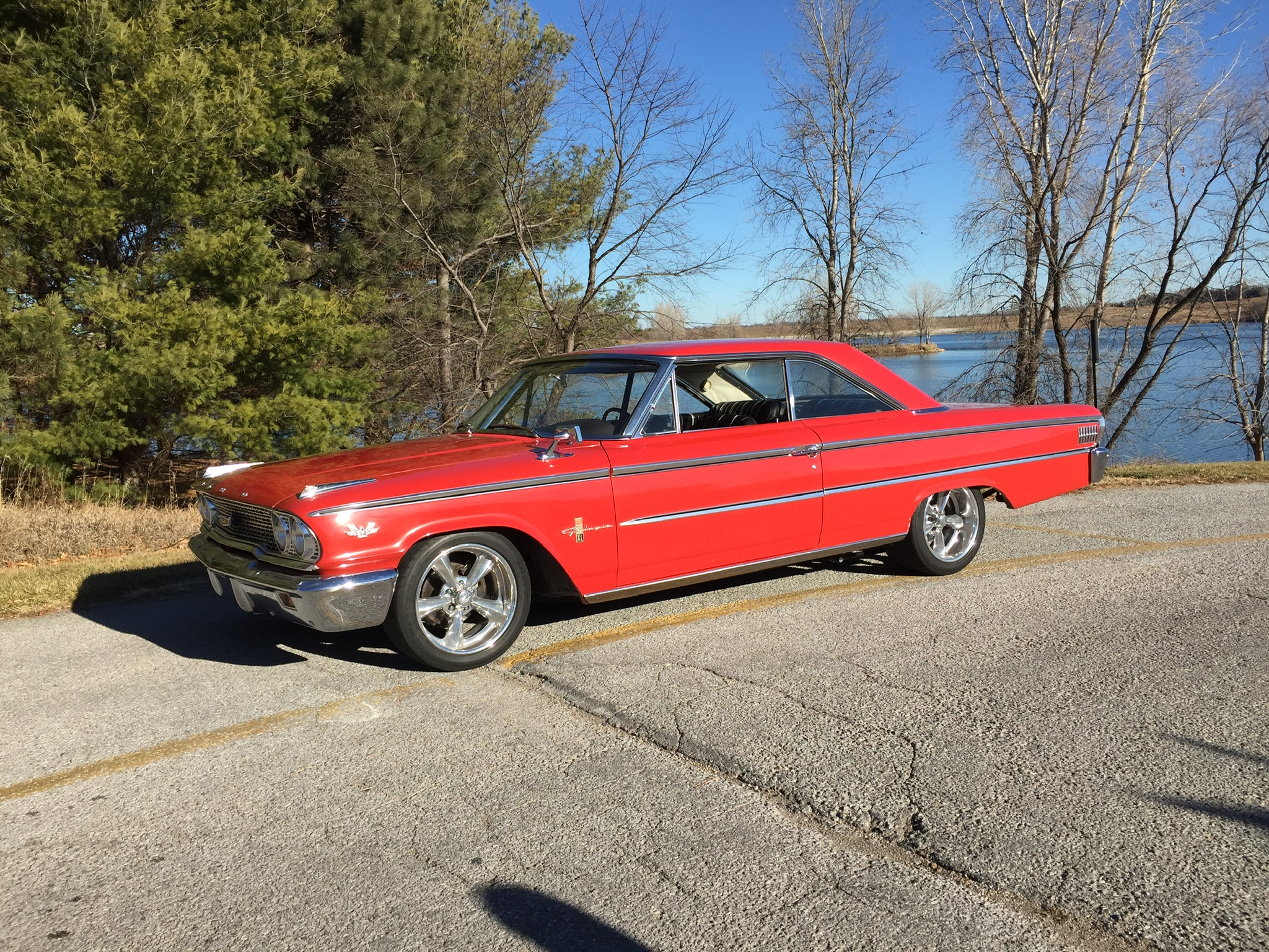 Aftermarket chrome wheels are wrapped in Nitto NT555 Extreme tires. Ford disc brakes have been installed at each corner.