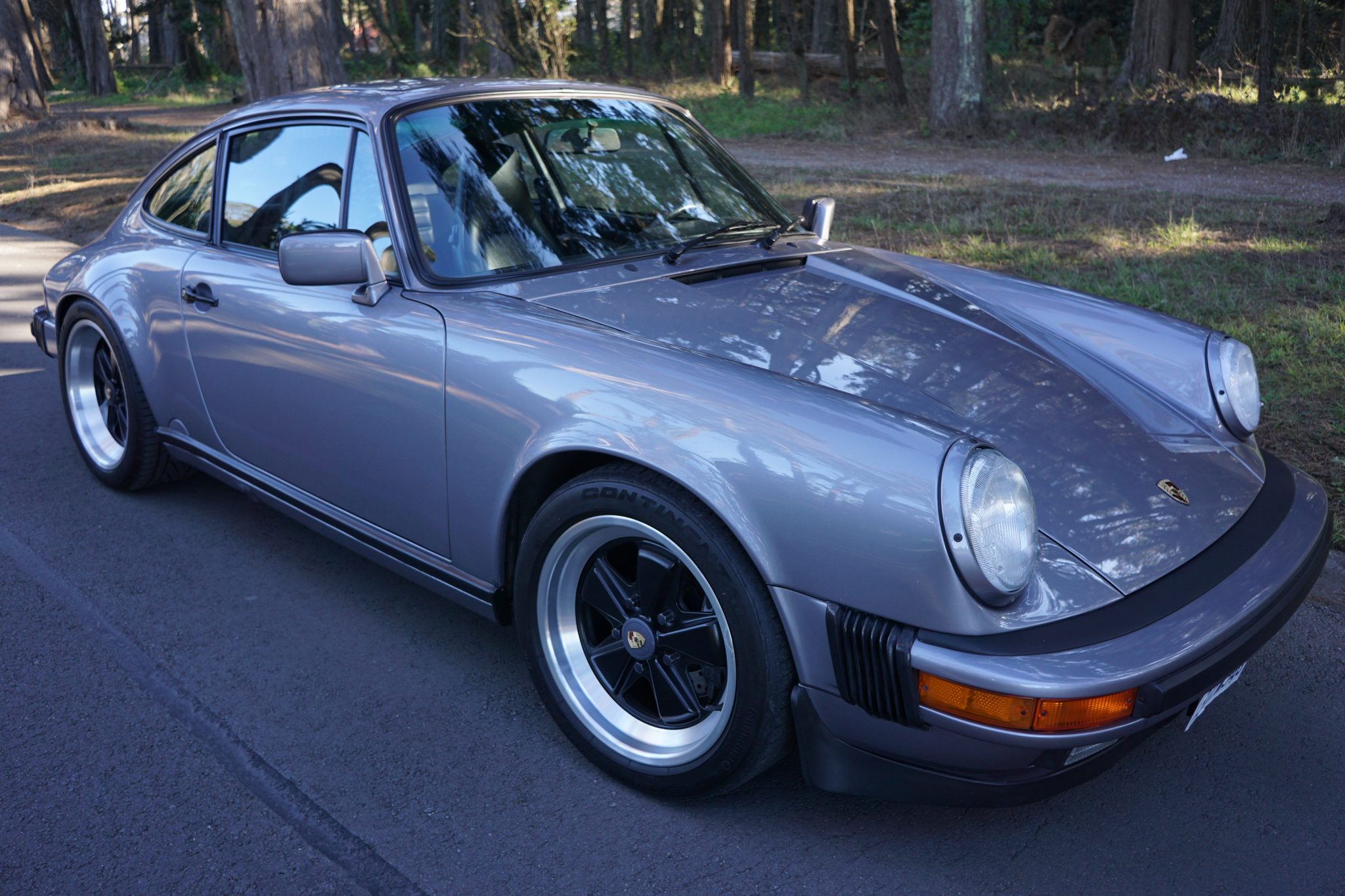 Aftermarket 17″ Fuchs-style wheels wear Porsche center caps and are wrapped in Continental ExtremeContact DW Tuned tires. The suspension has been fitted with Bilstein shocks, a 23mm front and 31mm rear sway bar, PolyBronze bushing and bearings, a front strut bar, replacement torsion bars, 911 Turbo tie rod ends, and a bump steer kit. Braking is handled by four wheel discs with 928 S4 front calipers along with a 911 Turbo brake master cylinder. The removed factory Fuchs wheels are included in the sale.