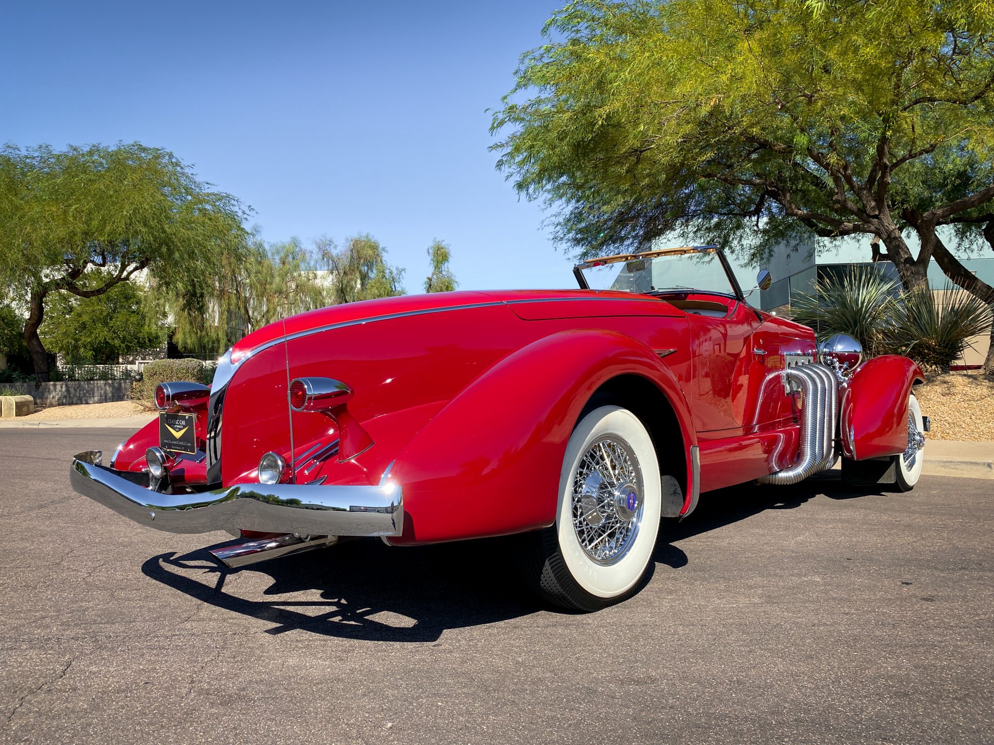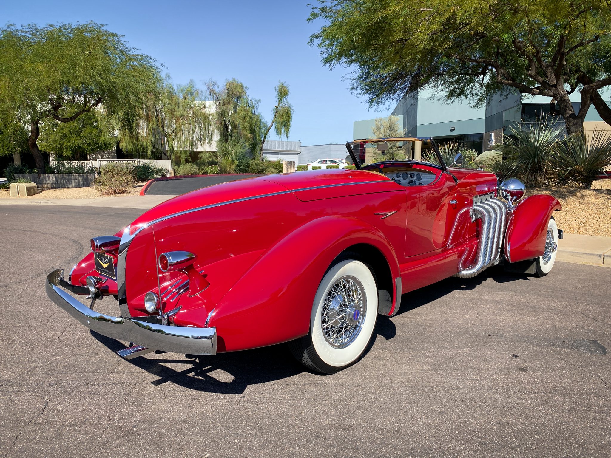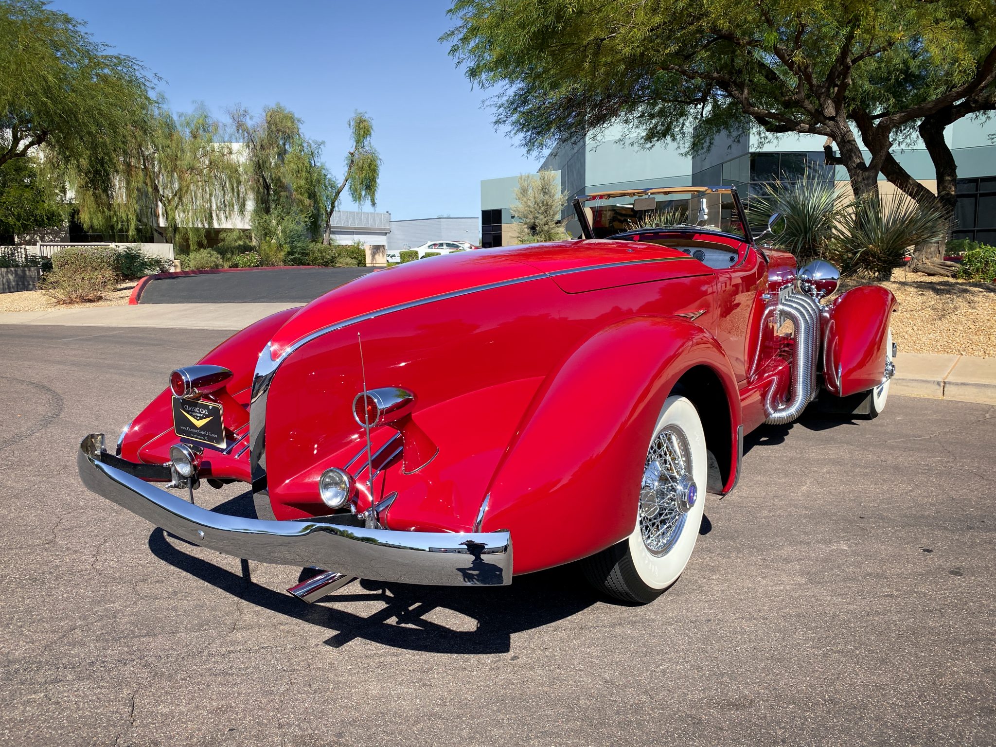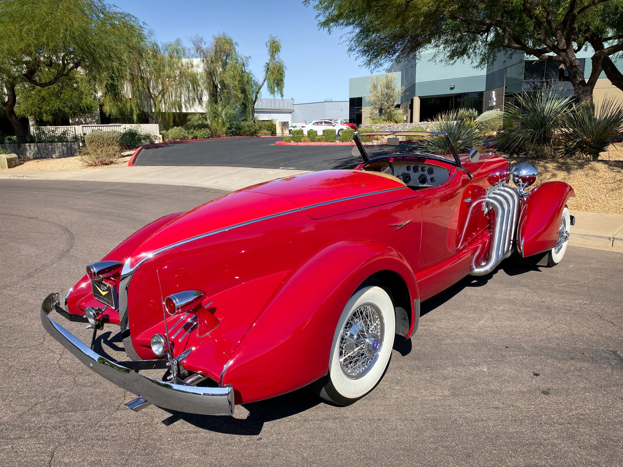 Chrome wire wheels feature knock-off hubs and are mounted with Firestone 7.00-16″ bias-ply whitewall tires. The Duesenberg II featured a custom X-frame chassis and utilized Ford Twin I-Beam front suspension along with power-assisted steering and brakes. A new brake booster and master cylinder were installed by the selling dealer in 2020. Flaws in the chrome on the wire wheels are noted.