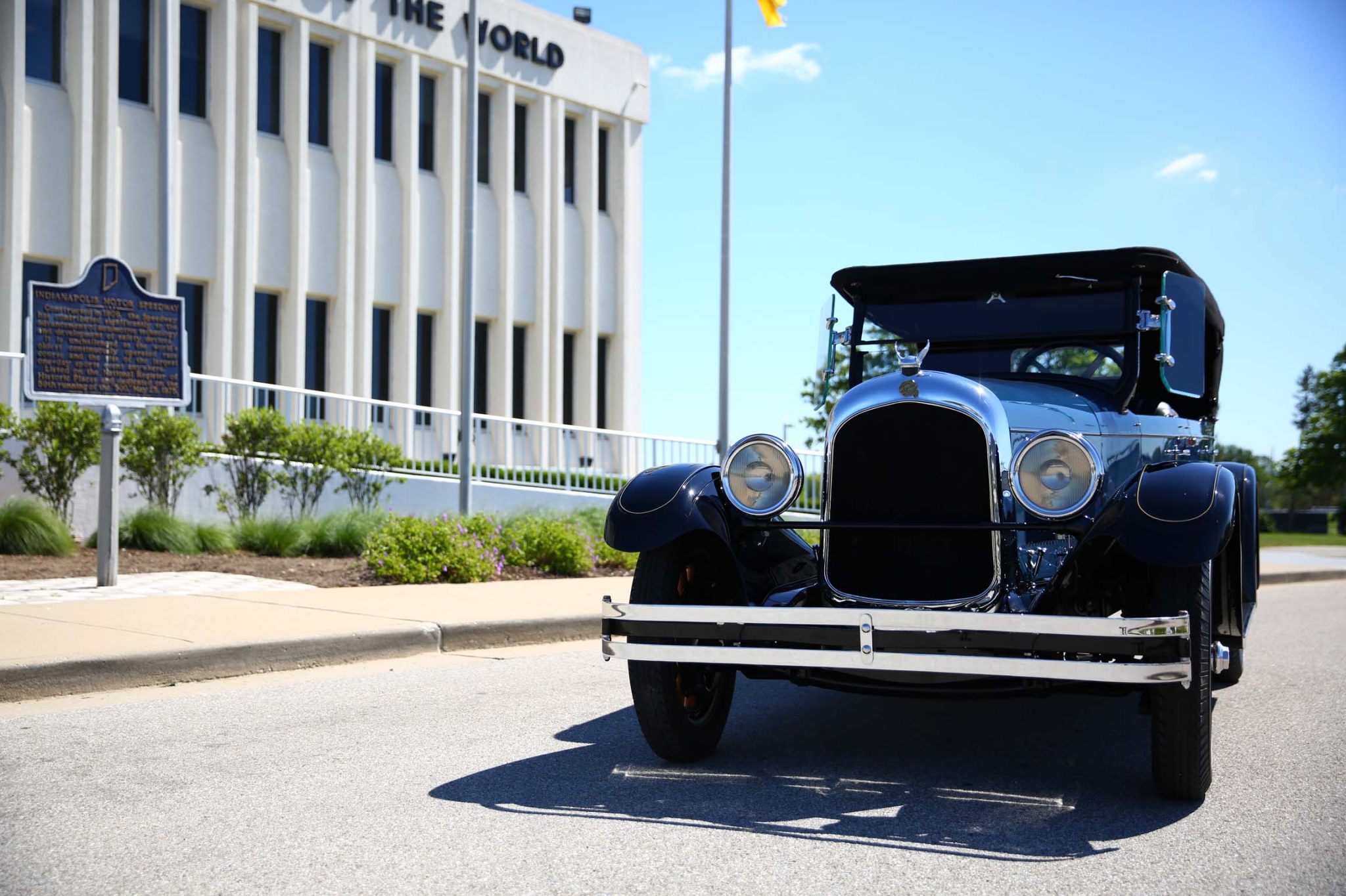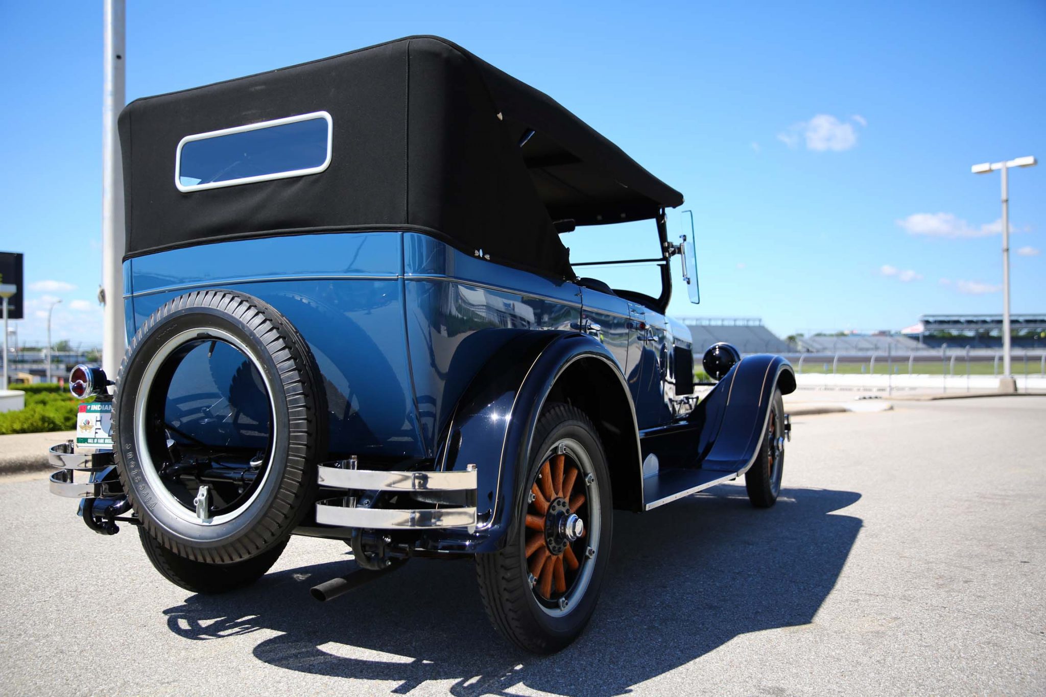 The wood spoke wheels were refinished in the late 1980s and are mounted with Firestone 4.75-5.00-20 bias-ply tires, with a spare rim and tire fitted out back. The B-70 rode on a 112.75″ wheelbase and featured a tubular front axle with Lovejoy hydraulic shock absorbers and a live rear axle with leaf springs as standard equipment. Braking is handled by hydraulic drums at all four corners, and new wheel bearings were installed in the late 1980s.
