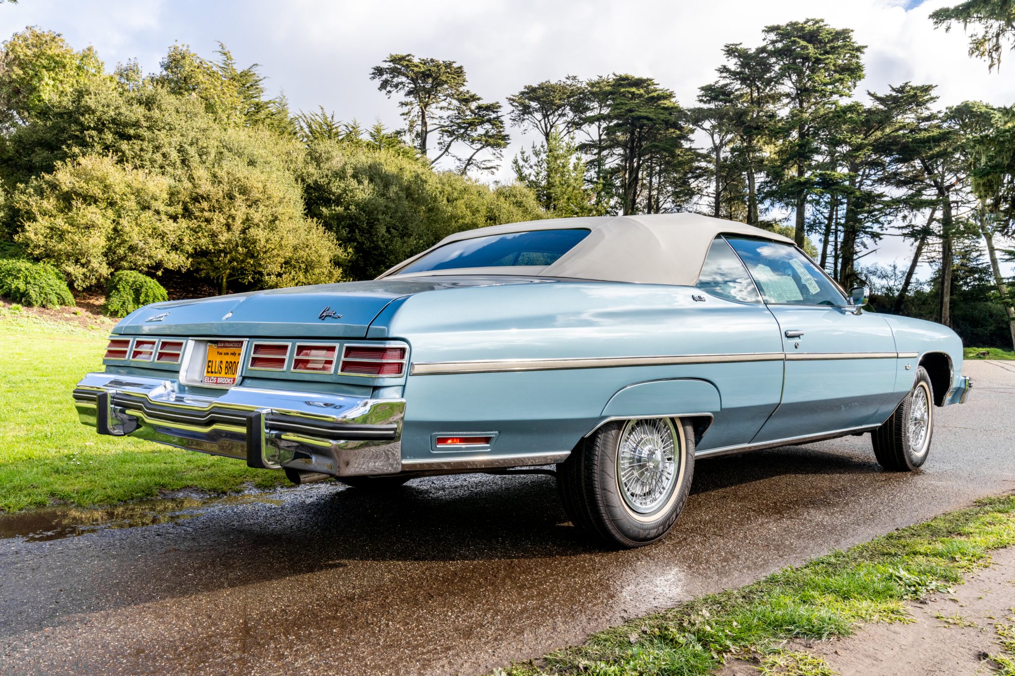 Steel 15″ wheels with optional wire-style covers are fitted with Goodyear Regatta 2 whitewall tires. Power-assisted front disc brakes were included as standard equipment.