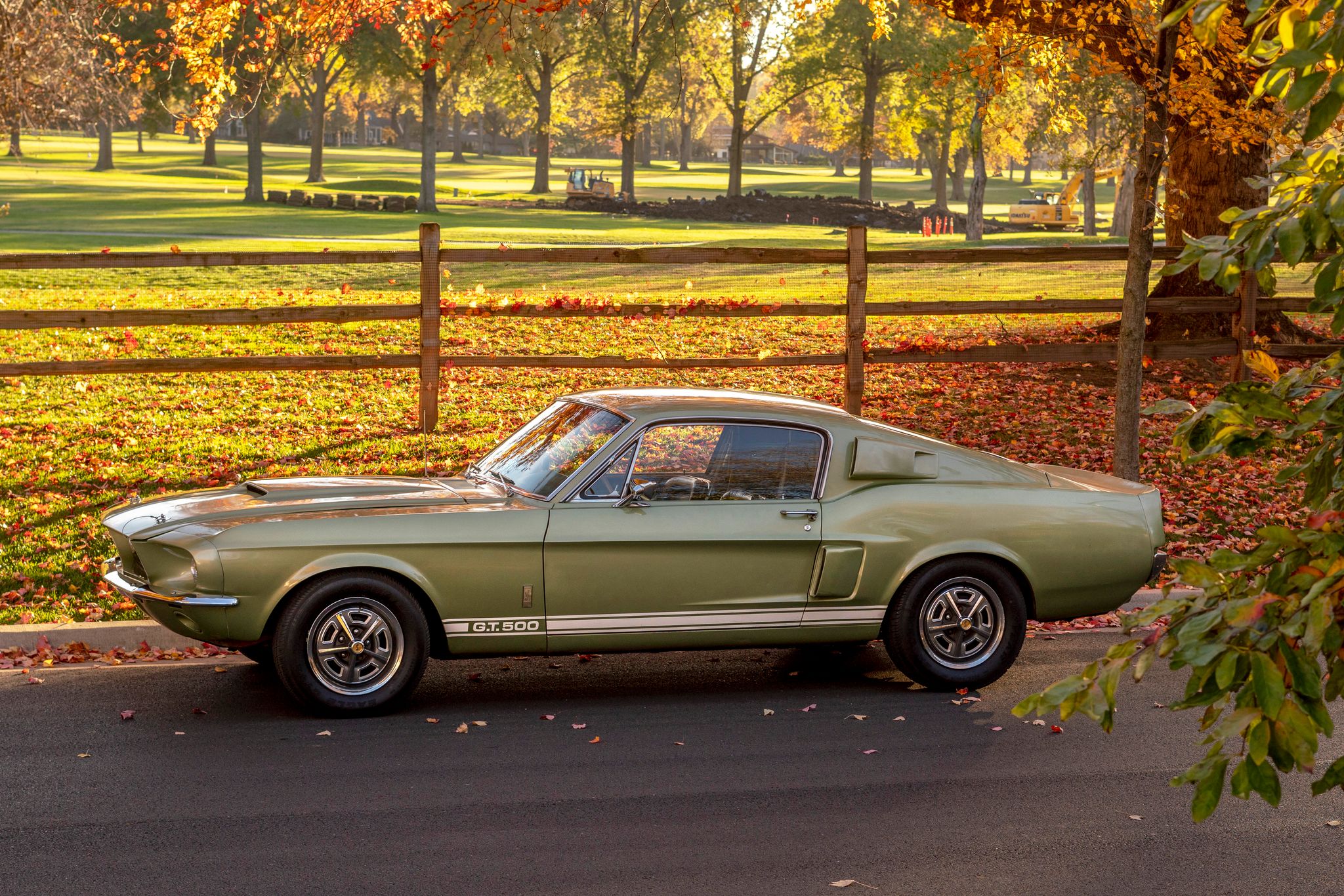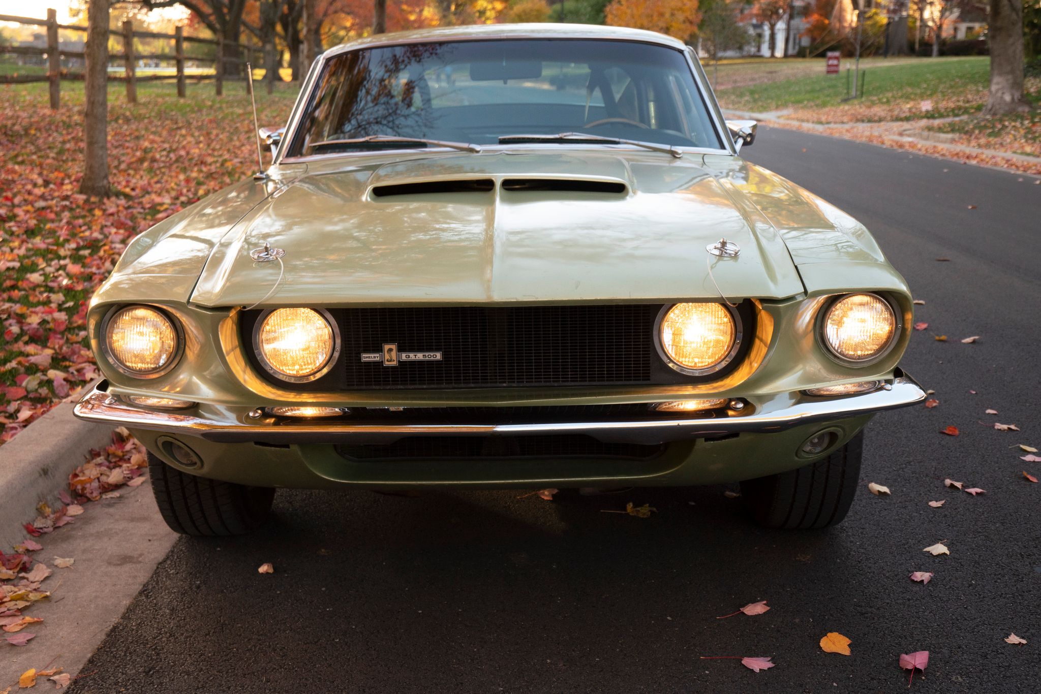 This example left the factory finished in Lime Gold with white side stripes. Close-up photos of the finish, trim, lenses, and badges are provided in the gallery below along with those showing age-related wear and imperfections, including corrosion on the lower portion of the left front fender.