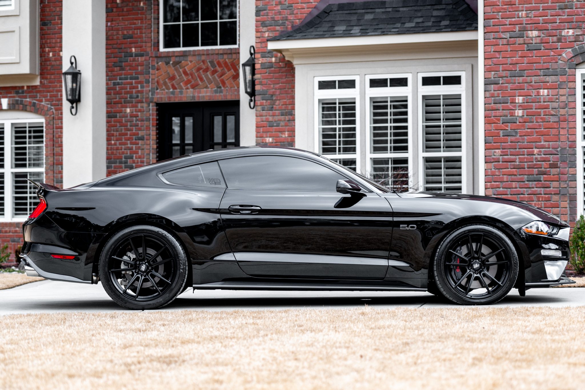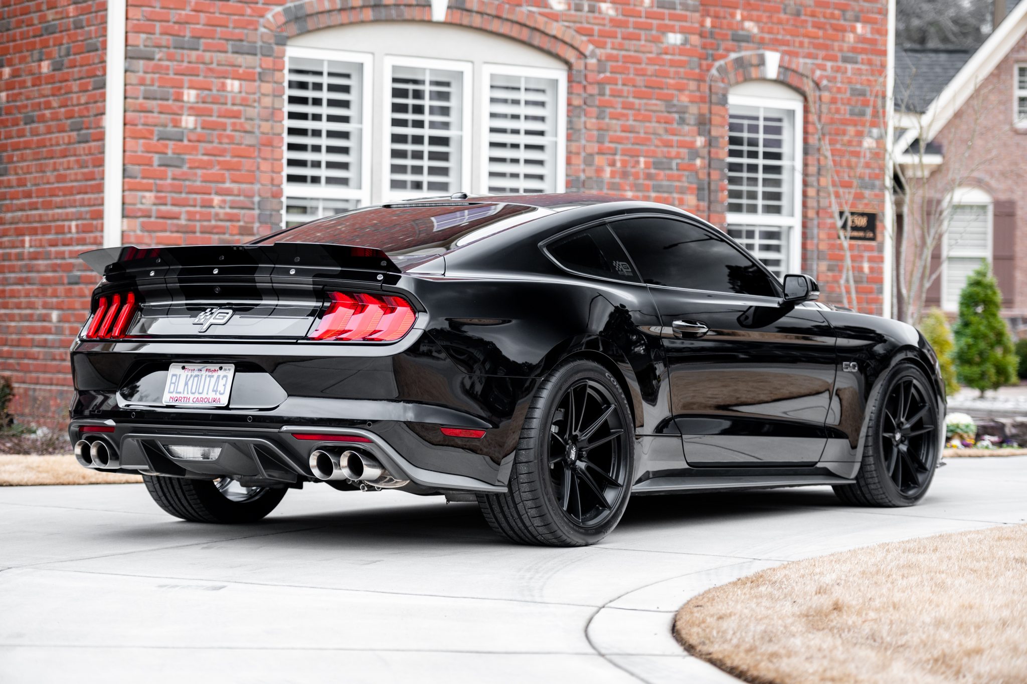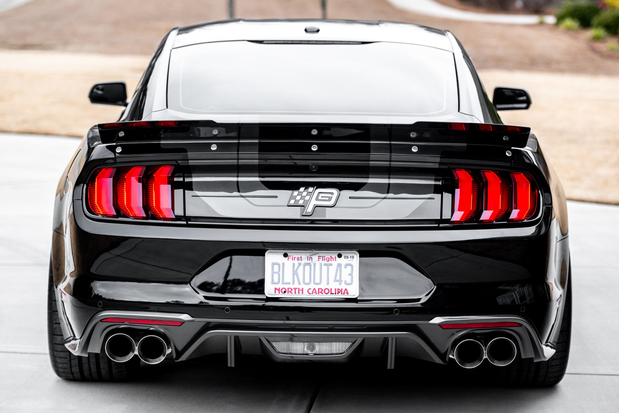 Petty’s Garage HRE FlowForm 20″ staggered-width wheels are are wrapped in 275/35 front and 305/35 rear Continental ExtremeContact Sport tires, and the braking system includes Ford Brembo six-piston front calipers. Additional modifications include G-Force performance axles and Ford Racing lowering springs.