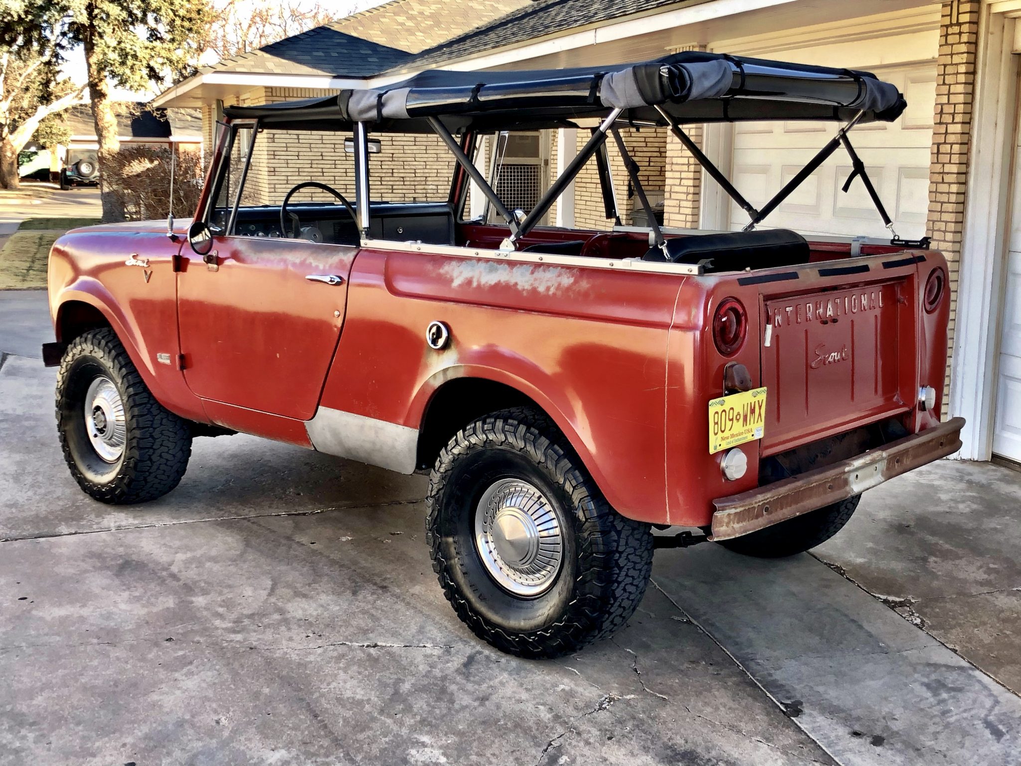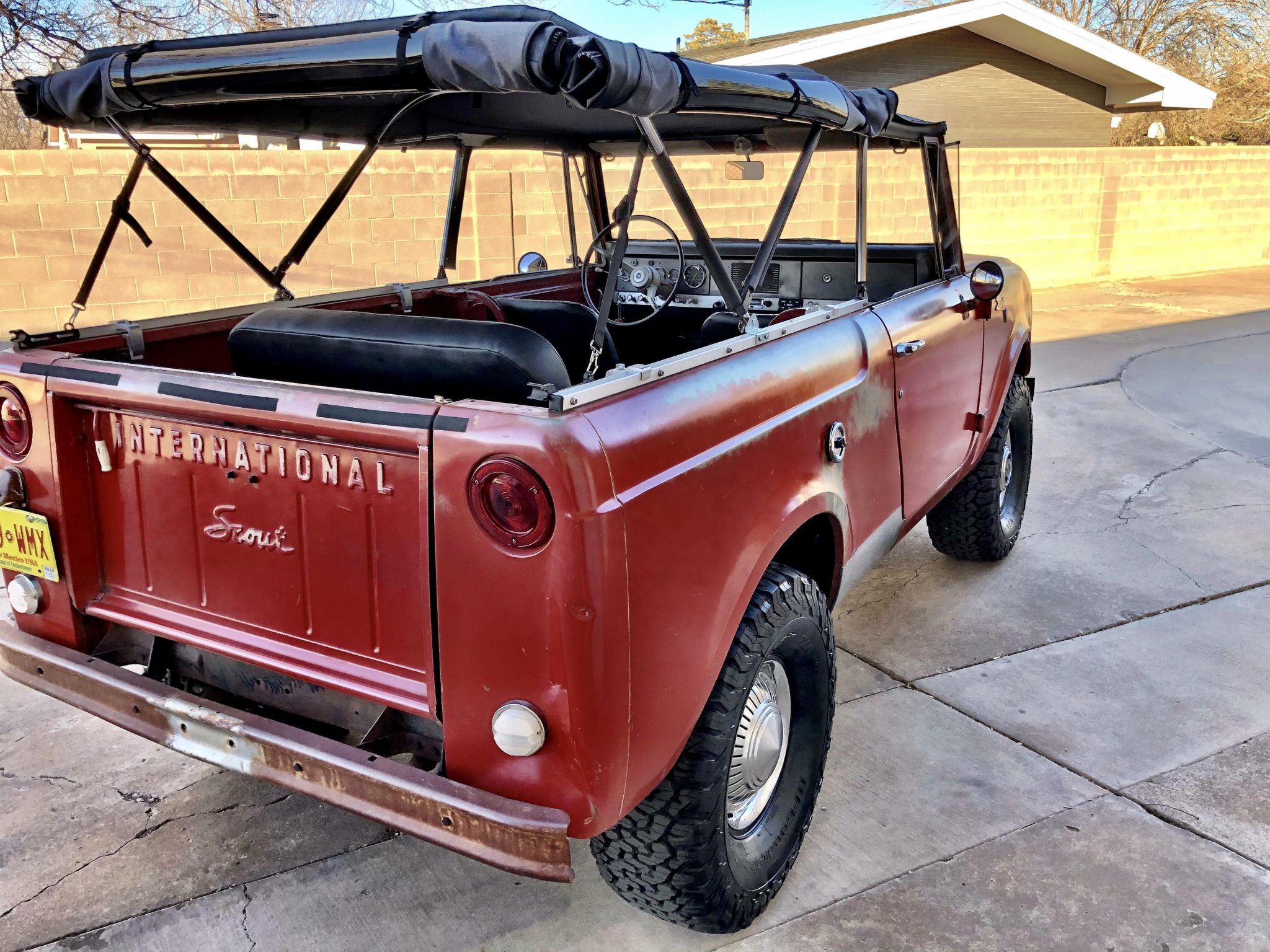 Factory 15″ steel wheels are finished in black and wear 33×12.5″ BFGoodrich All-Terrain T/A KO2 tires. Polished hubcaps are included in the sale. The truck is equipped with replacement front and rear brake drums, rear brake shoes and wheel cylinders, stainless steel brake hoses, and a CPT suspension from IH Parts America that includes upgraded front and rear leaf springs, shackle sets, ½” U-bolts, and Bilstein 5125 shocks.