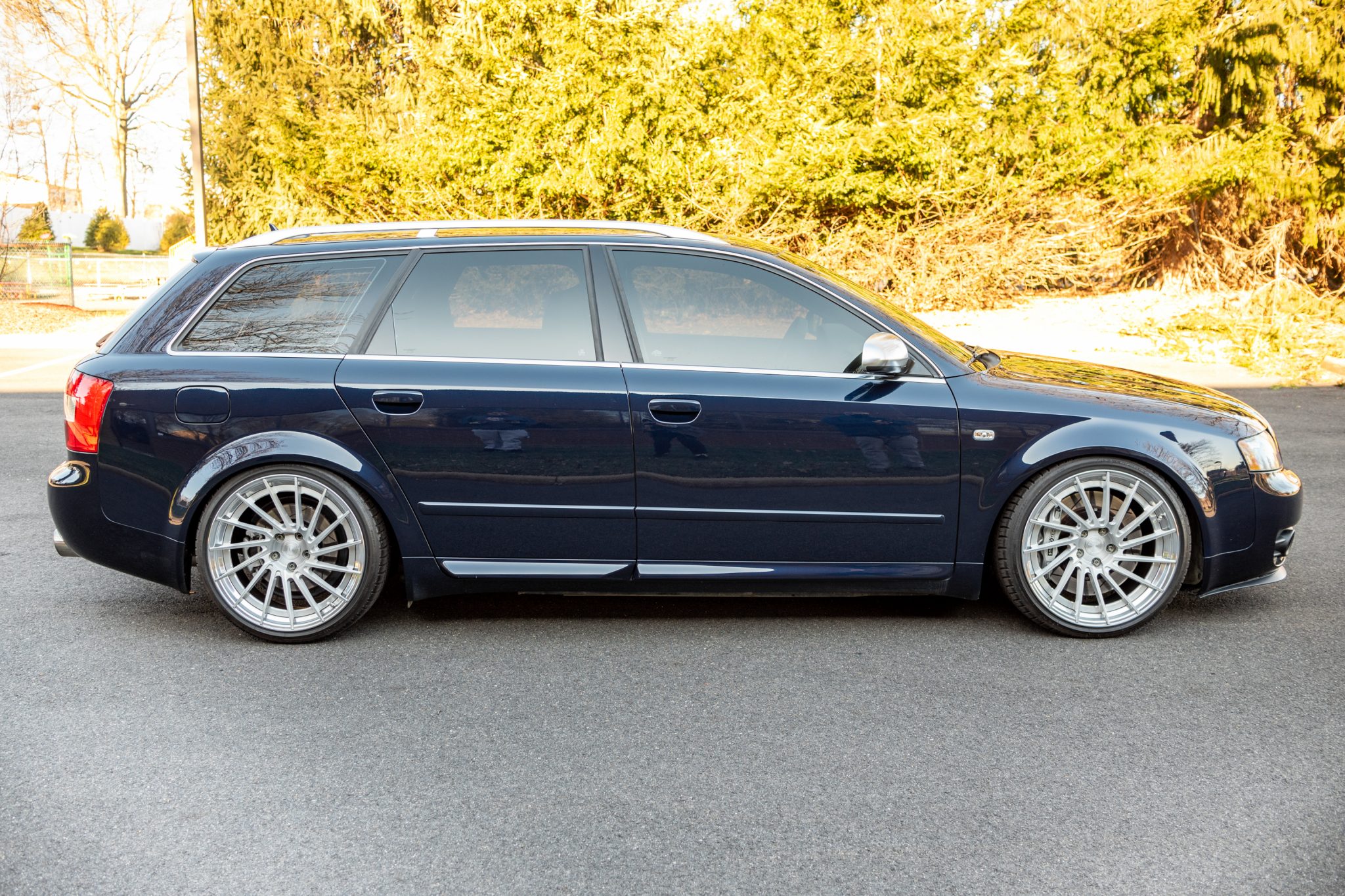BC Forged 19″ three-piece wheels are fitted with Michelin Pilot Sport A/S 3+ tires and a temporary spare is mounted in the rear cargo area. Braking is from slotted rotors and StopTech-branded calipers and brake pads. The seller notes that BC Racing coil-overs with Swift springs and adjustable upper control arms have been added and that the ABS control module was replaced in preparation for the sale.