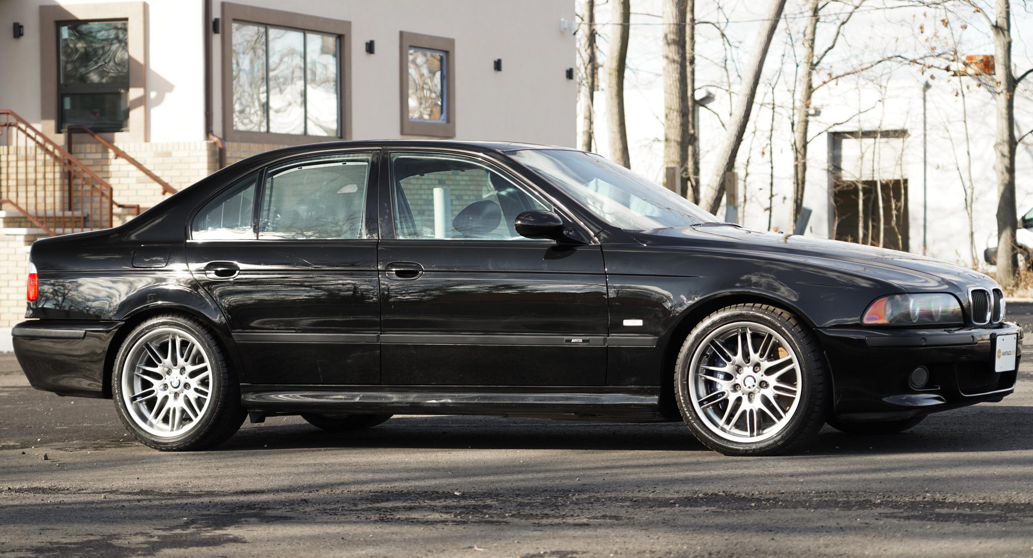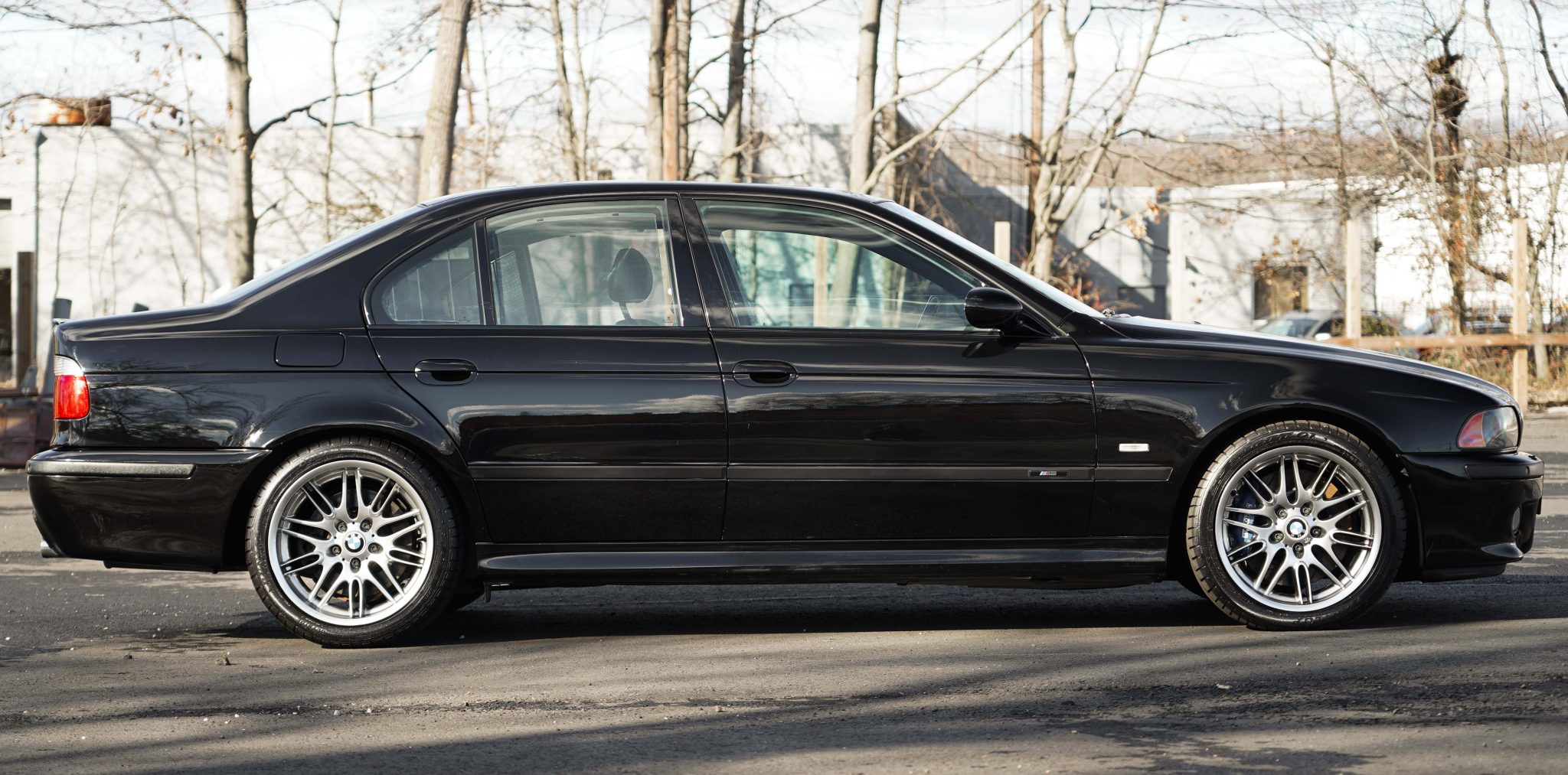 Staggered-width 18″ Style 65 wheels are mounted with Dunlop SP Sport 01 run-flat tires measuring 245/40 and 275/35. Blue StopTech calipers and slotted two-piece rotors have been added up front, and the brake pad wear sensors were replaced in August 2019. Compared to the standard E39 5-series, the M5 featured more aggressive shock valving and thicker front and rear anti-roll bars.