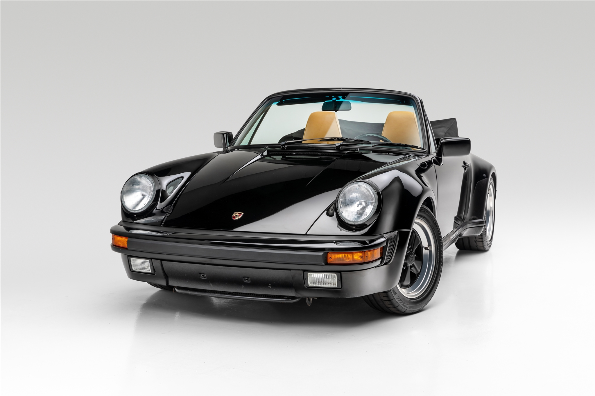 Staggered-width 16″ Fuchs wheels with black centers were refinished by Weidman’s Wheels and are mounted with Bridgestone Potenza RE-11 tires that measure 205/55 up front and 245/45 out back. Bilstein HD shocks were installed in 2017, along with Elephant Racing spring plate bushings and spherical bump-steer tie rod ends. M491 equipment also includes Turbo-specification brakes, torsion bars, trailing arms, and anti-roll bars.