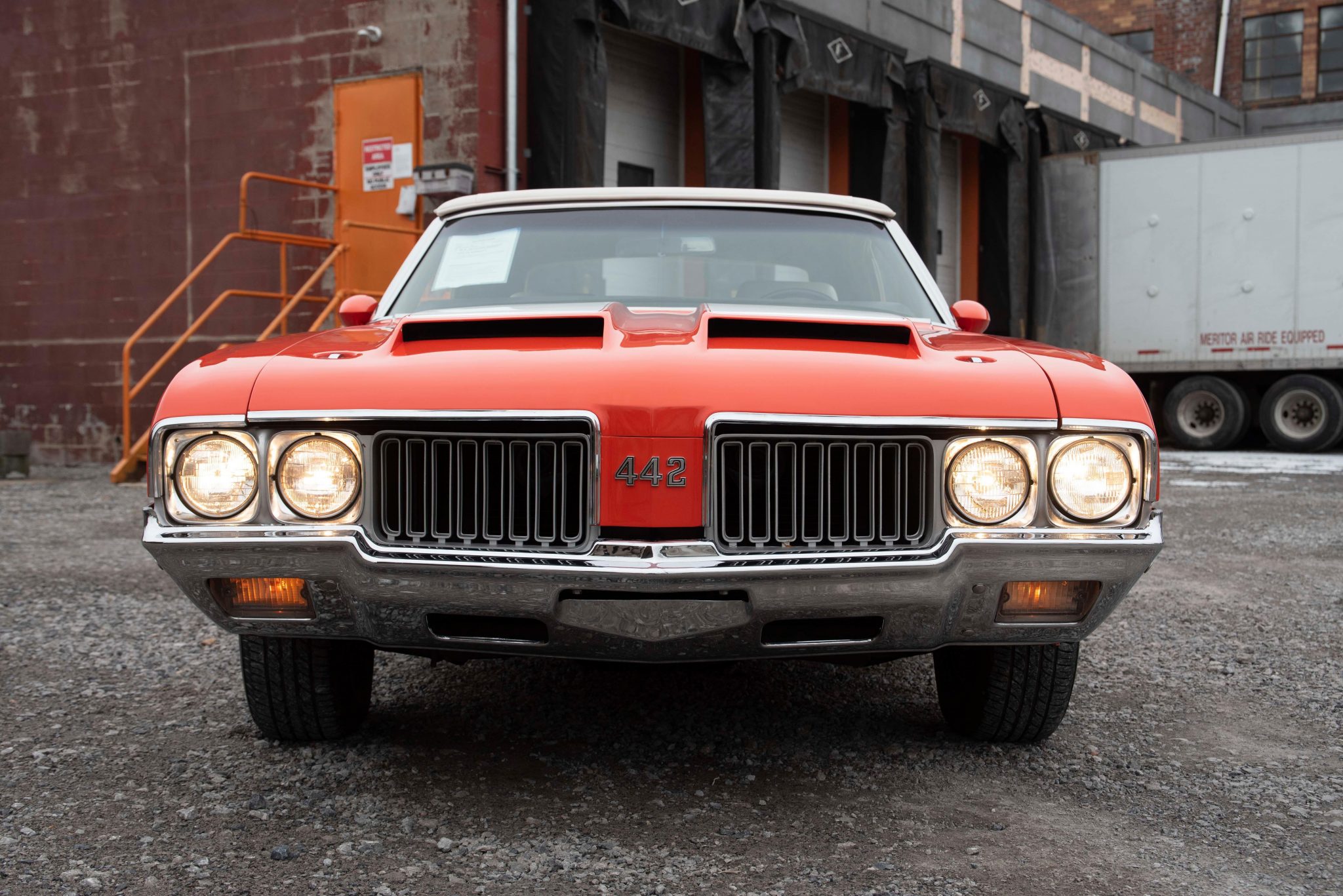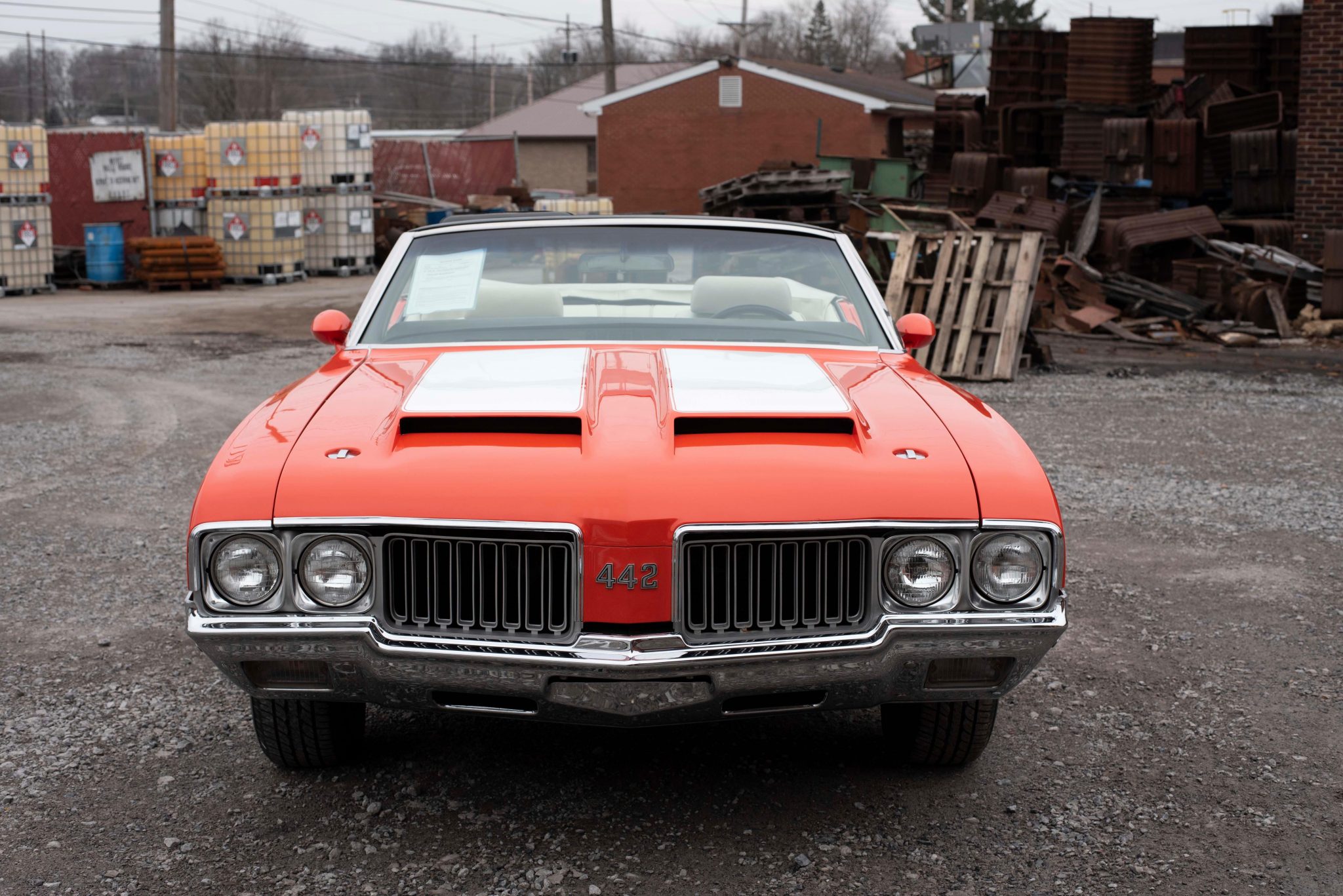 Rally-style 14″ wheels are wrapped in 225/70 Dunlop G/T Qualifier tires; five color-matched steel wheels with four chrome hubcaps are included in the sale and can be viewed in the photo gallery below. The car came equipped with optional power steering and power brakes, with discs up front and drums at the rear.